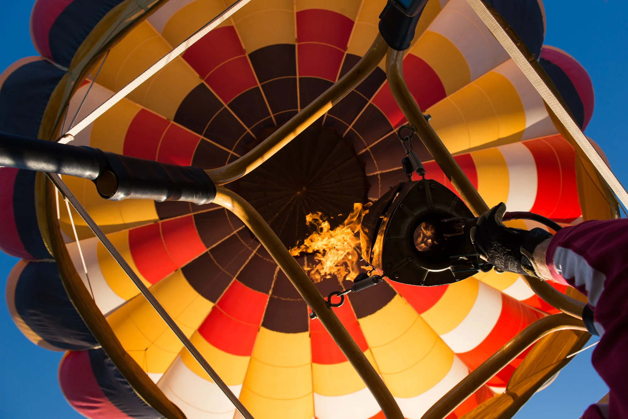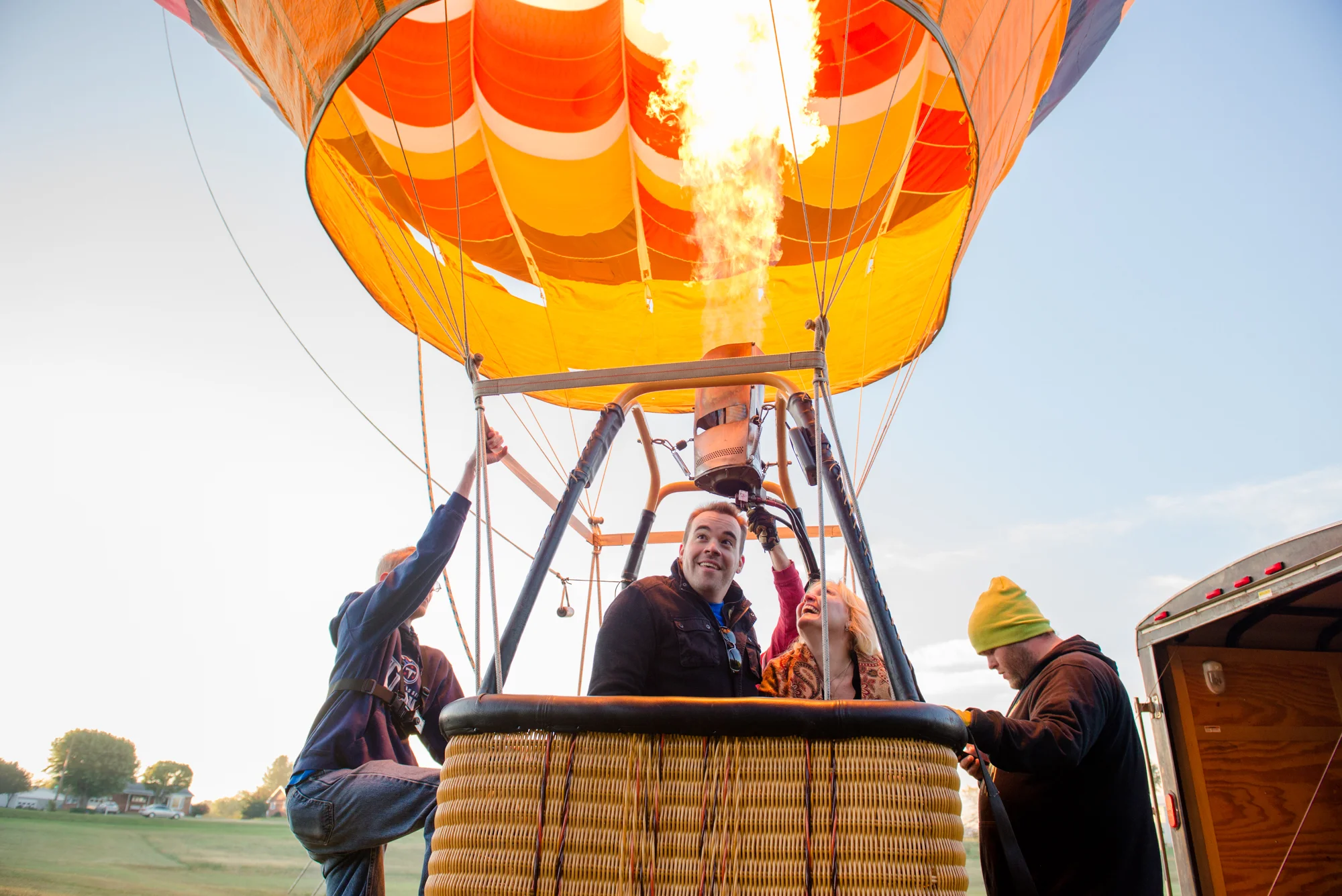 Our group of four riders and a pilot were tightly packed into the basket, but we still had room to move around and take the view in from multiple sides. The coldness in the air was quickly forgotten whenever the pilot fired a loud blast from the burner.