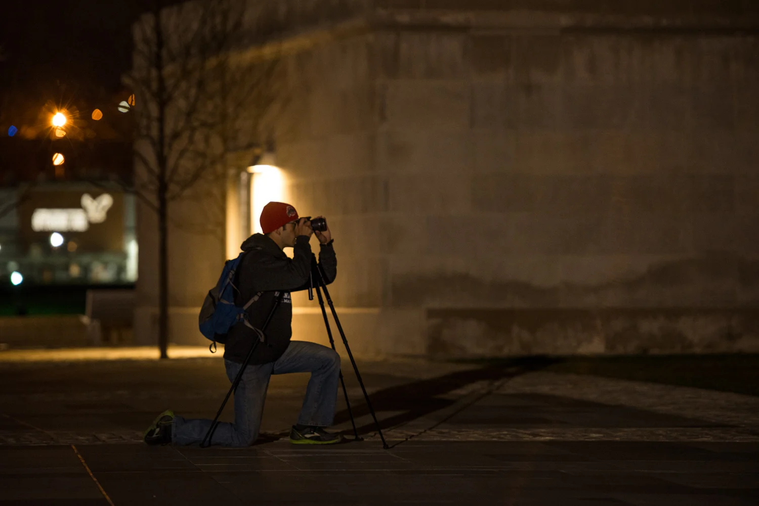 I used a slow shutter speed, anywhere from 15-30 seconds, to allow the vehicle lights to drag and blur into long light trails. The only difficultly with this was the incredible gale force winds we experienced from the ridge top! Even on a tripod our cameras were experiencing shake from the 30-40 mph winds gusts, which resulted in a few blurry images.