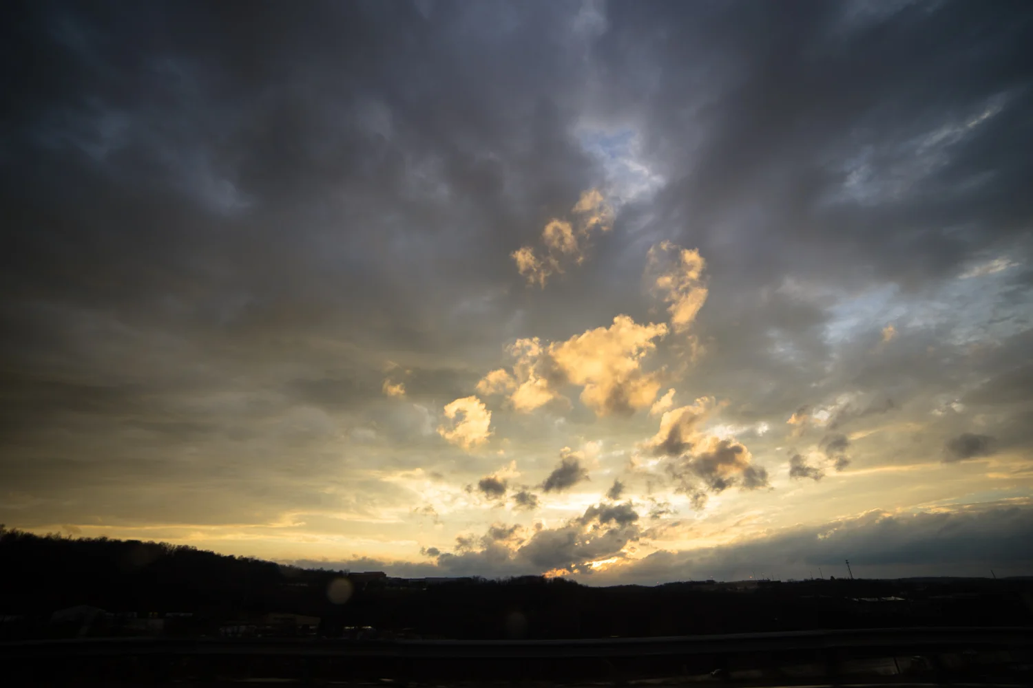The day was quickly coming to an end as we drove from Beaver Falls to Pittsburgh. Our goal was to be on the ridge overlooking Pittsburgh by 7:45-8pm to catch the tail end of the sunset. We were excited, the temperature was around 60 degrees when we left, the sun was brightly shining through a sky full of large puffy clouds; it was perfect conditions for a beautiful sunset.
