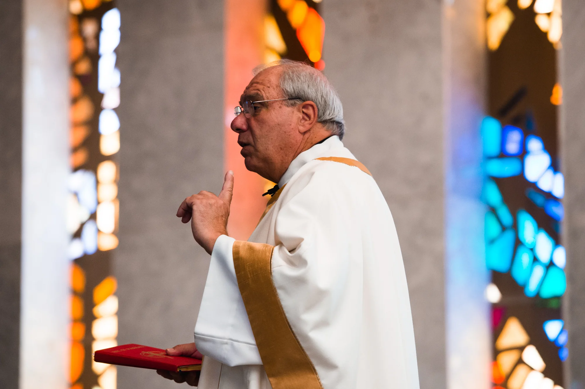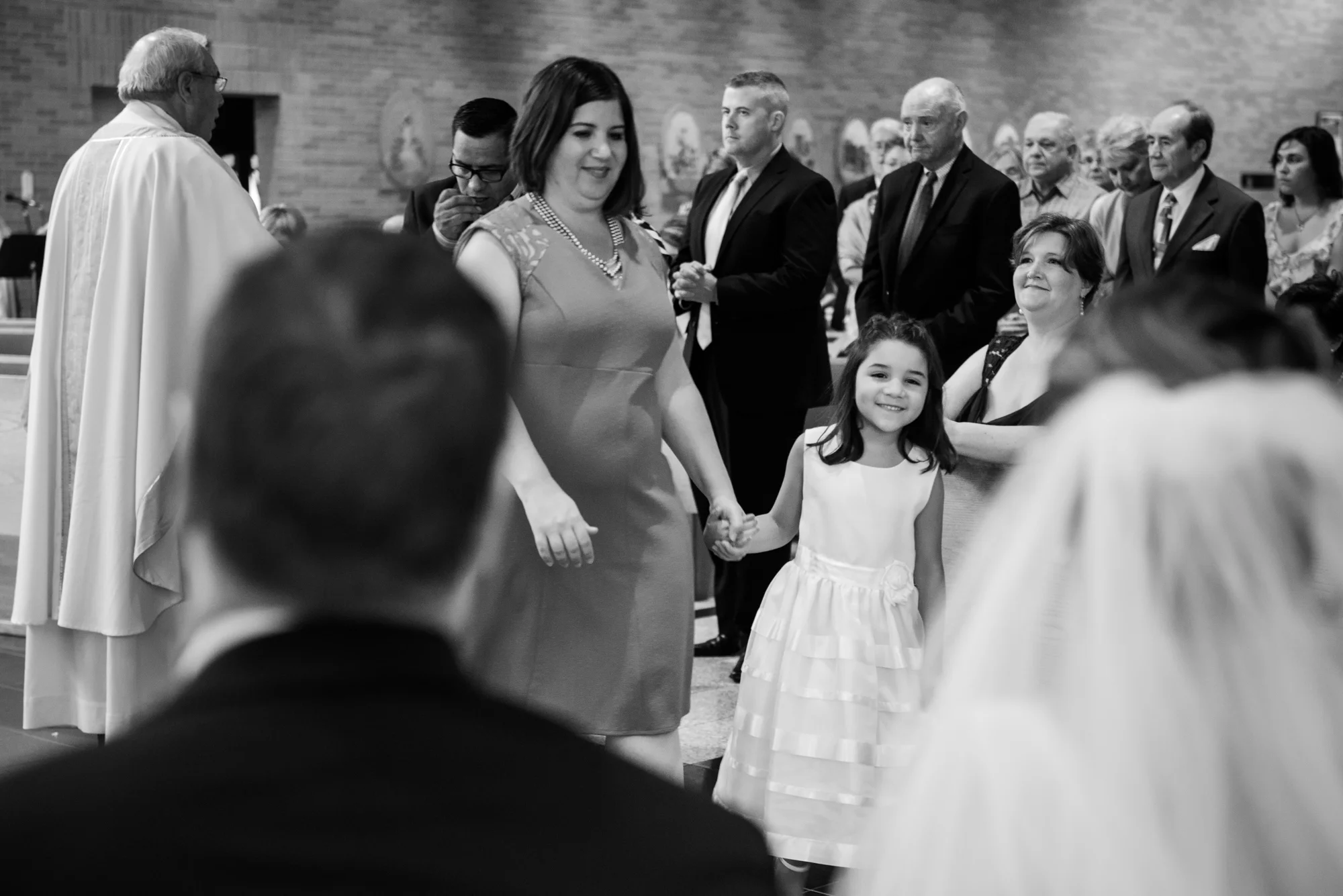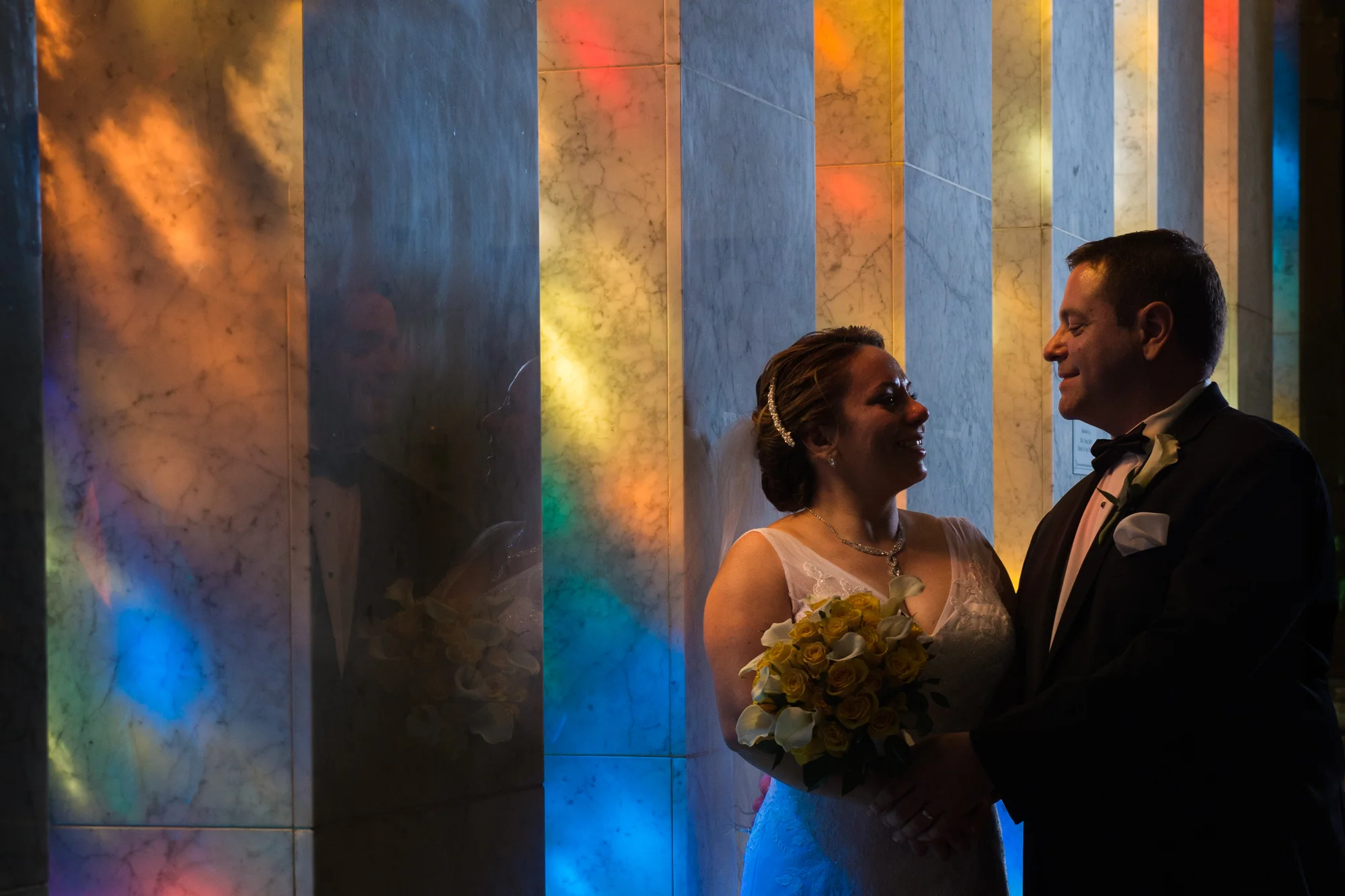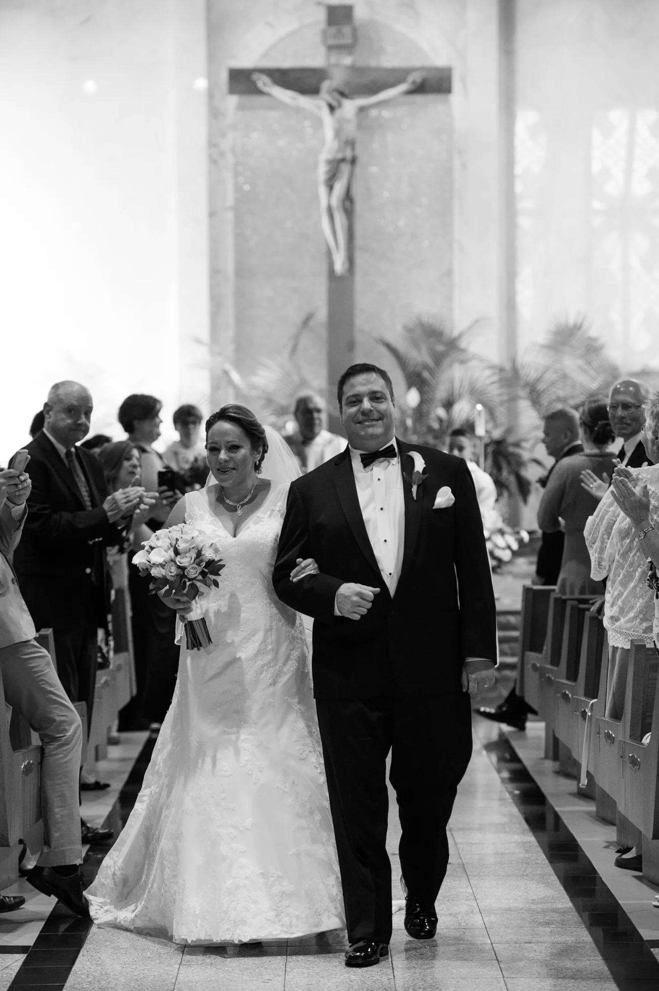 In the case of Peter and Ximena’s wedding, when I walked in to the Church of the Nativity in Burke Virginia, I knew immediately that I wanted to feature the couple with the stained glass windows. This wasn’t just a small window off to the side or at the front of the church, this window took up almost an entire wall, casting beams of beautifully intricate colored lights into the church.