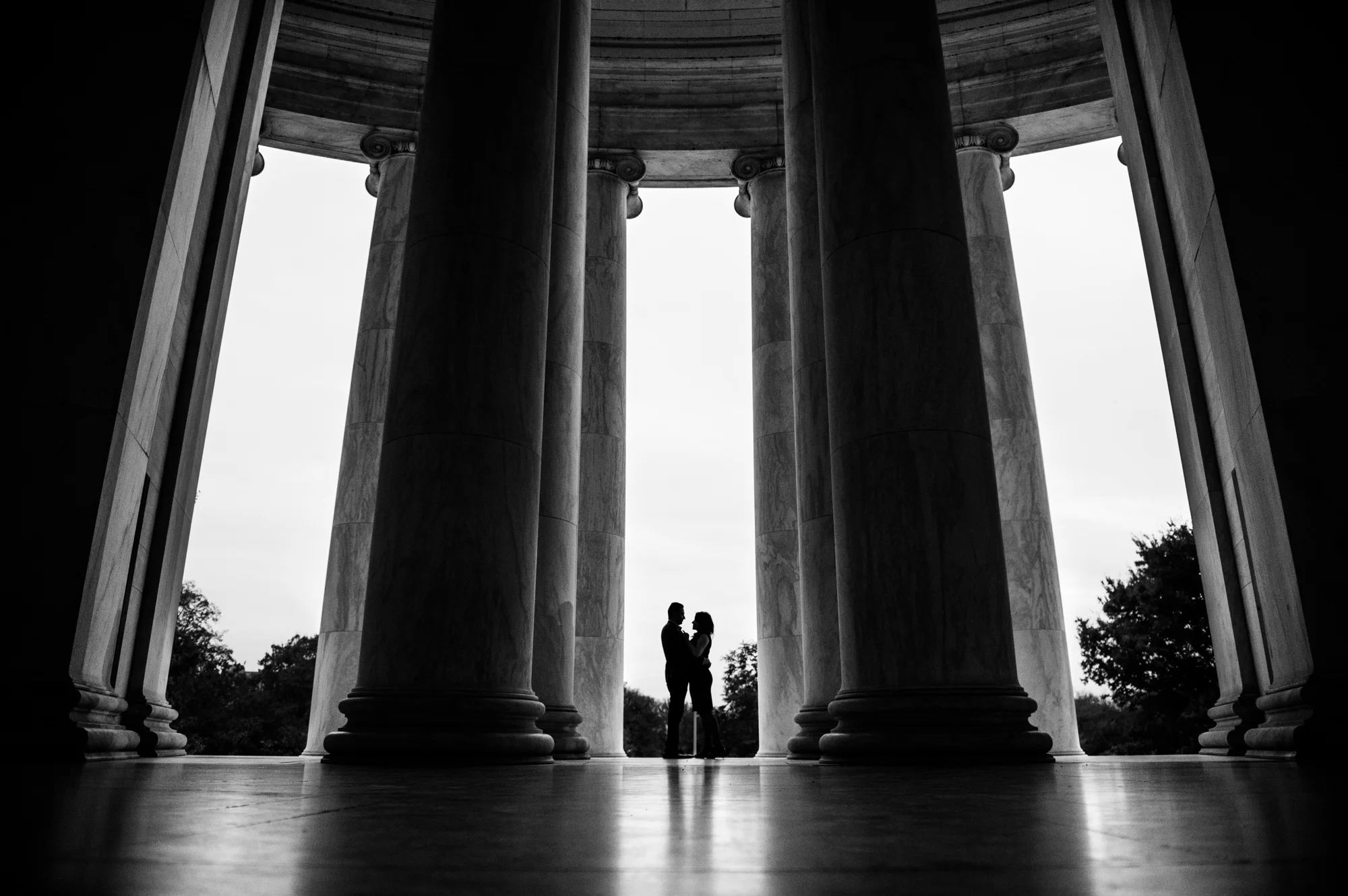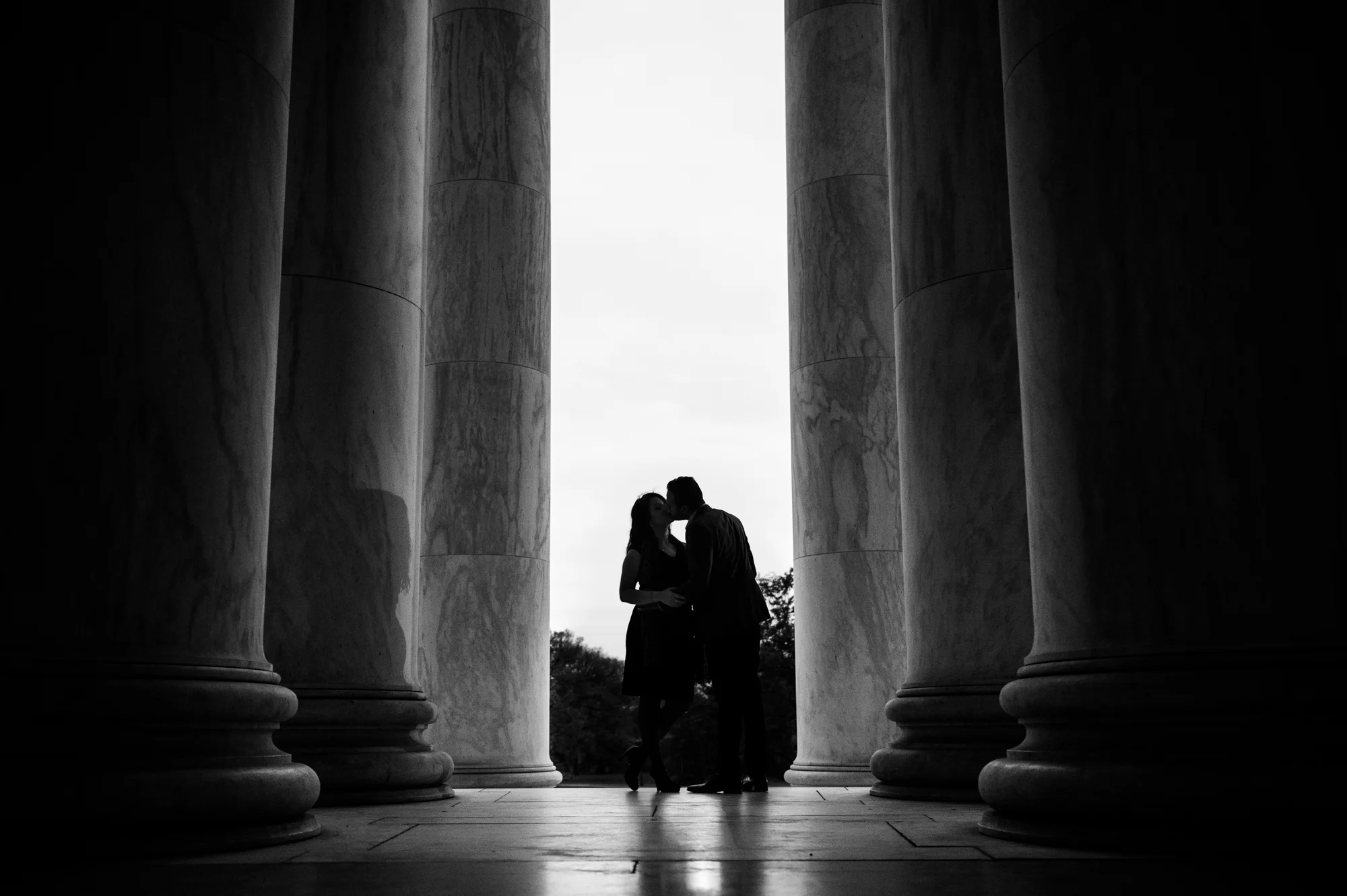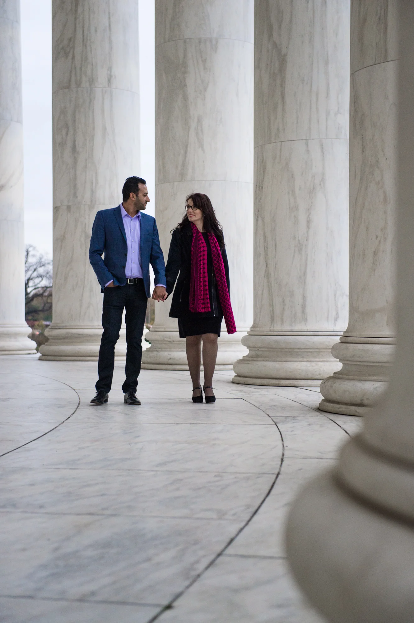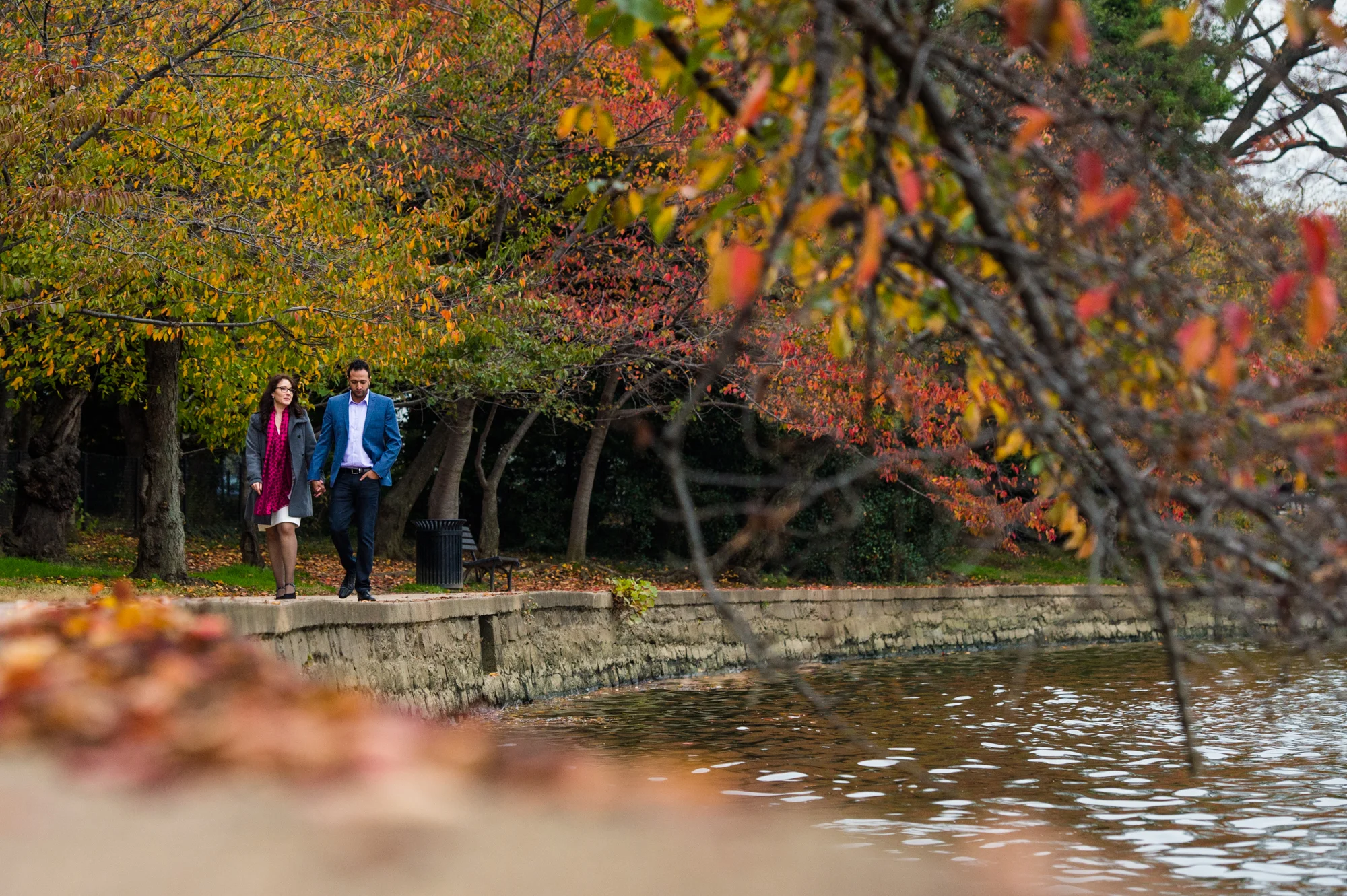 AJ and Alex wanted to feature the fall colors as well as some of the D.C. architecture in their engagement photos. In order to do this all in one area, we chose the Tidal Basin with the colorful trees and close access to the Jefferson Memorial.