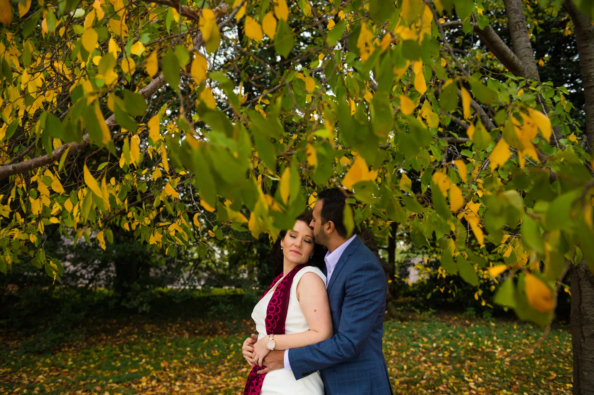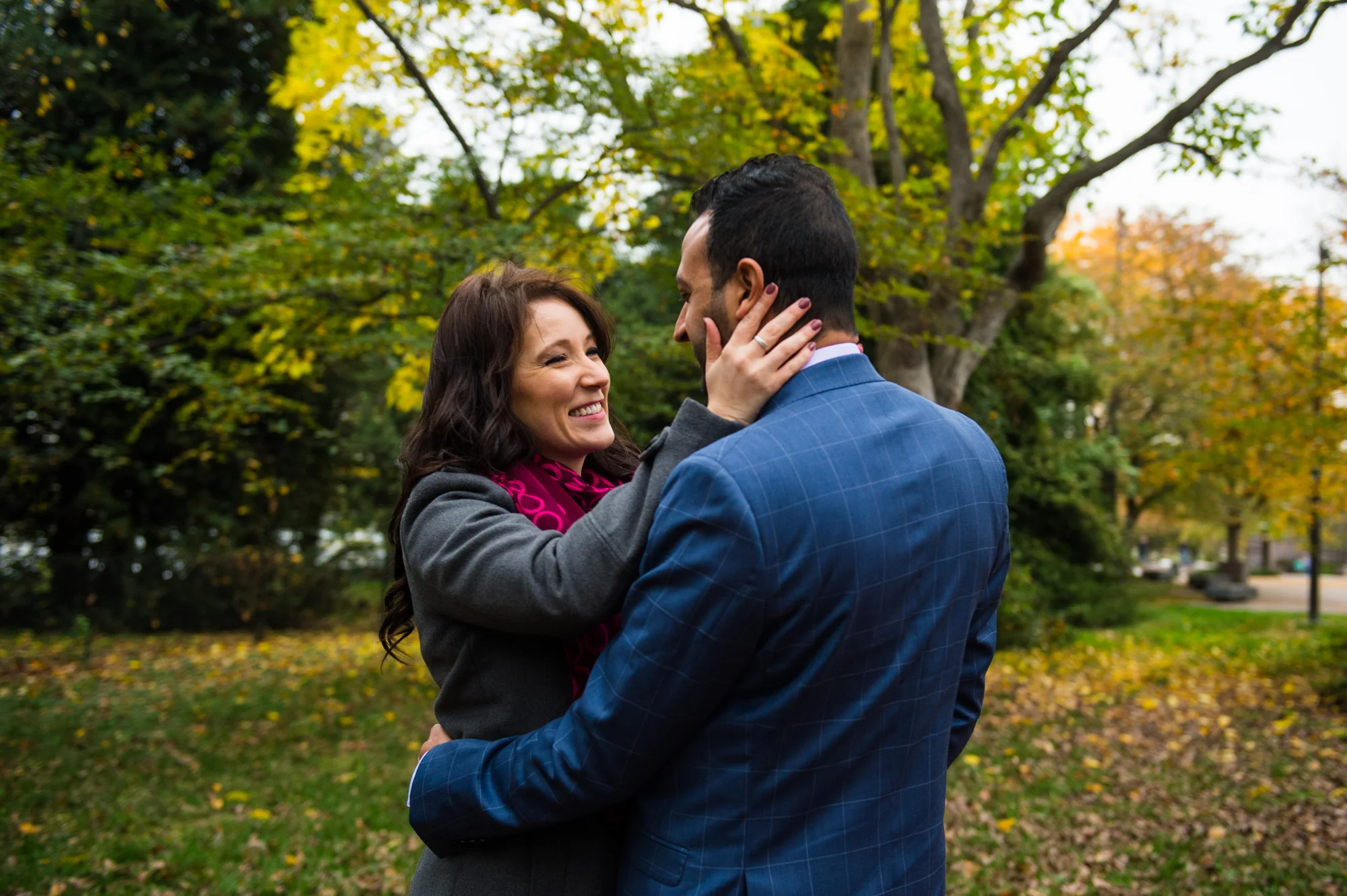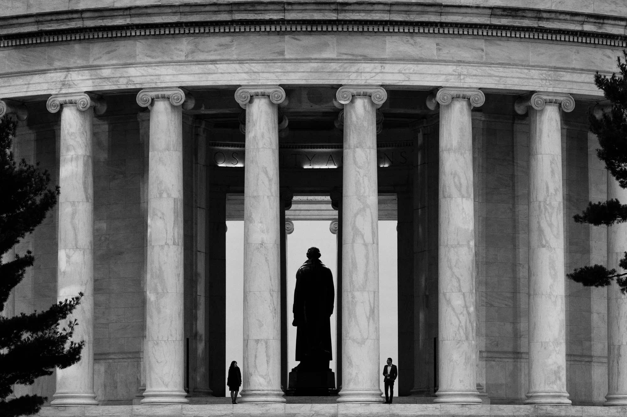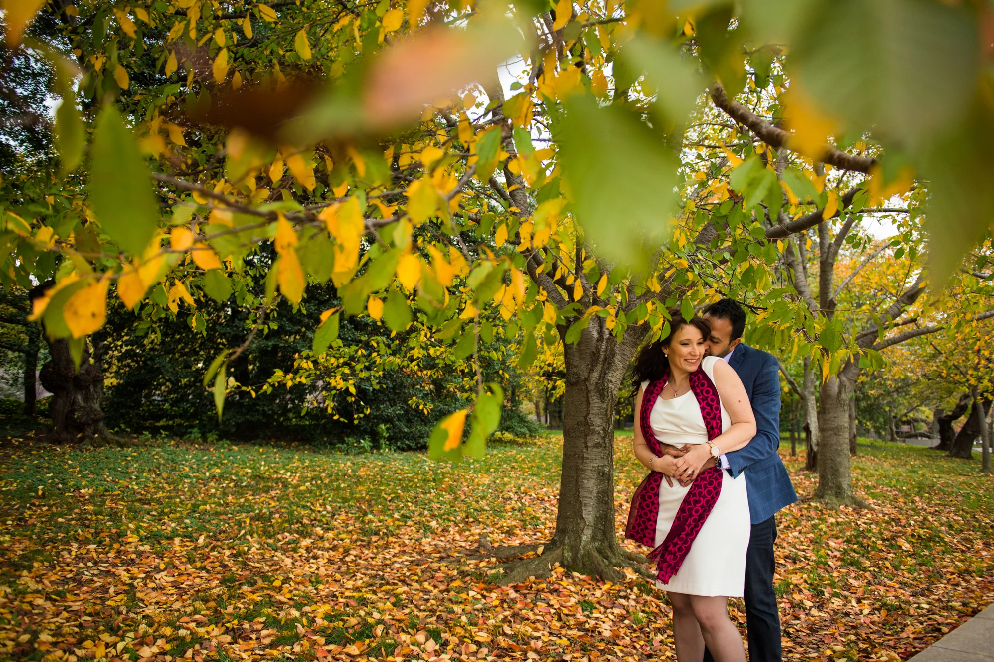 AJ and Alex wanted to feature the fall colors as well as some of the D.C. architecture in their engagement photos. In order to do this all in one area, we chose the Tidal Basin with the colorful trees and close access to the Jefferson Memorial.