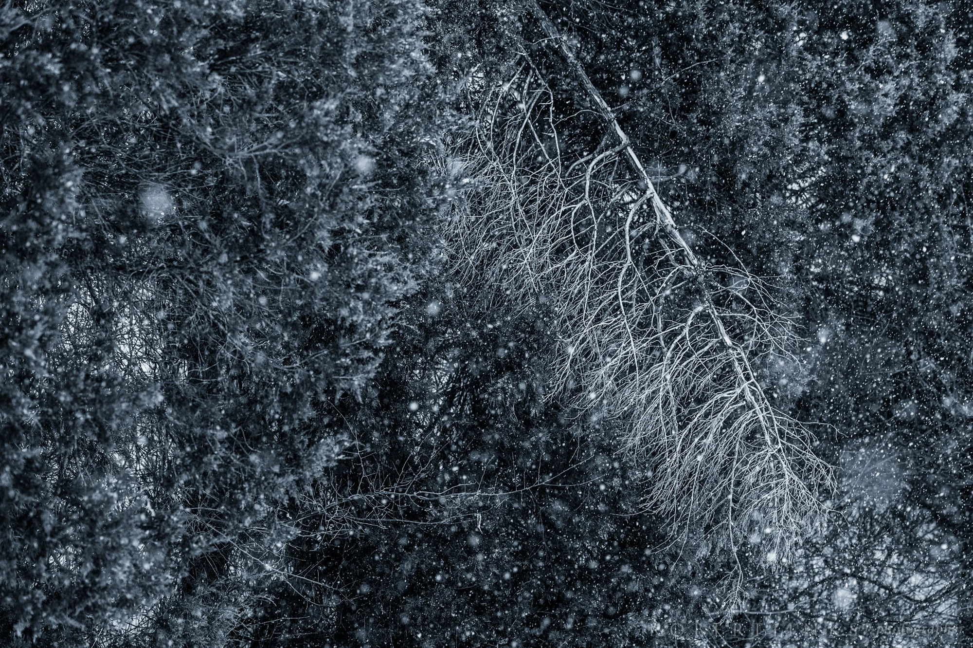 For all of these images I focused more on close shots as opposed to landscapes. For this first set of images I wanted to show the detail of snow by isolating snowflakes and other shapes with low apertures and black and white processing; however, I also wanted to also convey a sense of extreme cold. Black and white warms up the images more than I would like, so I turned these a slight tinted blue and boosted the contrast.