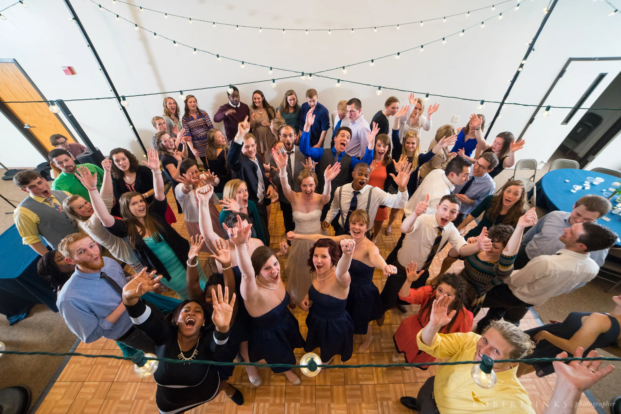 This last image just might be my favorite! Not only was it fun for me to get this image from a technical side (standing on a chair with a camera attached to a tripod, pre-focusing to about the right area, using a remote to fire two wireless flashes, setting a two second timer so I had time enough time to get the camera in the air, and getting everyone to shout towards the ceiling) , but feeling and capturing the energy, friendship and excitement from the day was exhilarating and something I will not forget!
