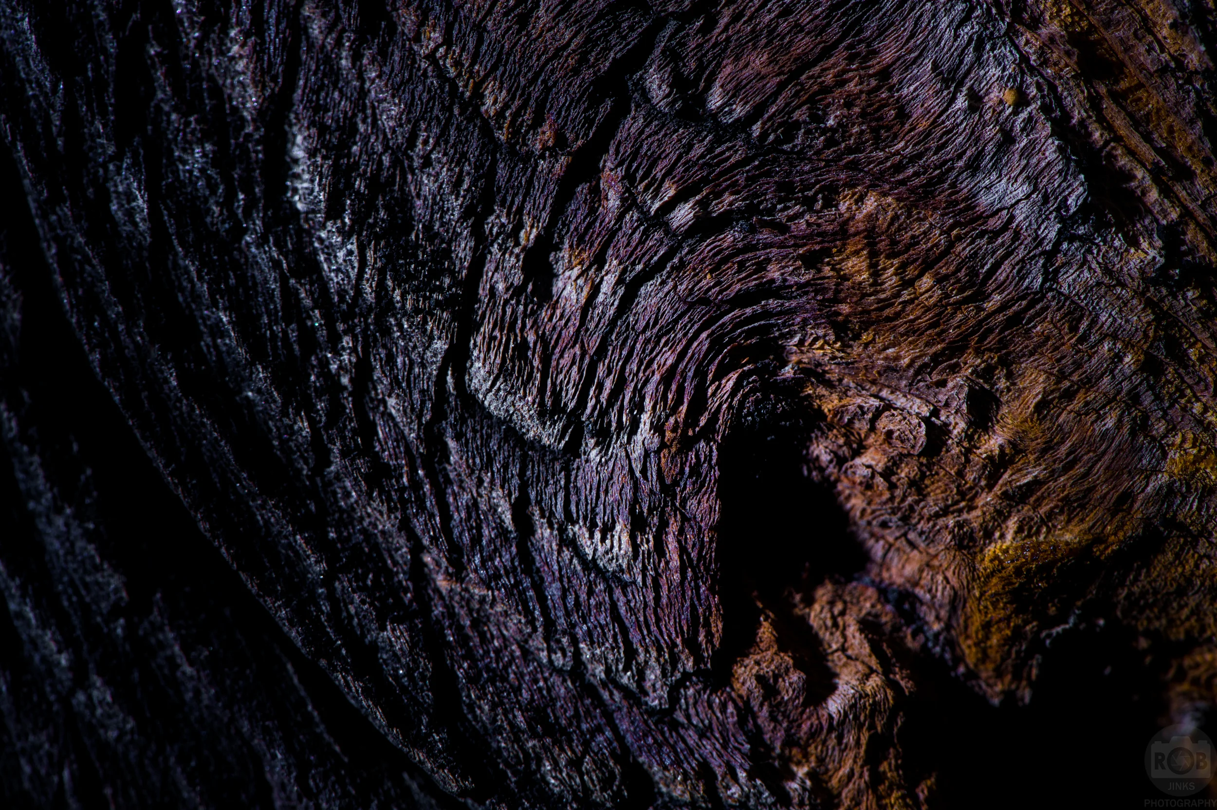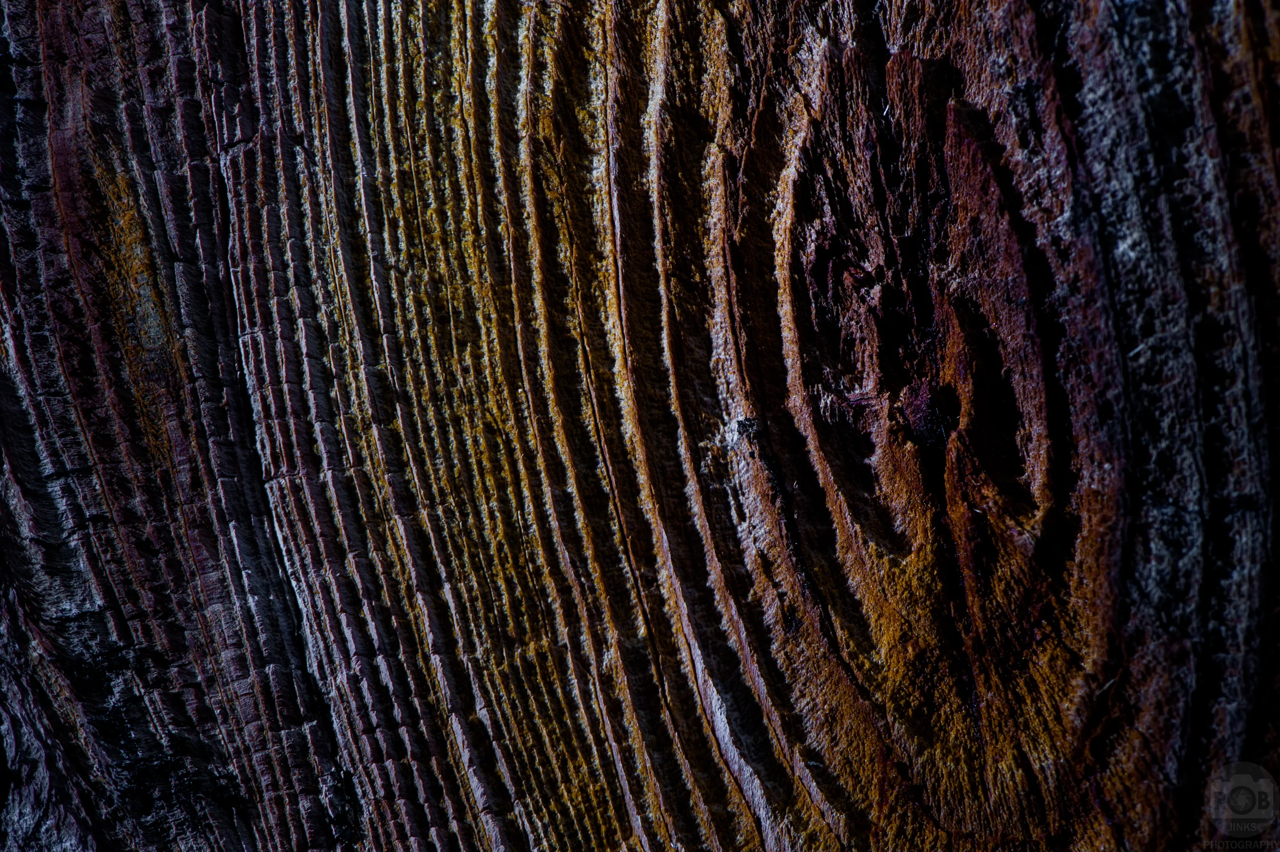 The first was a pretty normal looking tree, but what fascinated me were the patterns of the bark. Using the flash to enhance the directional light, I was able to reveal the hills and valleys of the wood, creating an abstract collage of lines and textures. A little tweaking in Adobe Lightroom brought out the intricate colors which were already subtly there.