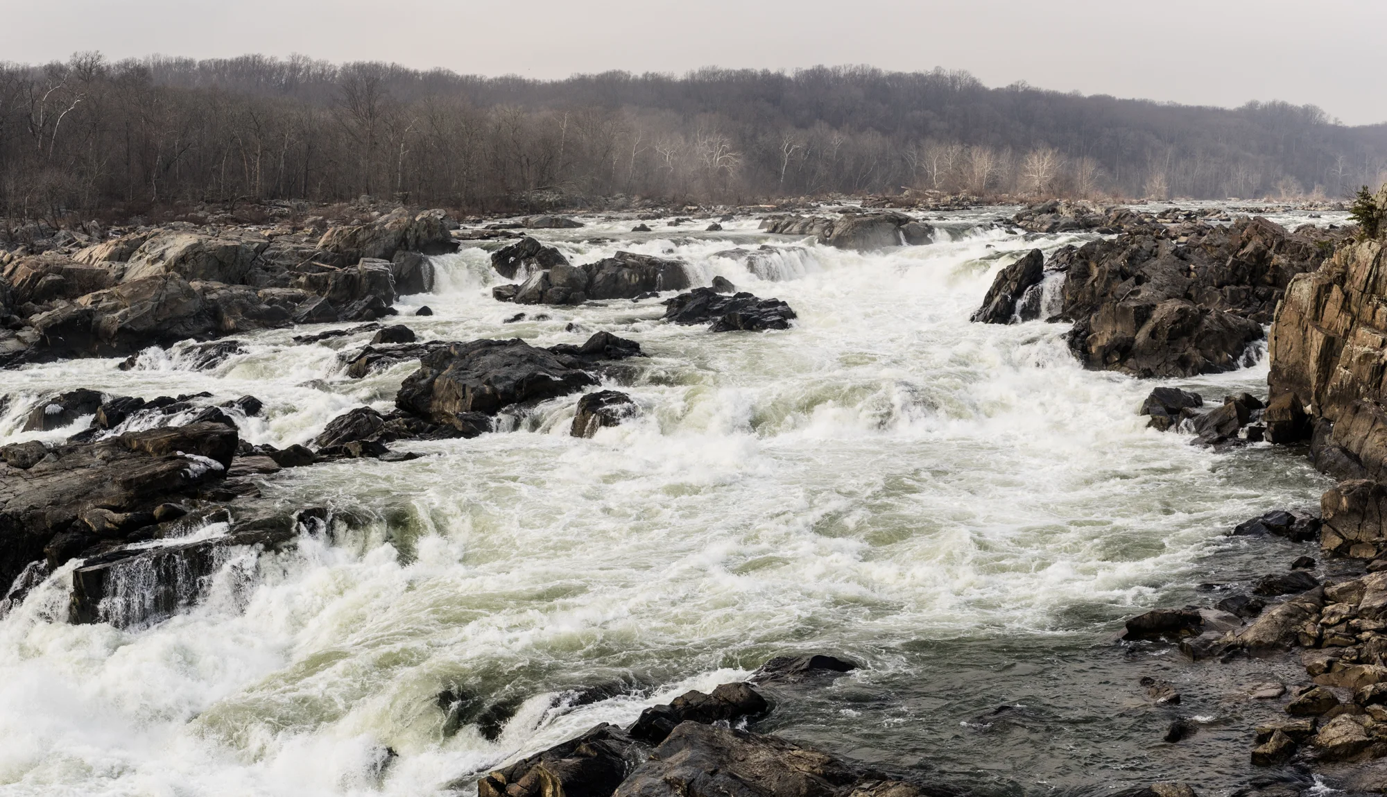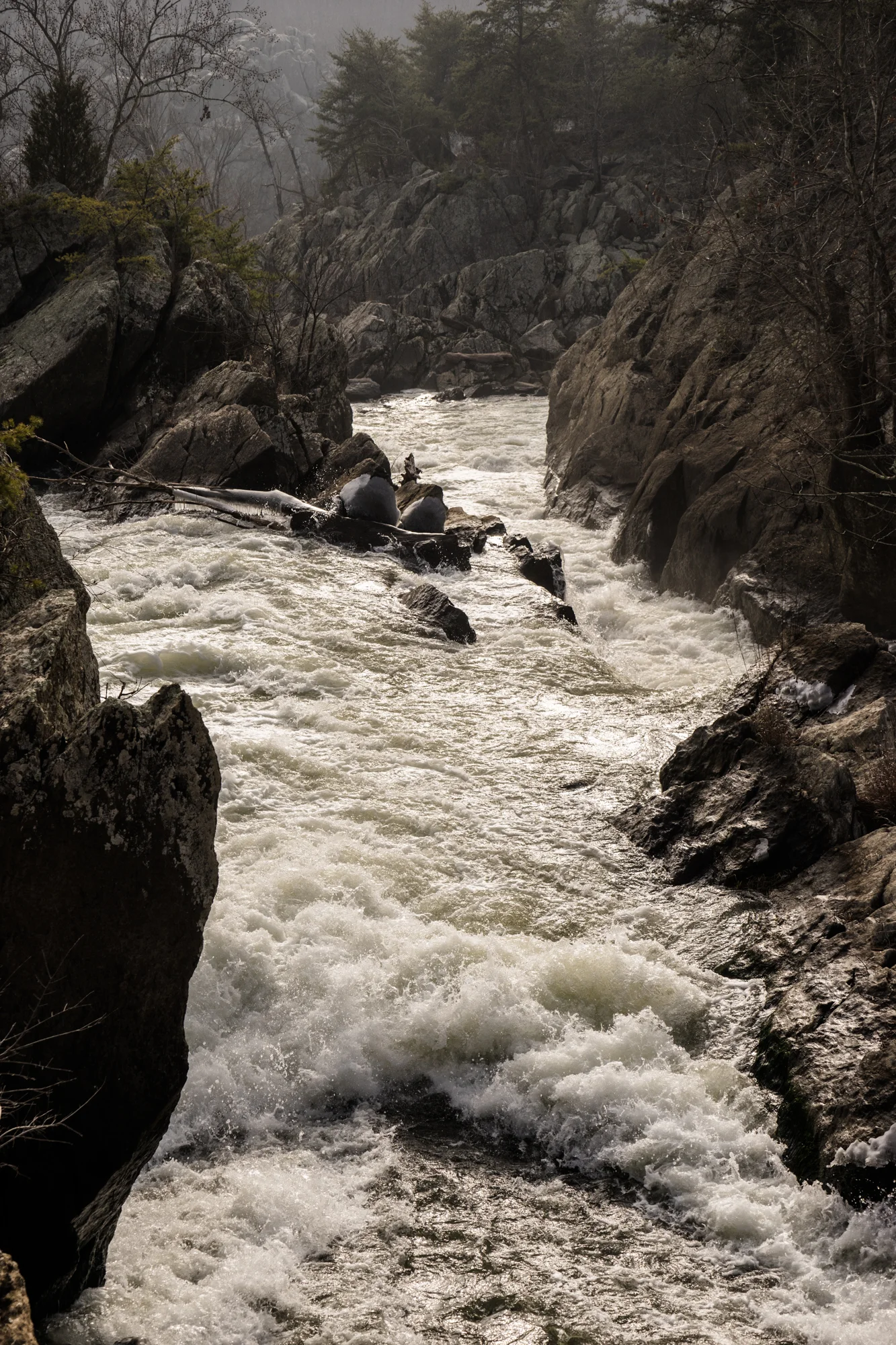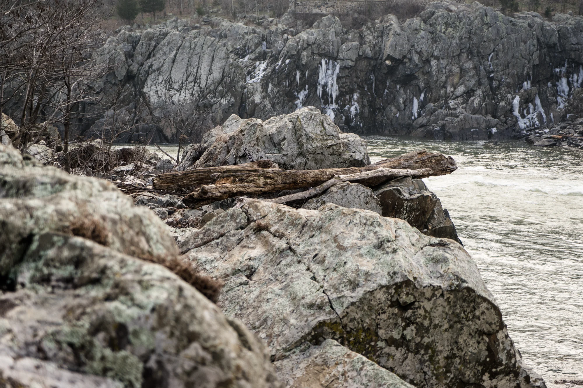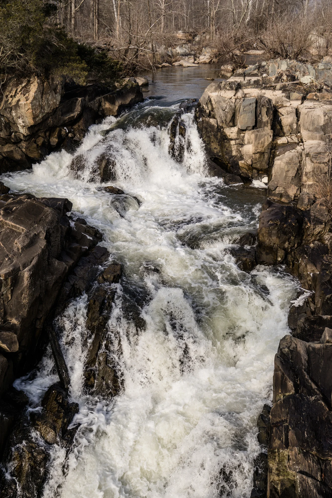 These are some images I grabbed while on a hike yesterday on the Maryland side. I got a few to show the wide angle expanse of beauty, but also focused in on the details, such as fallen trees, water bubbles, and the rush of flowing water.
