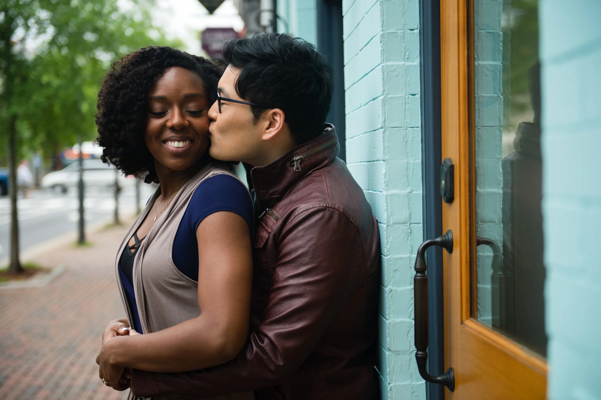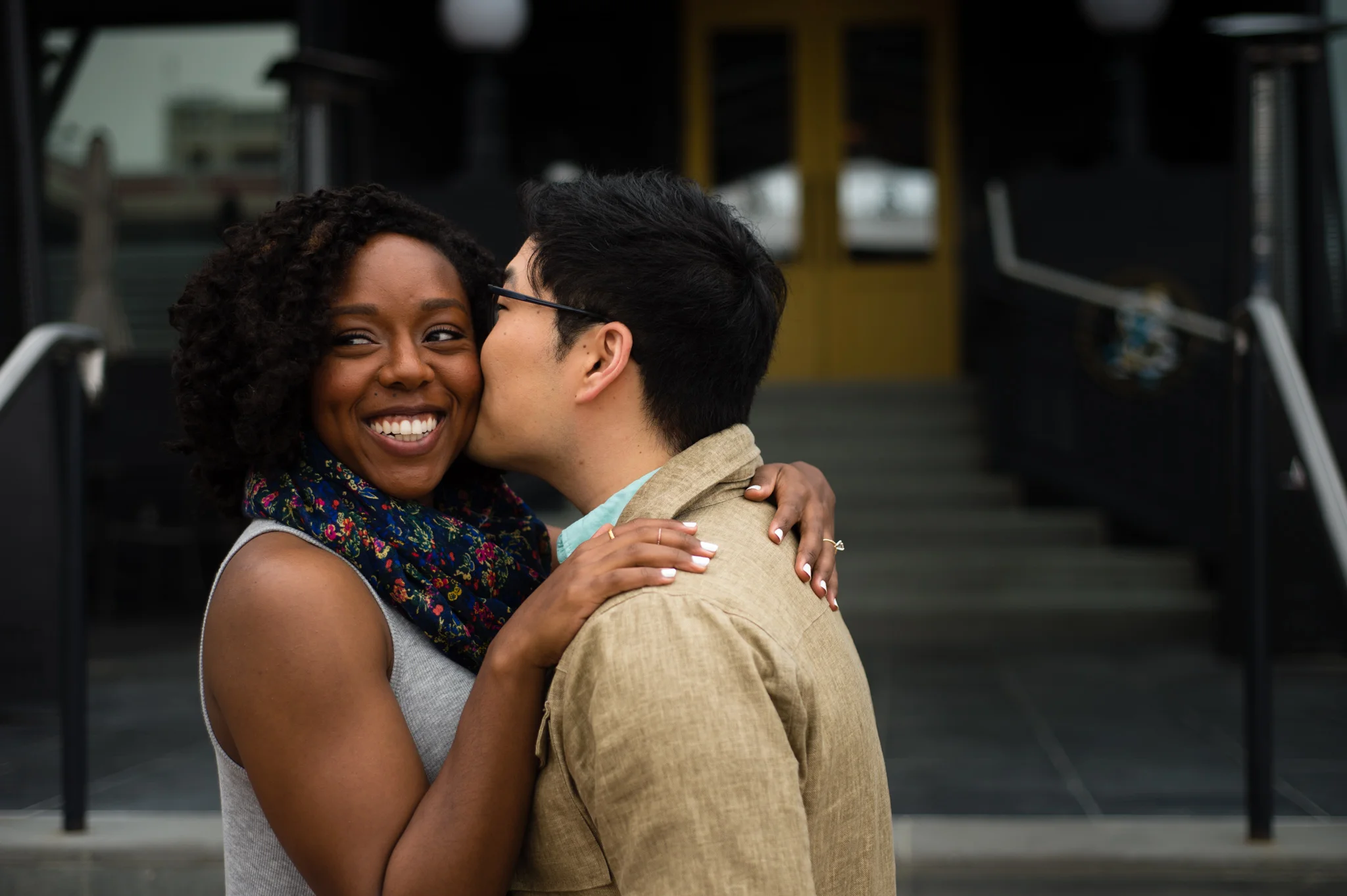 This lead to some neat shots, my favorite of which came when we discovered the bright yellow wall of a bike shop. I can’t wait to photograph Paul and Shannon’s wedding later this year, especially after seeing how great they were in front of the camera! I had no trouble getting them to laugh, smile, and enjoy this “date” together.