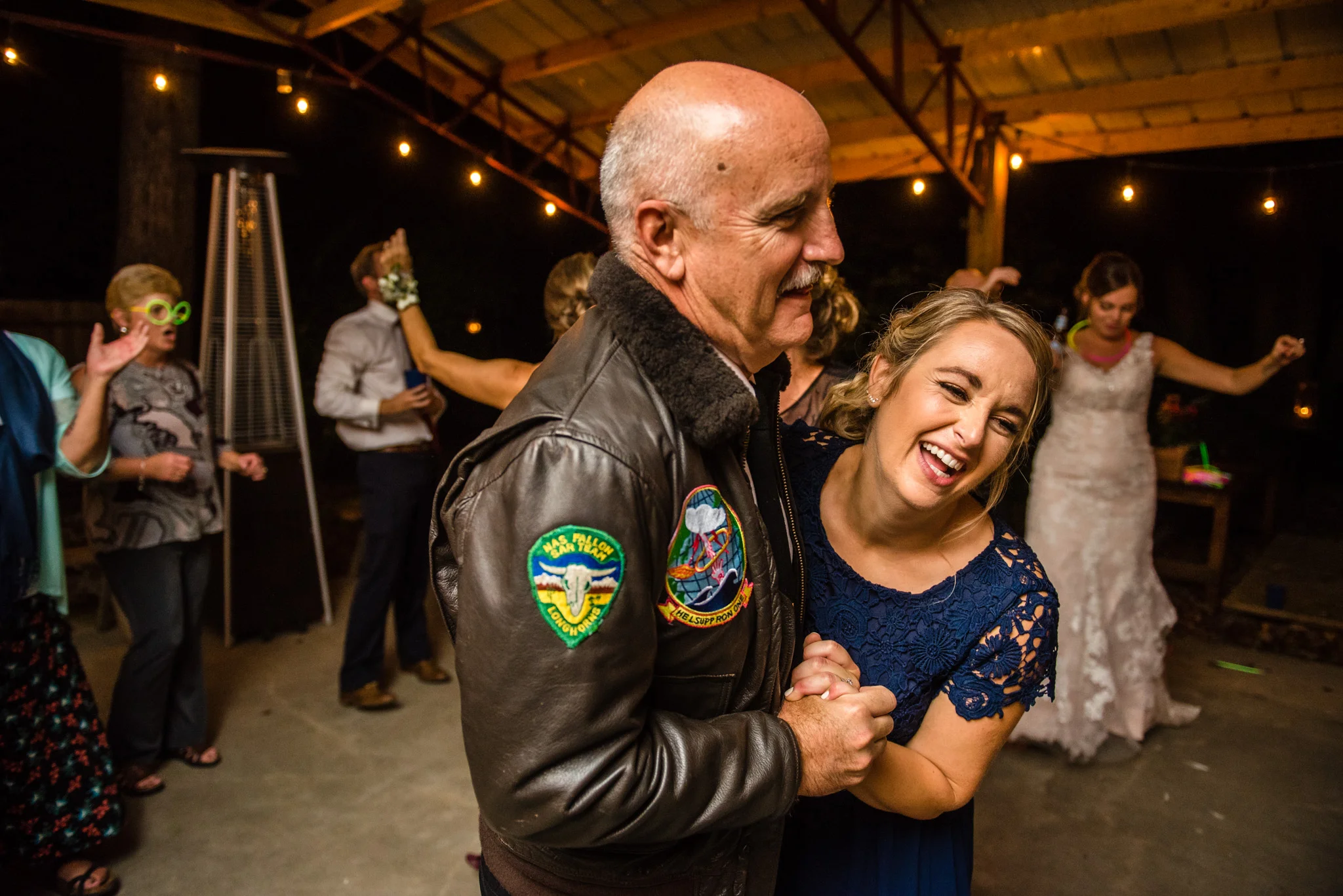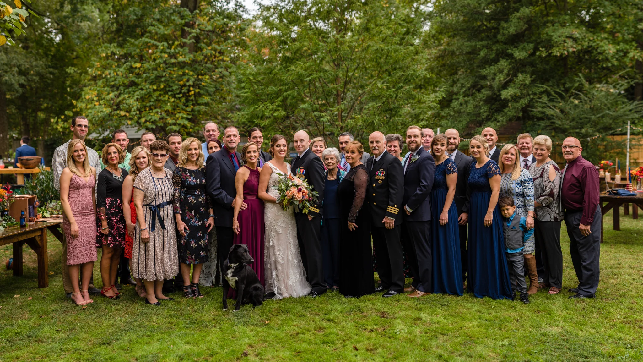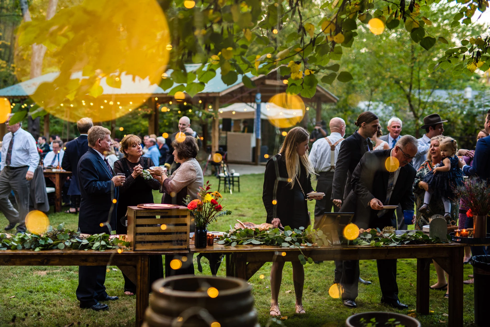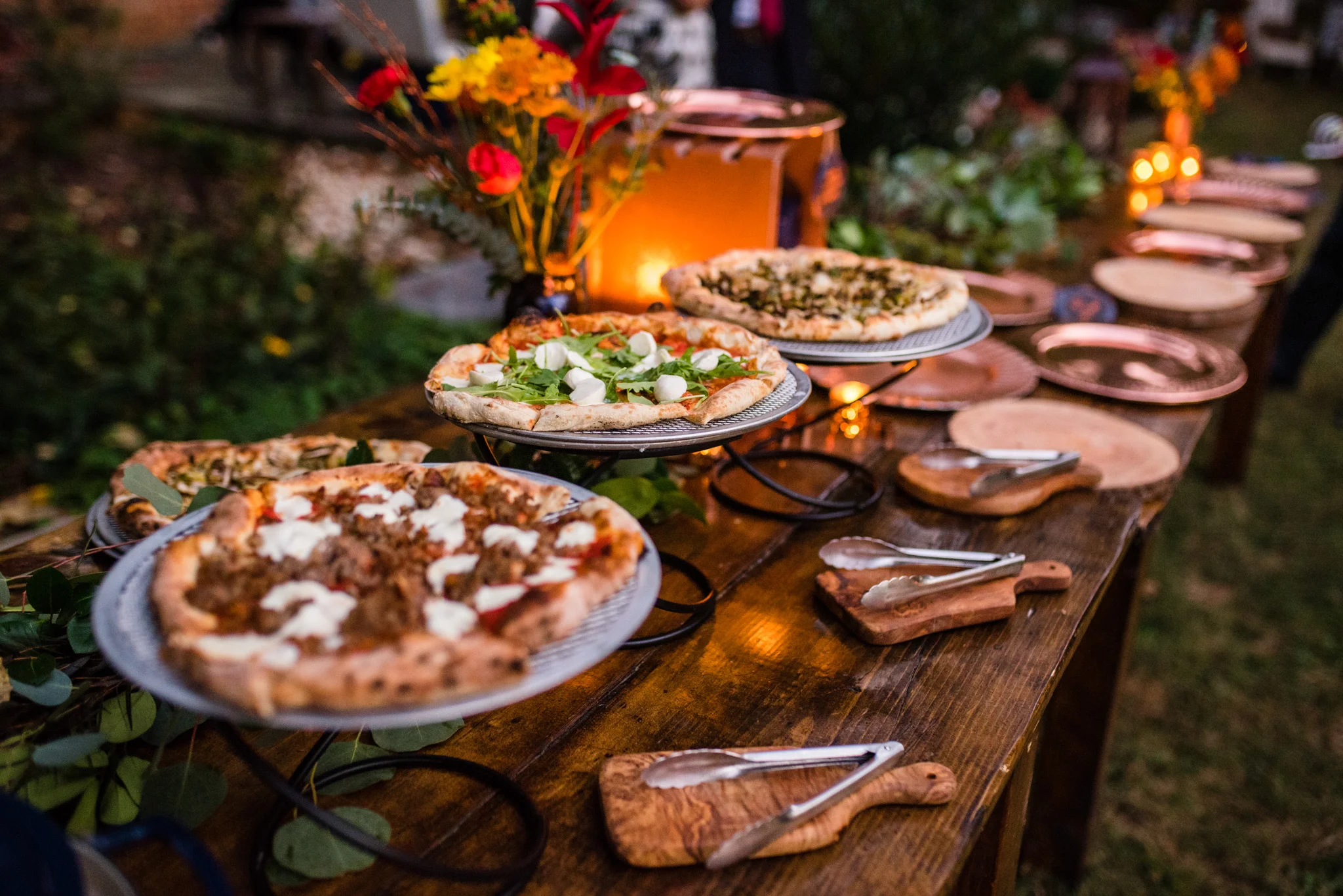 Their dancing was underneath a large covered pavilion, guests sat at beautiful wooden tables decorated for fall, lights hung from trees all around the yard, and much more. My favorite detail of the night was pizza cooked on site in a huge wood-fired pizza oven!