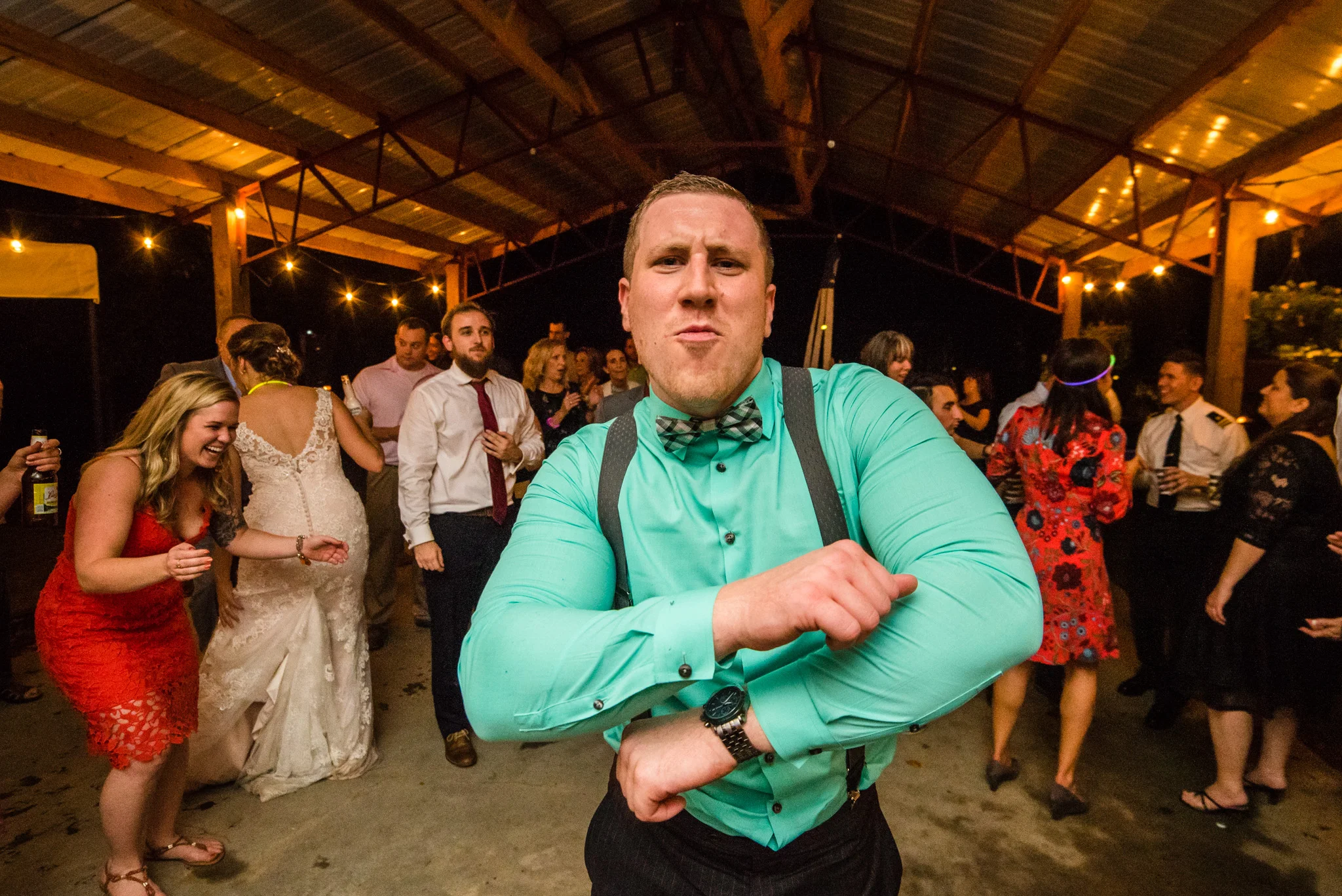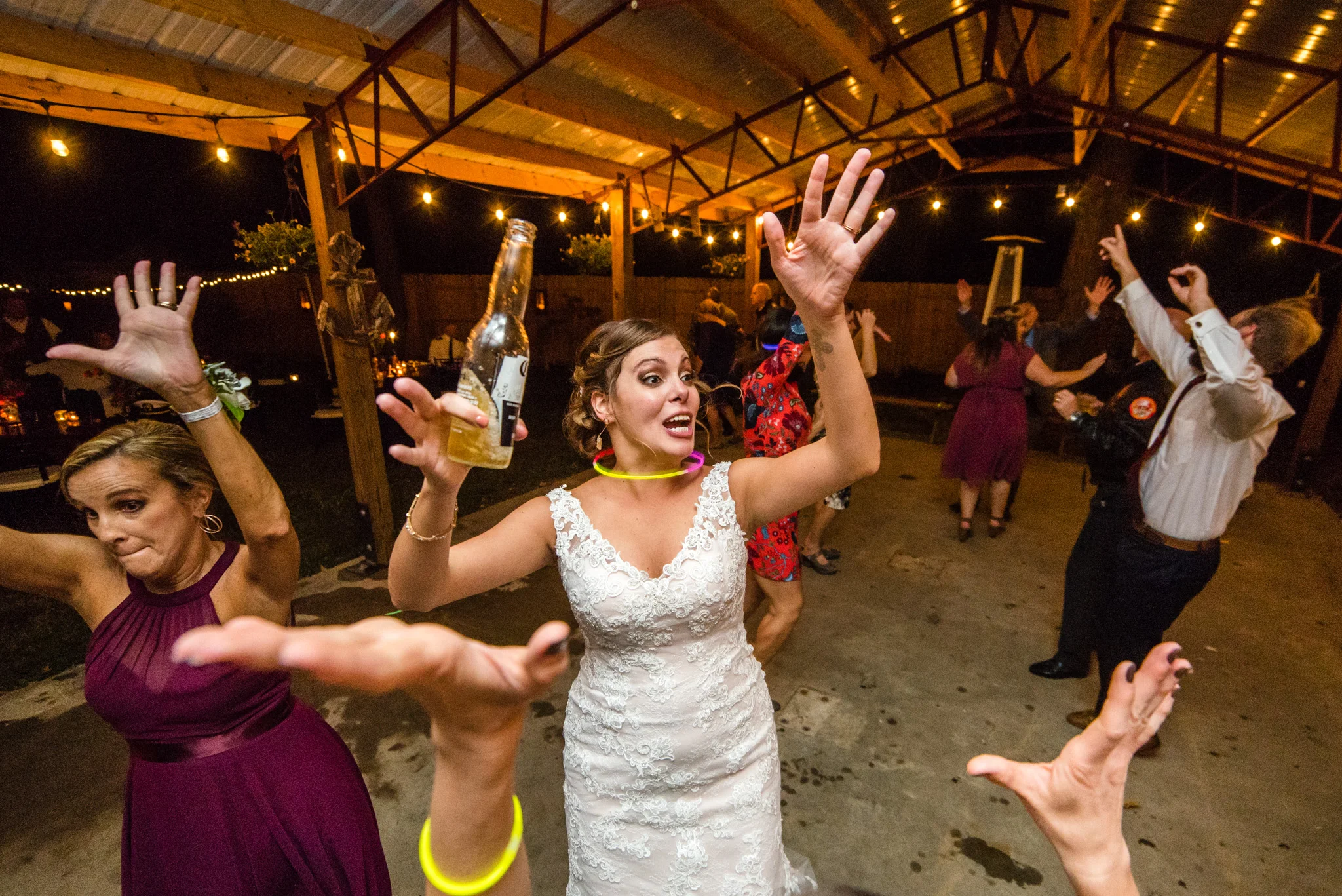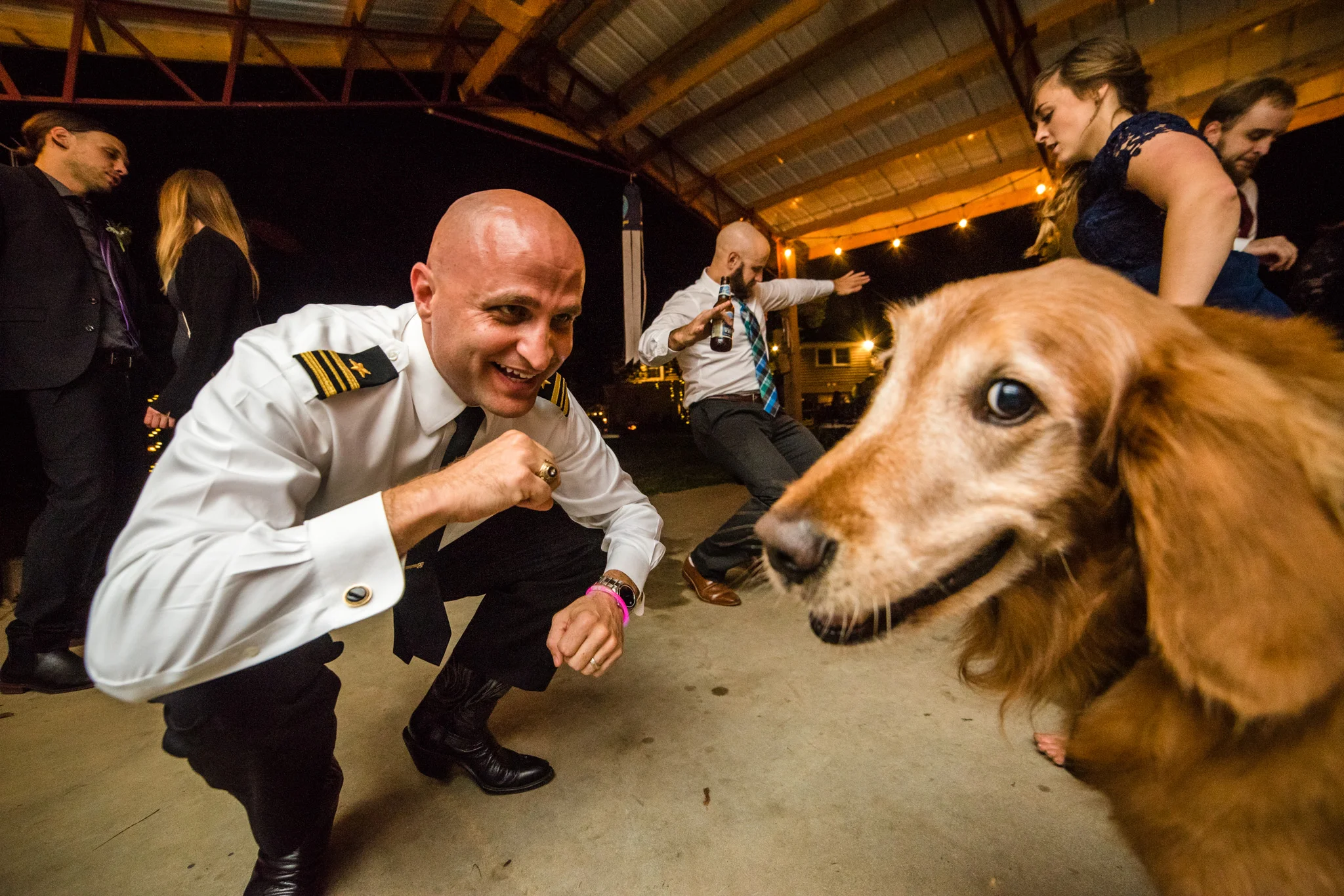 Their dancing was underneath a large covered pavilion, guests sat at beautiful wooden tables decorated for fall, lights hung from trees all around the yard, and much more. My favorite detail of the night was pizza cooked on site in a huge wood-fired pizza oven!