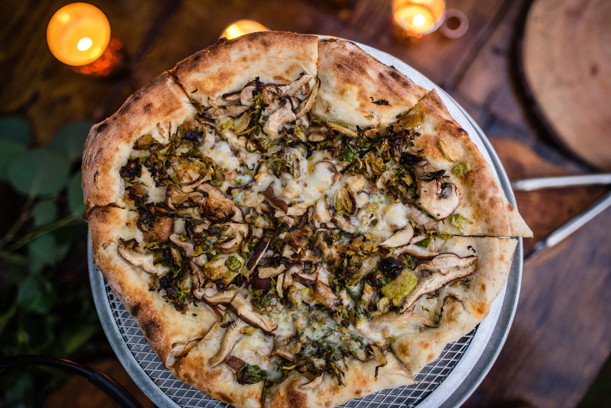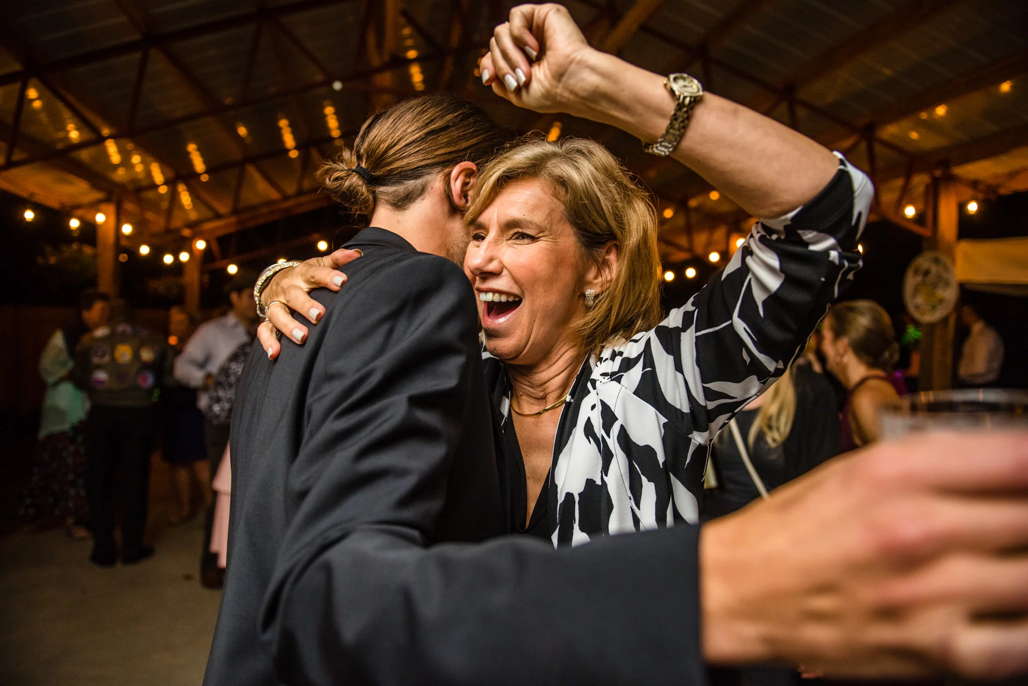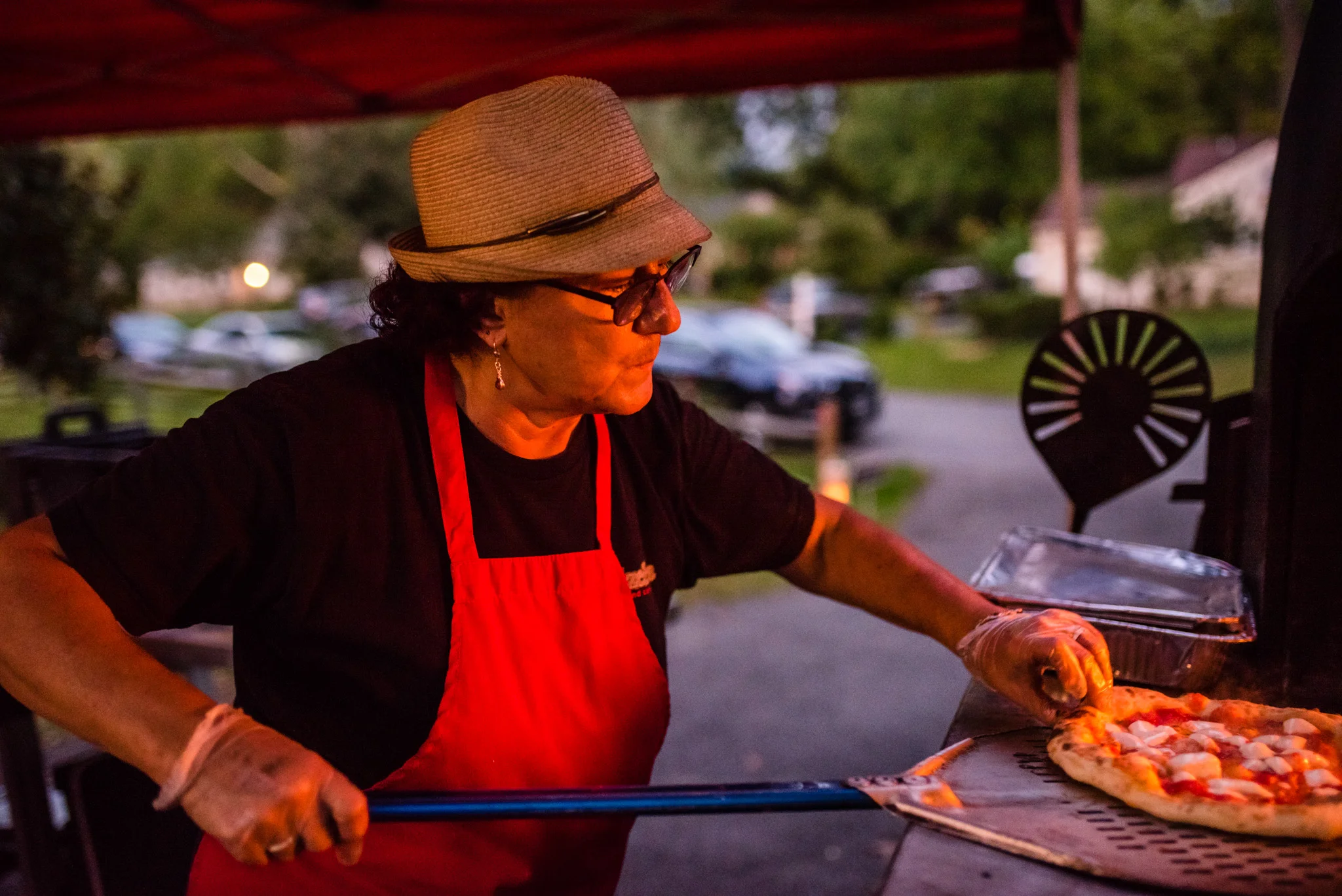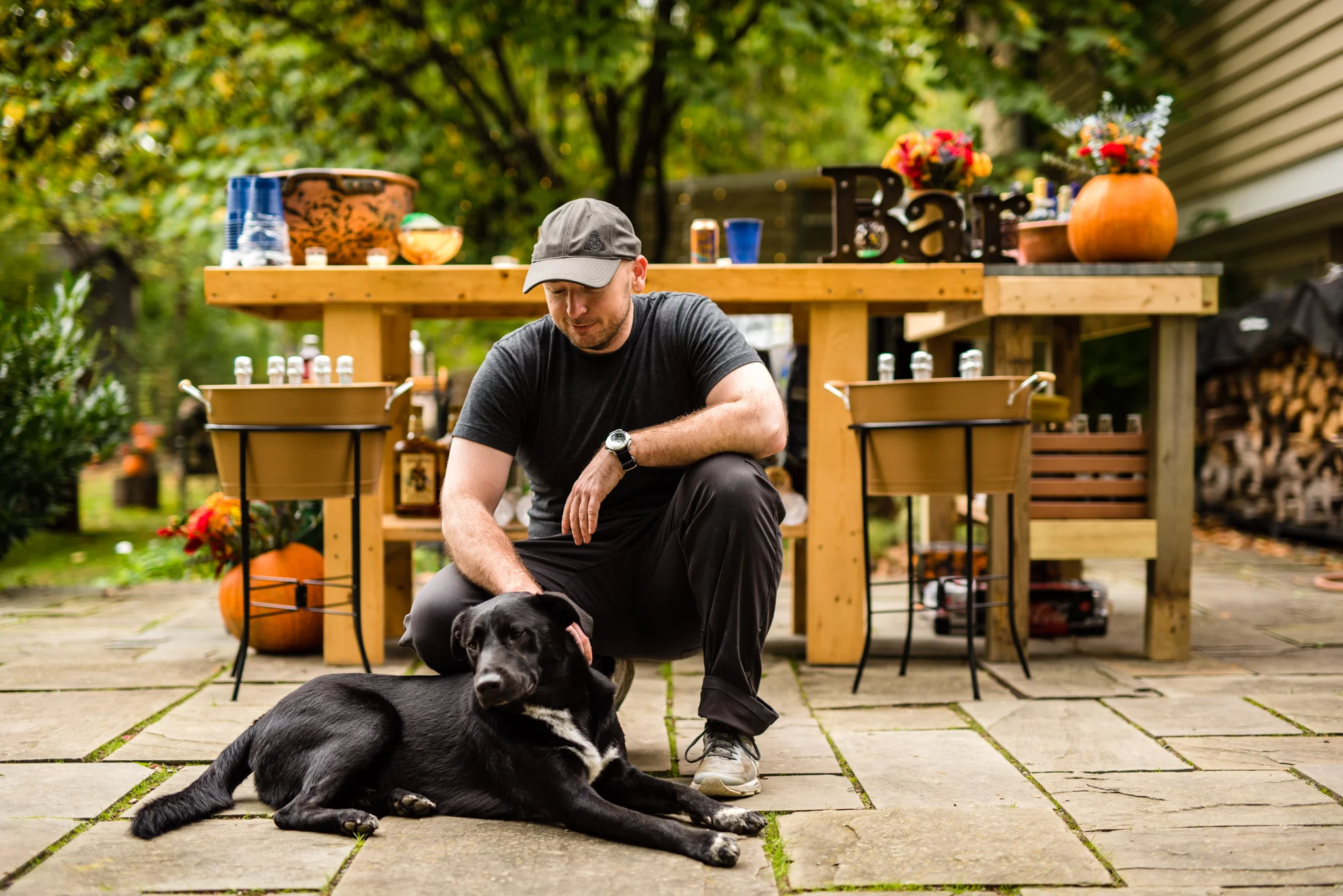 Their dancing was underneath a large covered pavilion, guests sat at beautiful wooden tables decorated for fall, lights hung from trees all around the yard, and much more. My favorite detail of the night was pizza cooked on site in a huge wood-fired pizza oven!