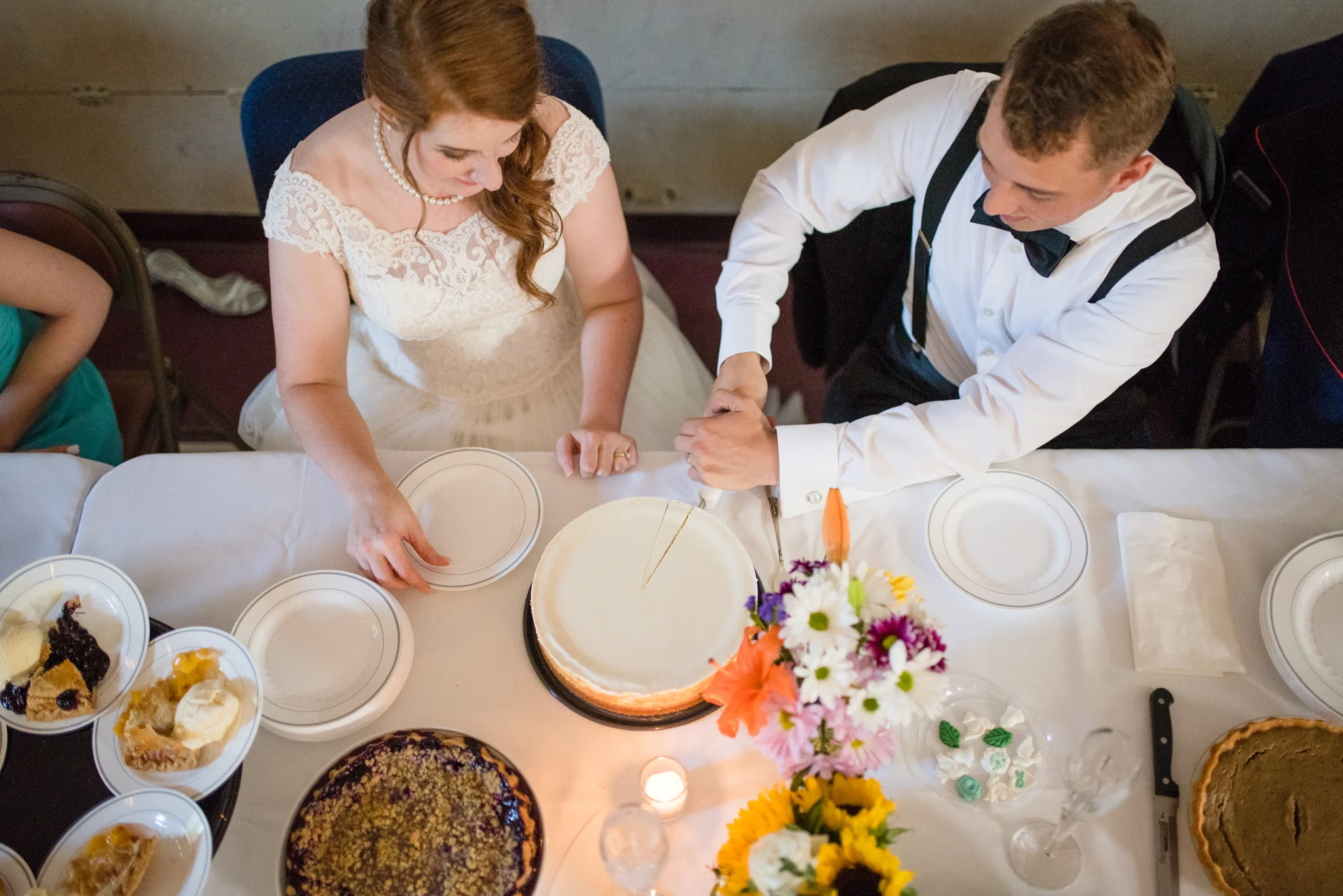 The wedding was held at Trinity United Methodist Church in Annapolis, a beautiful church with a high wood ceiling, lots of windows, and a classic exterior. Seth and Christine are pretty carefree and easygoing, going so far as to chose pizza and pie for the reception! That was a first for me, and hopefully not a last.