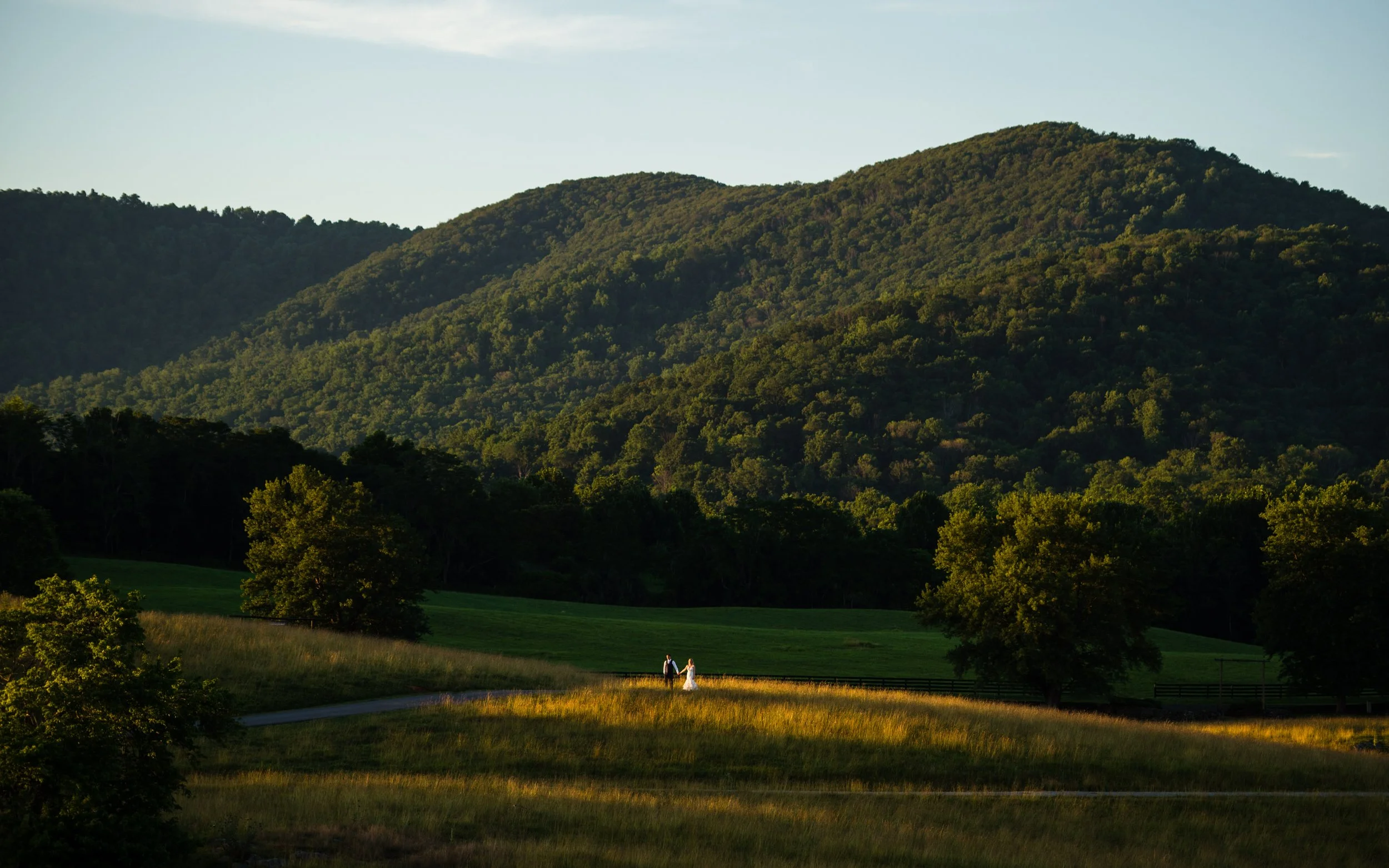 While there are many country clubs in the area, Evergreen Country Club is one where I didn’t feel like I was at a golf course. Located in Haymarket, Virginia, what sets it apart are the manor house and the ceremony space directly adjacent. The garden and stone walls feel timeless and elevated. Just beyond that are wooded hills that are perfect for photography at sunset.