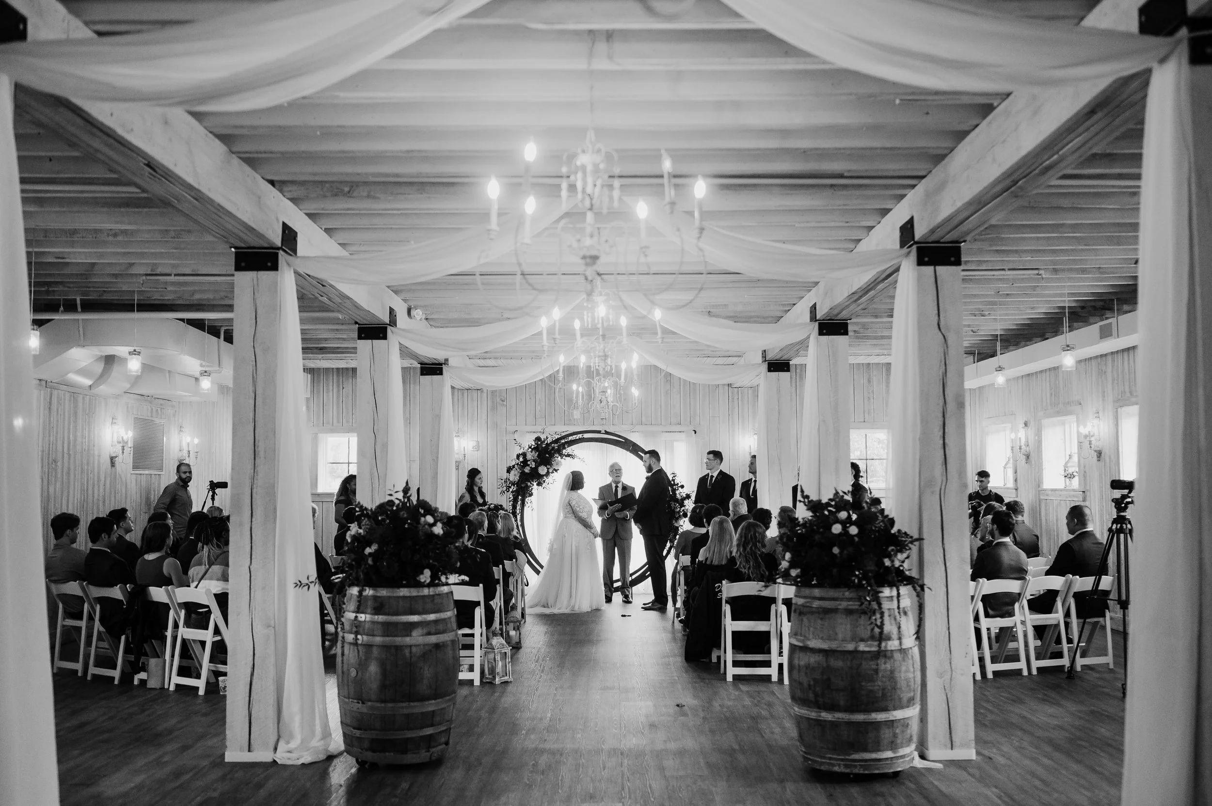 Beginning as a dairy barn in 1939, Sweeney Barn has been transformed into a rustic, cozy, yet modern venue with dark interior wood and elegant chandeliers. It is a versatile space fit not just for weddings, but events, music, and more.