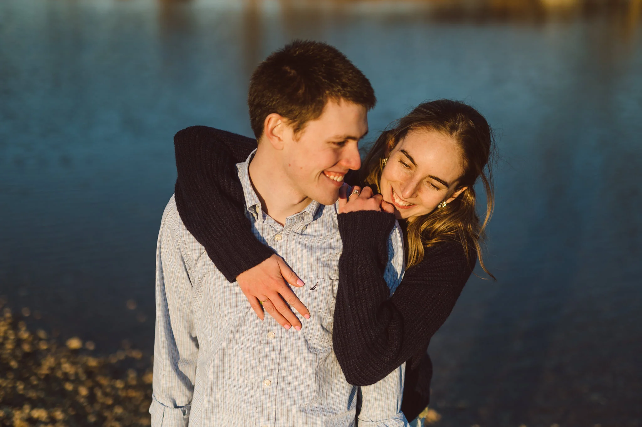 The last set of photographs we made together was right on the boardwalk leading out over the water, just as the sun was starting to dip below the tree line. I had been waiting all of the session for that time to come and when it did we were given some truly beautiful light. Henry and Alexandria rested in each others arts, taking it all in and looking forward to their life to come.