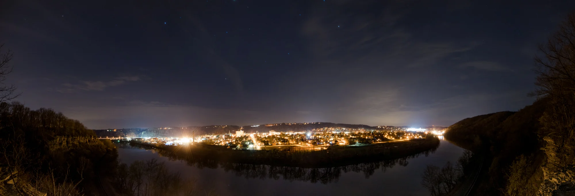 Directly east of Beaver Falls, across the Beaver River, lies a bare outcropping of rocks which provides a perfect view.
