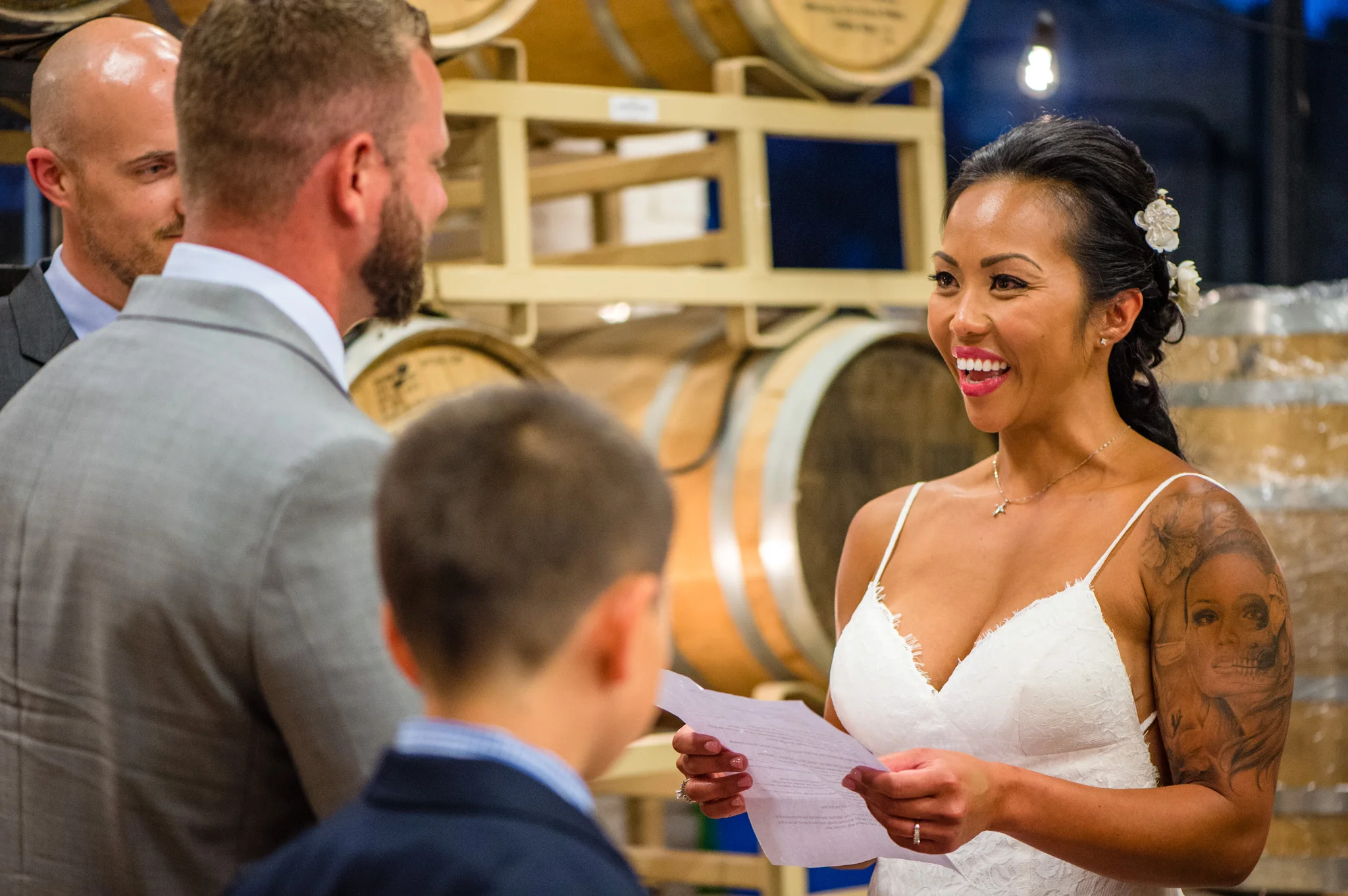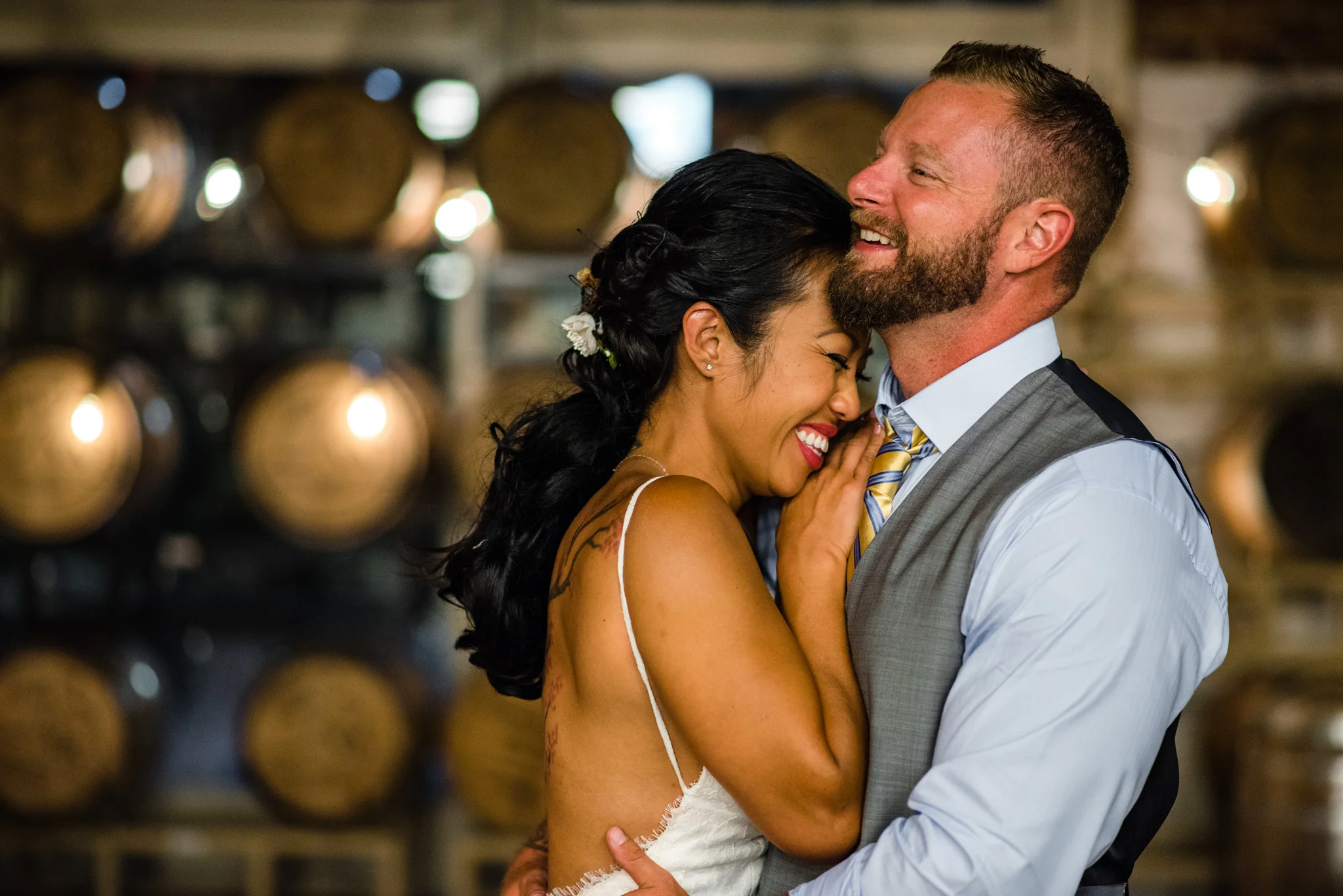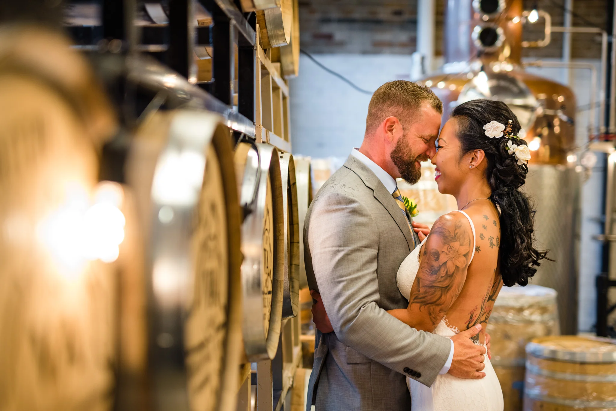 Catoctin Creek Distillery in Purcellville is a very unique place for a wedding event. It is an active distillery, which, fun fact, was founded “in 2009 as the first legal distillery in Loudoun County since before Prohibition.”  I loved capturing portraits around the venue, utilizing the barrels, the machinery, the unique architecture; it was very different from more standard wedding venues.