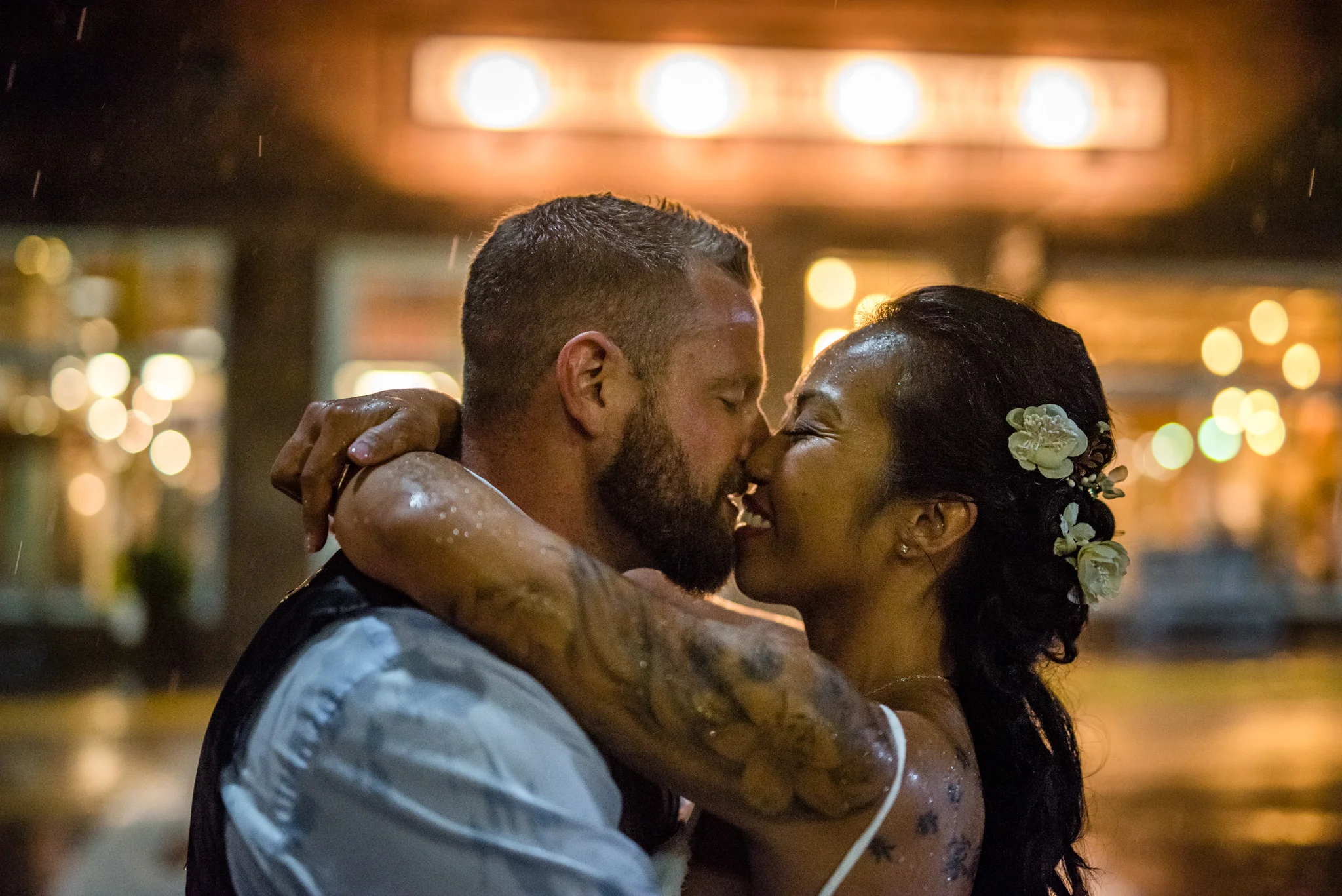 It was fun to get to know this incredible couple even for just a short time. To give you a sense of what they are like, Josh and Frances were quick to agree to my idea of running out into the night to capture candid portraits in the pouring rain! I guess that isn’t much for two military vets.