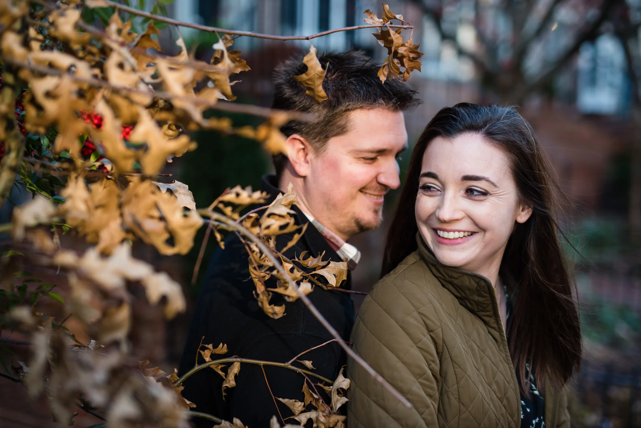 Winter in Washington DC can mean almost anything. One day it’s freezing cold, the next it’s mid 50’s. Fortunately, Joey and Caroline’s engagement session landed on one of the most beautiful winter days we’ve had all year. The sun cast warm golden light and we were able to enjoy a variety of areas between Dupont Circle and Meridian Hill Park.