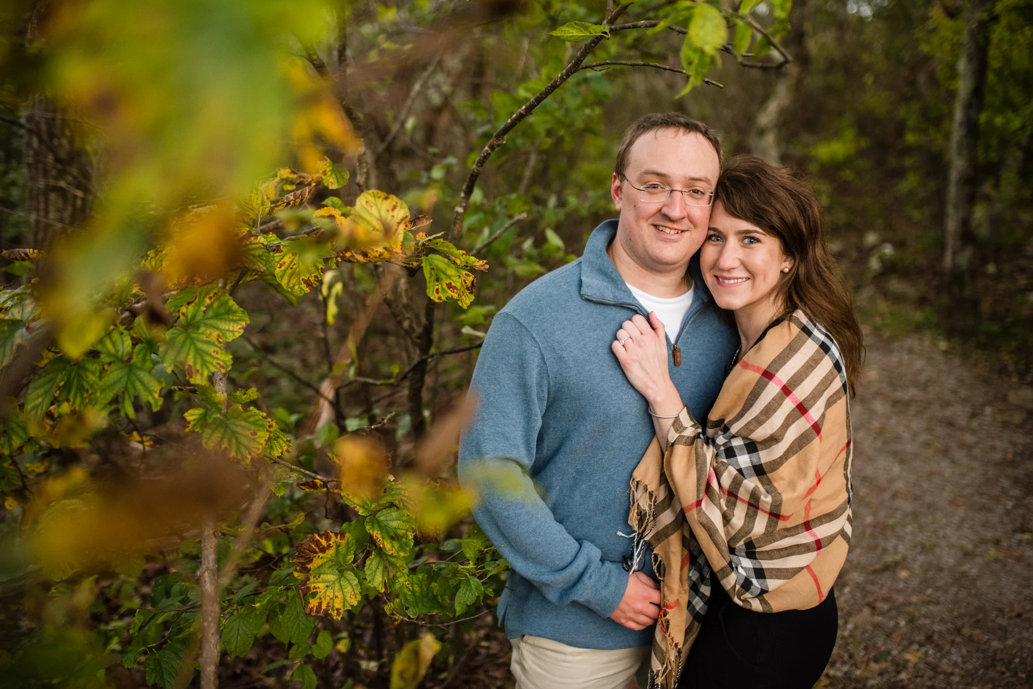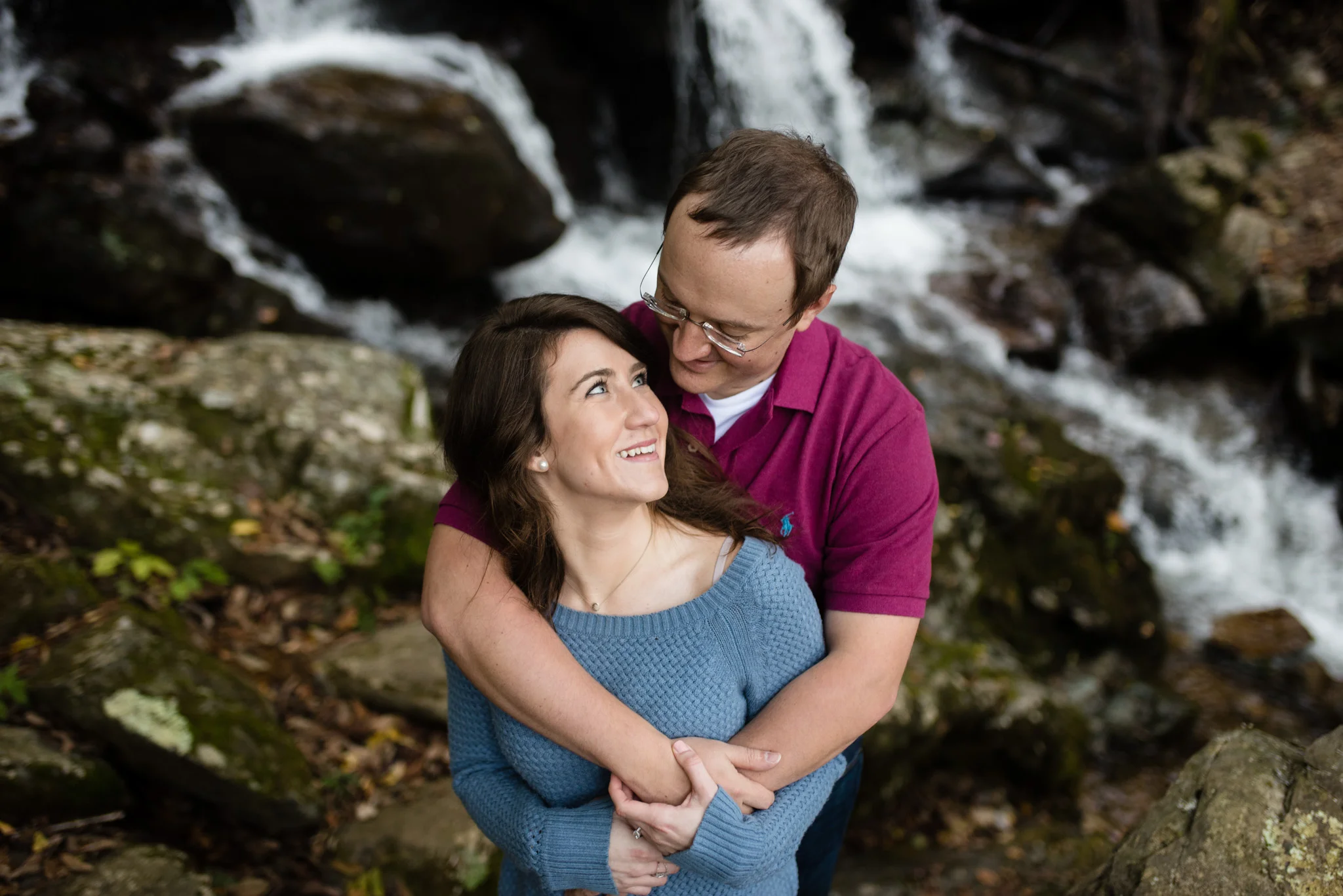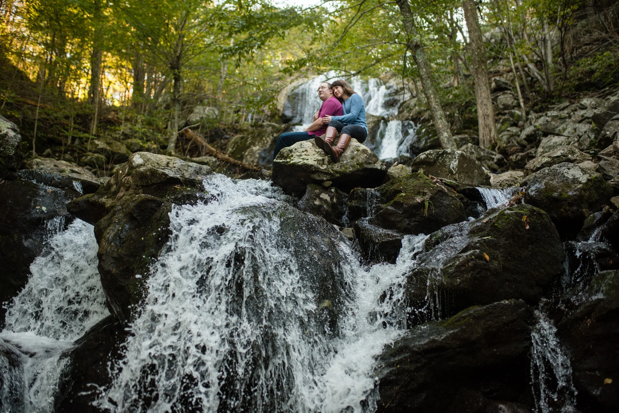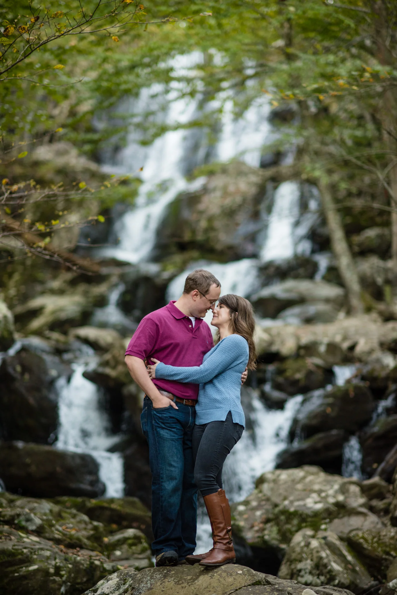 The day of their session was one of the first truly fall days with crisp temperatures and beautiful golden light. These two were up for anything, so I took them on two different hikes to get great images! We started with a 1.5 mile round trip to a waterfall, followed by a one mile round trip hike to a expansive vista. Throughout the hike Aaron and I had to try to keep up with Maureen; she moves on the trail!