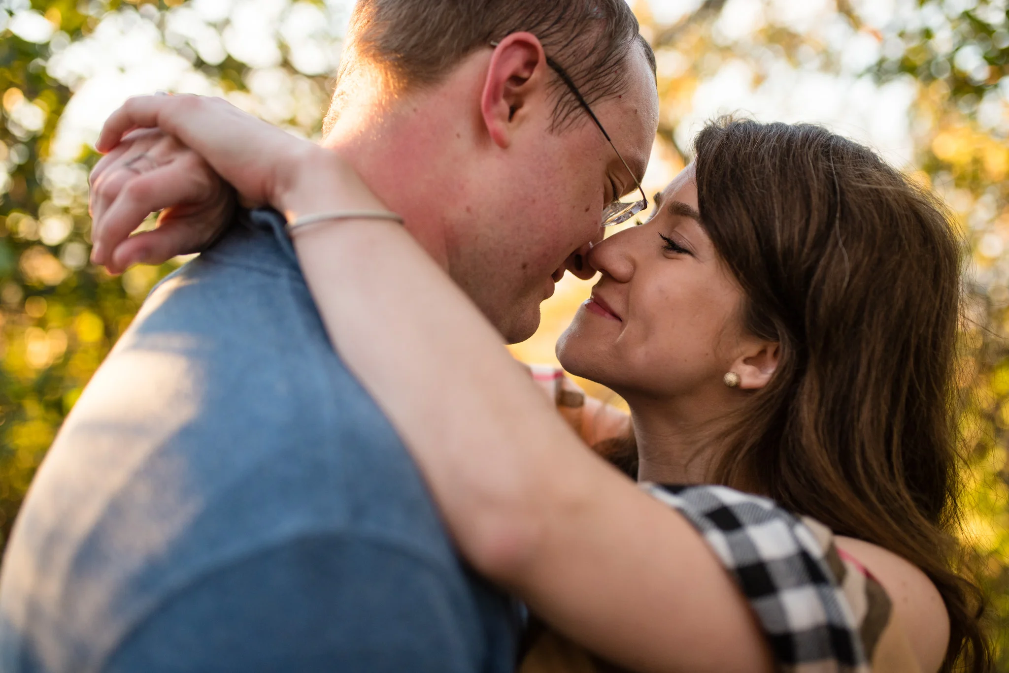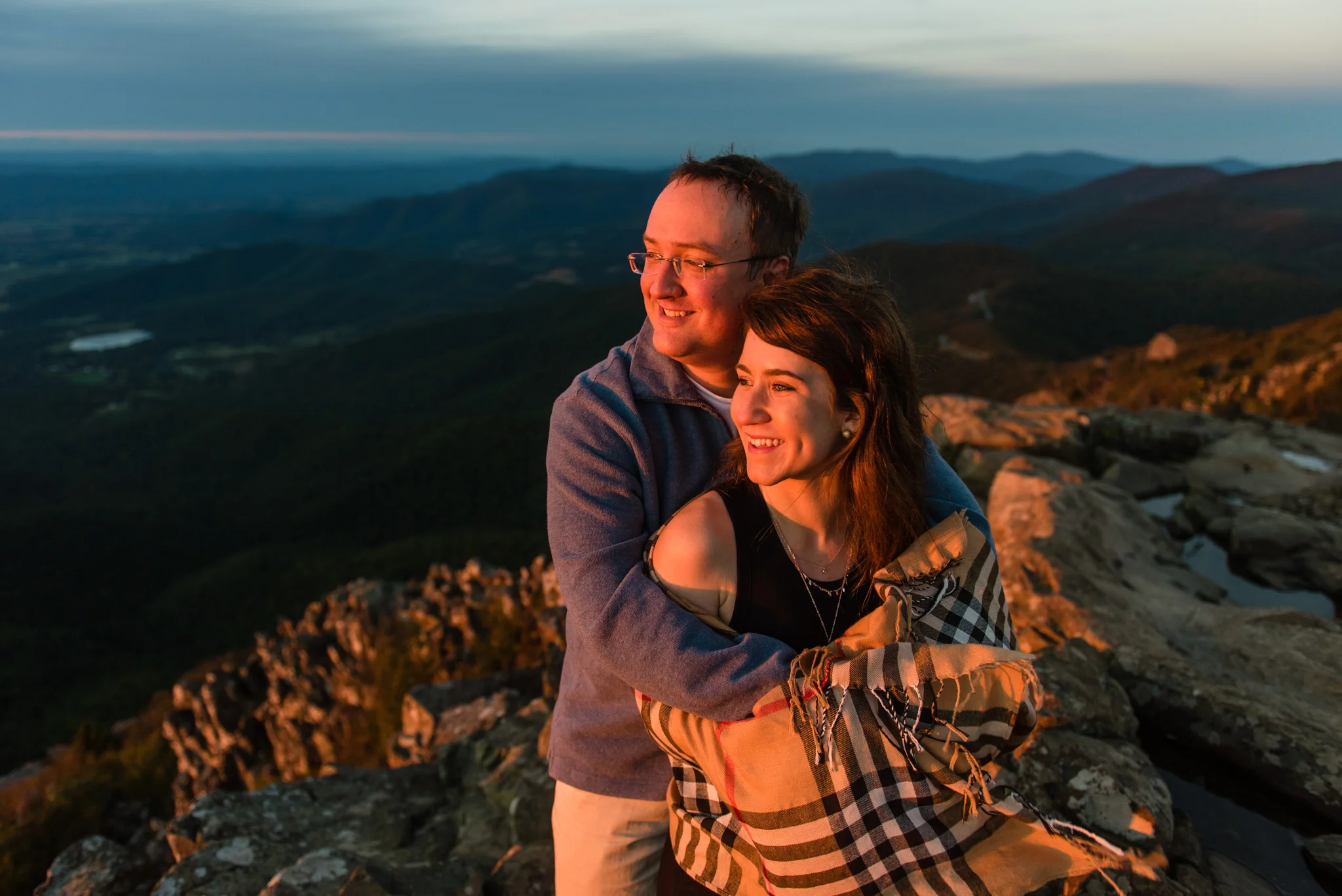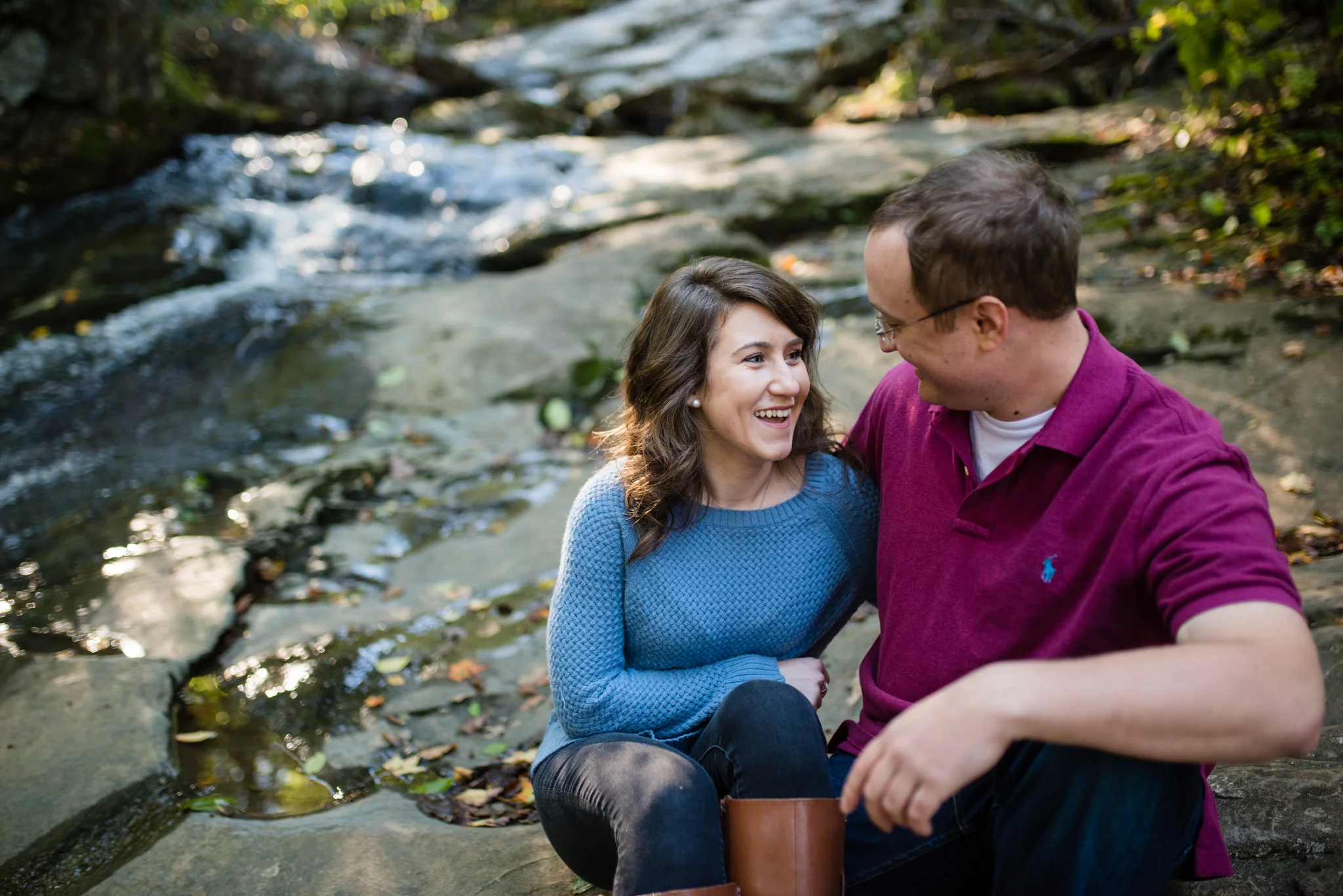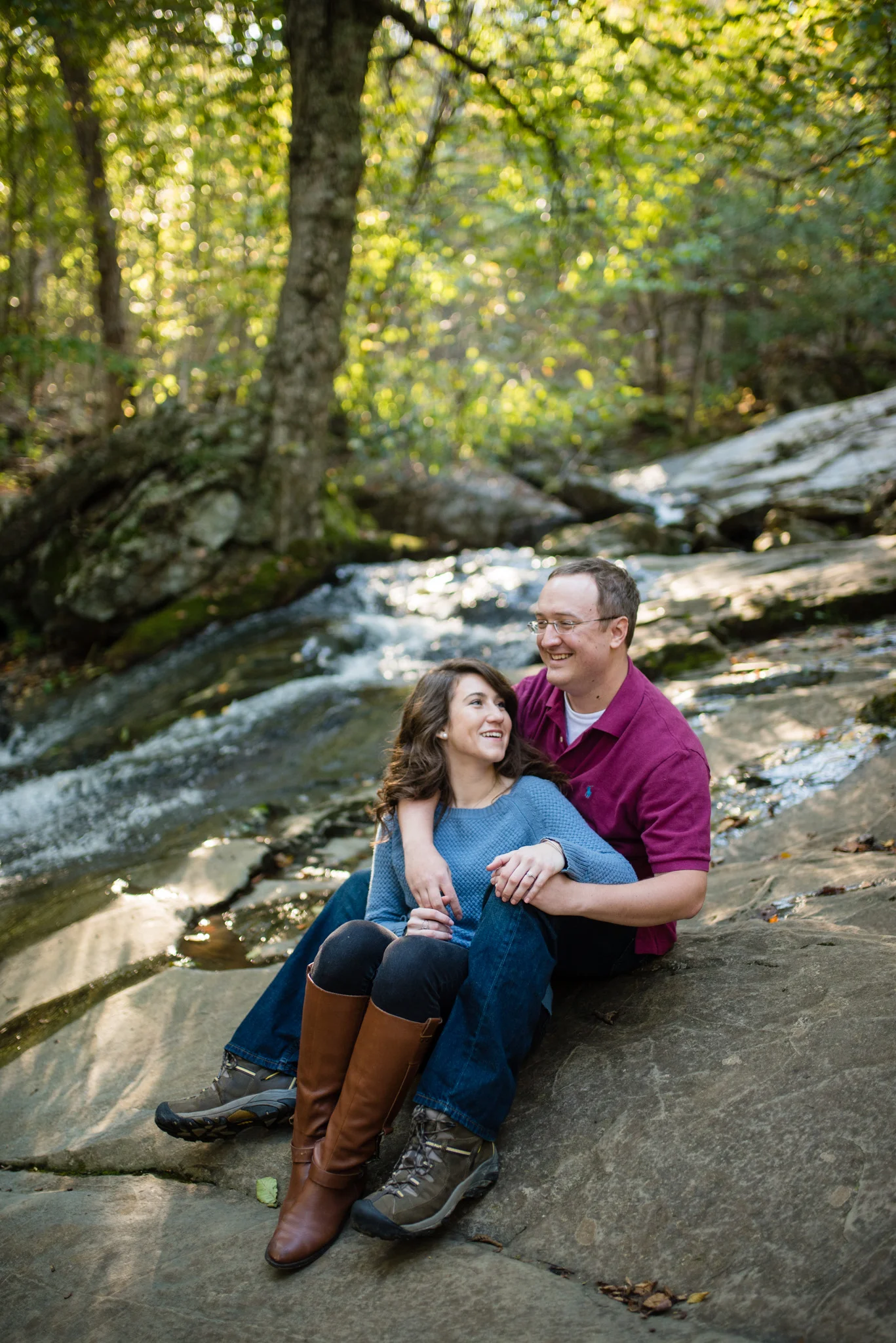 The day of their session was one of the first truly fall days with crisp temperatures and beautiful golden light. These two were up for anything, so I took them on two different hikes to get great images! We started with a 1.5 mile round trip to a waterfall, followed by a one mile round trip hike to a expansive vista. Throughout the hike Aaron and I had to try to keep up with Maureen; she moves on the trail!