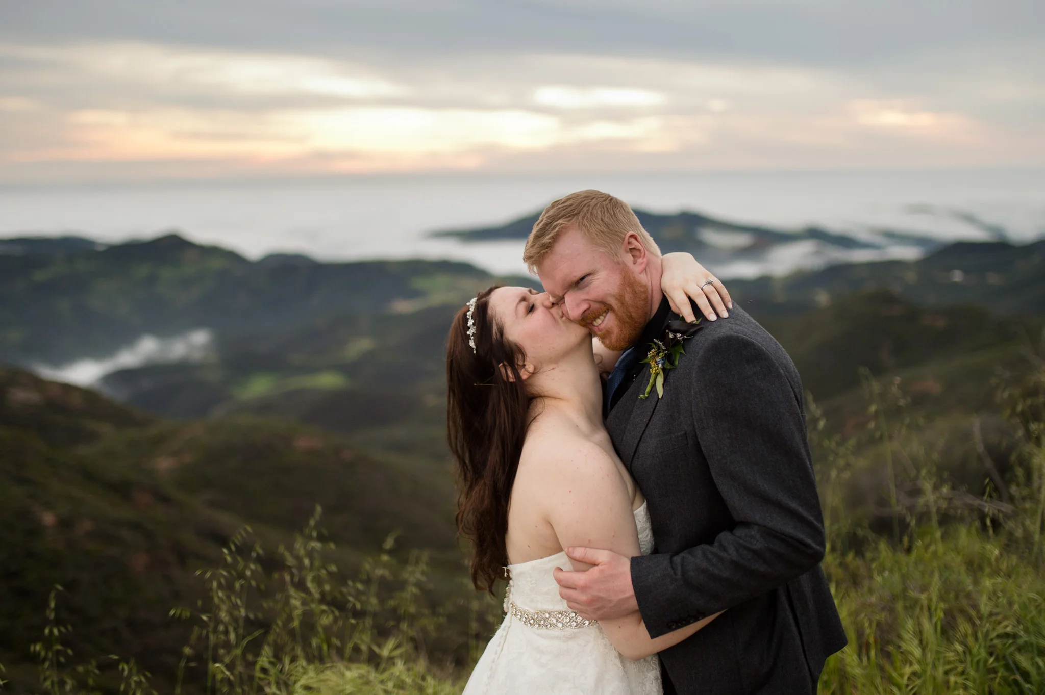 The day after the wedding we made our way to the Santa Monica mountains for a chance to capture some unique portraits. Rebekah was a trooper hiking in her wedding dress! We made it up high enough to see a grand view of the valley and the clouds lying low over the ocean.