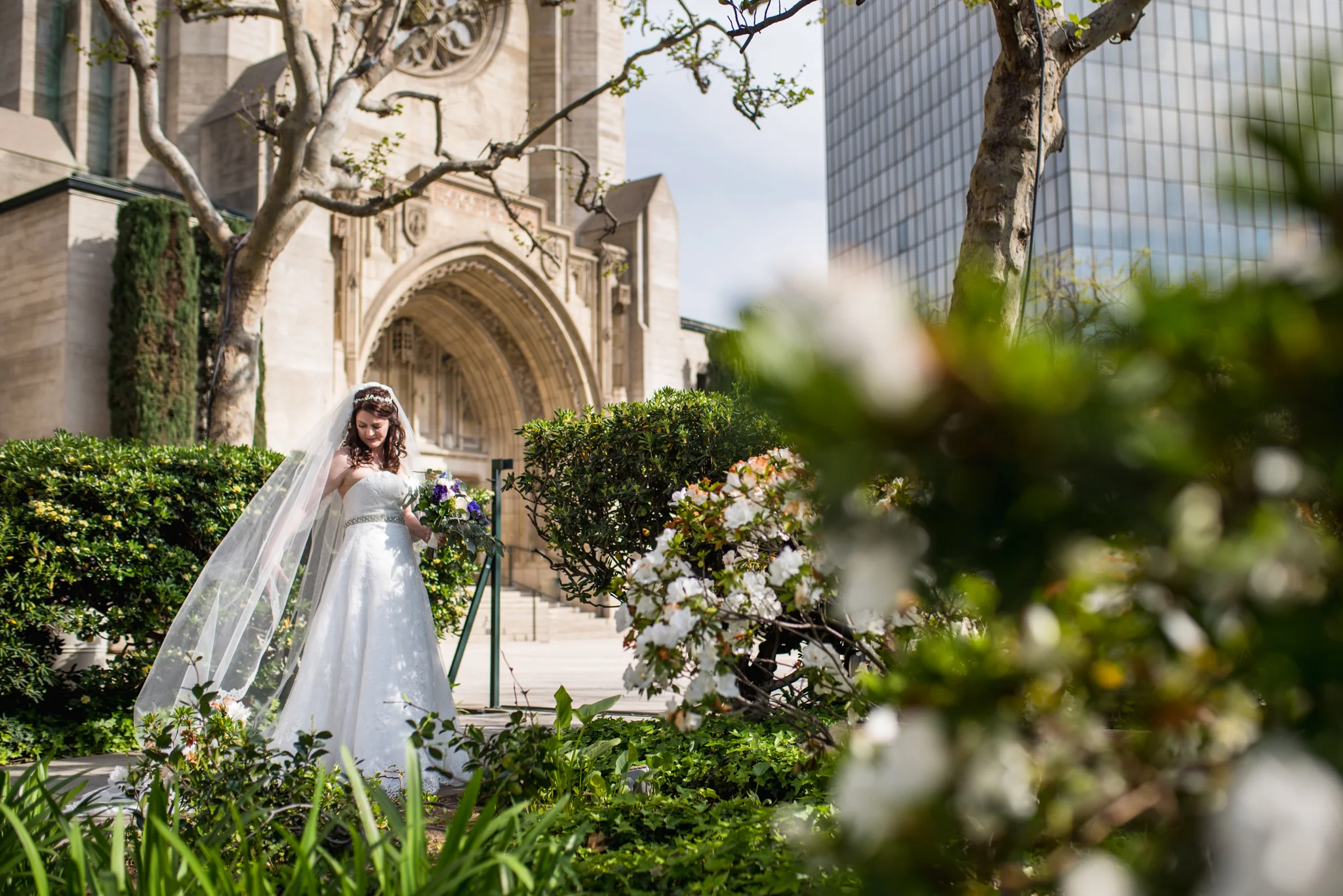 Their wedding was held at the First Congregational Church of Los Angeles, a huge, beautiful Gothic cathedral just west of downtown Los Angeles California. One feature of California weddings that I love is that you’ve got an excellent chance for a warm sunny day! We had 70 degrees and blue skies in March! A bit different from the DC area this time of year.