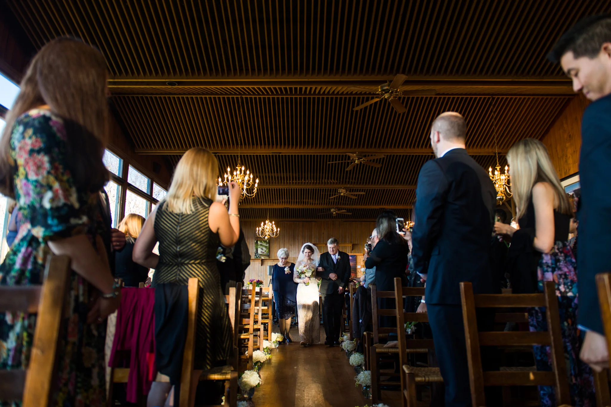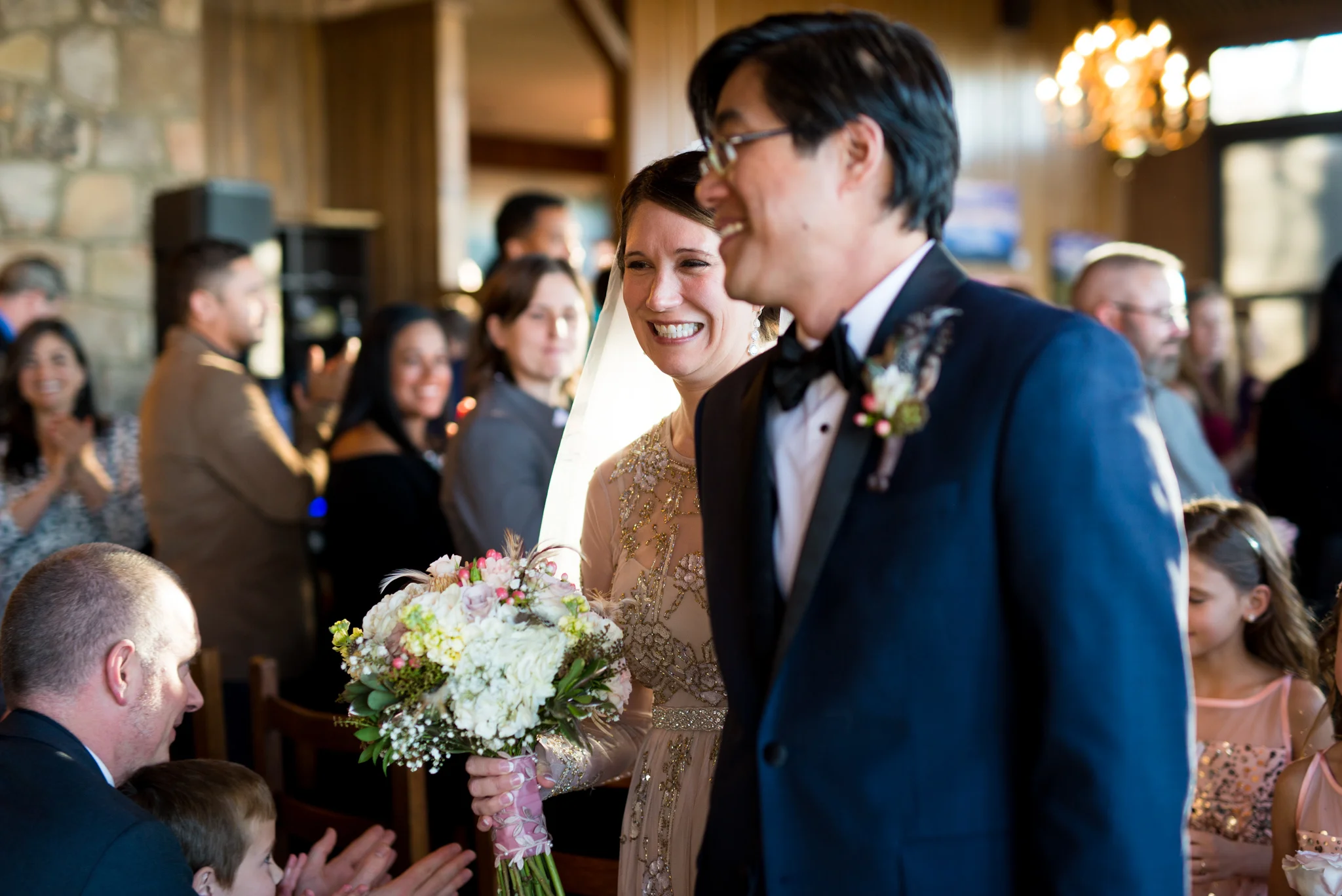 Chris and Gina’s wedding day was the last wedding of the season in the Shenandoah National Park at Skyland Resort. Theirs was a beautiful wedding in the lodge dining room, a rustic wood room surrounded with windows and overlooking the valley.