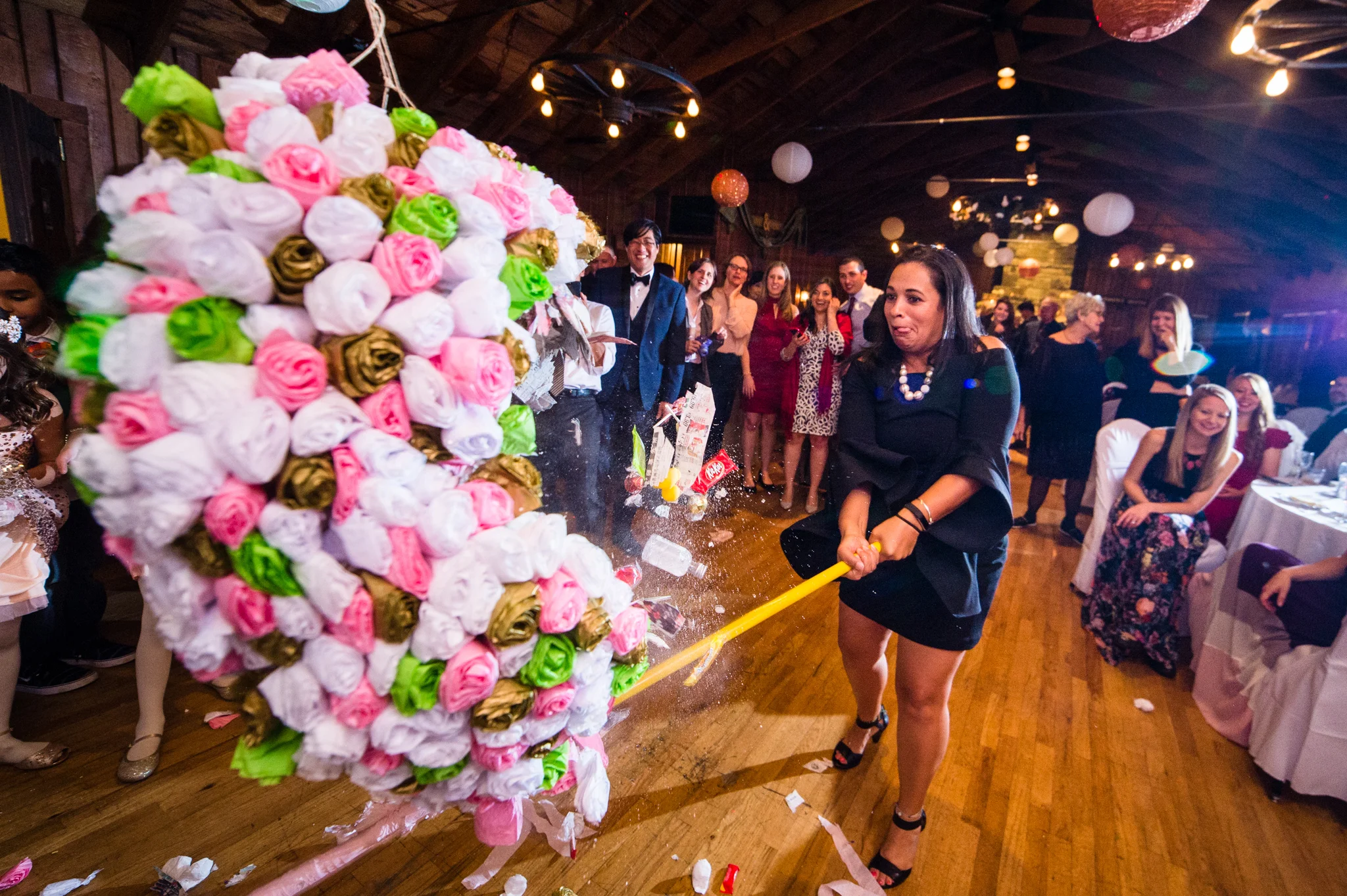 One of the most unique parts of this wedding were the pinatas! Yes there was one pinata for the kids and one for the adults! I’ve never seen people have so much fun hitting something! It was a great wrap-up to an already fun wedding reception.