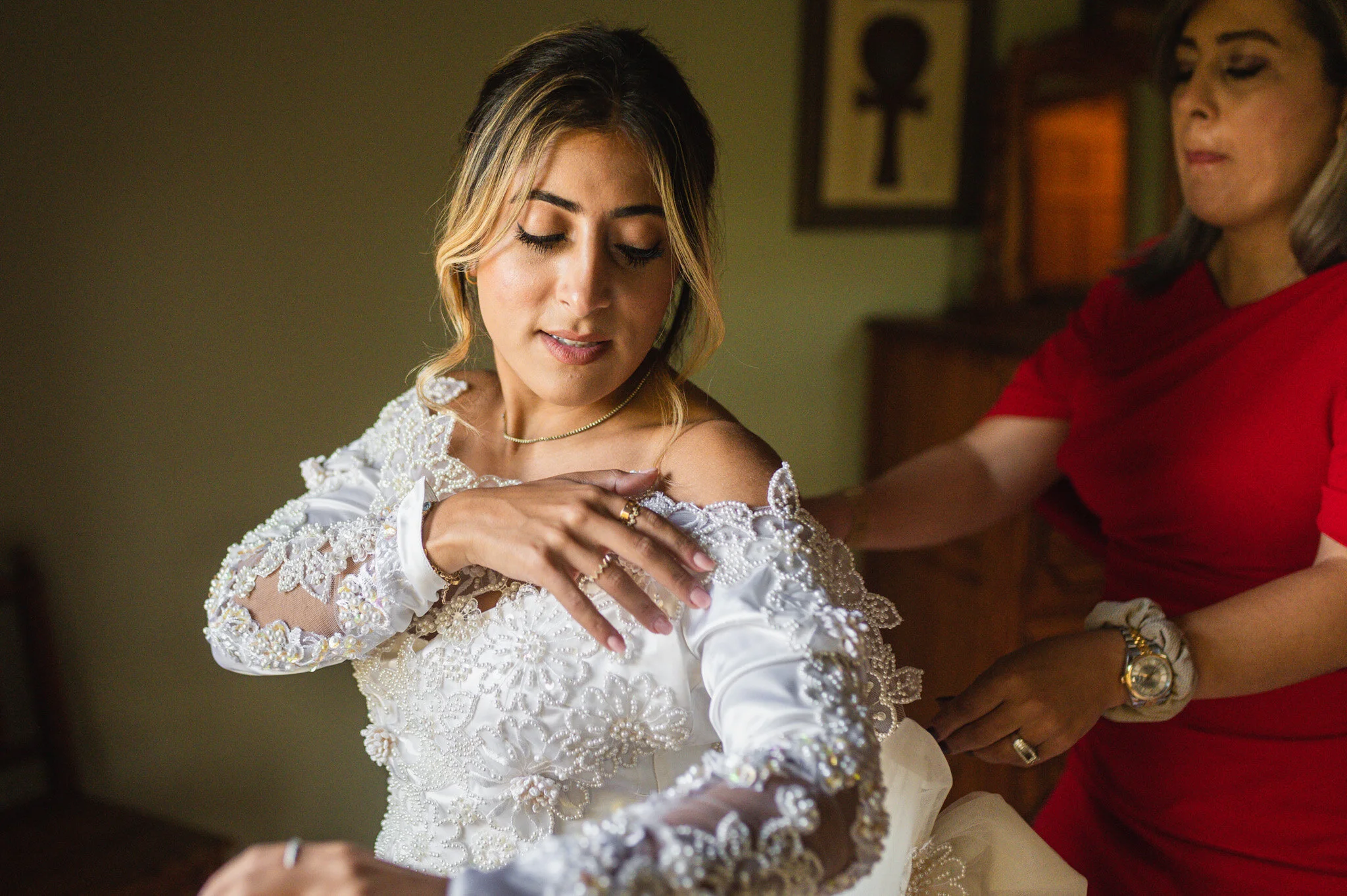 With both families all getting ready together in the same home, the anticipation and excitement were palpable!! Tara finished putting on her gown and shared that this was her mother’s wedding gown, altered to be a perfect fit for her today. It was the meaningful touches like this throughout the day that made their wedding even more special. This was going to be a small wedding, but no less important and no less meaningful for everyone.