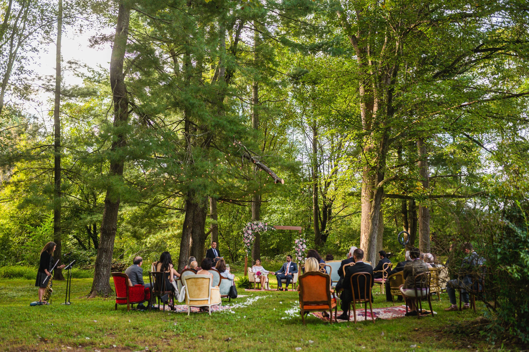 For their ceremony, Nicholas and Tara had prepared a number of beautiful chairs and couches arranged on colorful rugs, all spaced out and artfully arranged under the tree cover. During the ceremony family spoke about the strong bond between Nicholas and Tara and how they were all so excited to see them taking this step into marriage. We finished out the day by exploring around the venue and capturing relaxed candid photos of the two of them.
