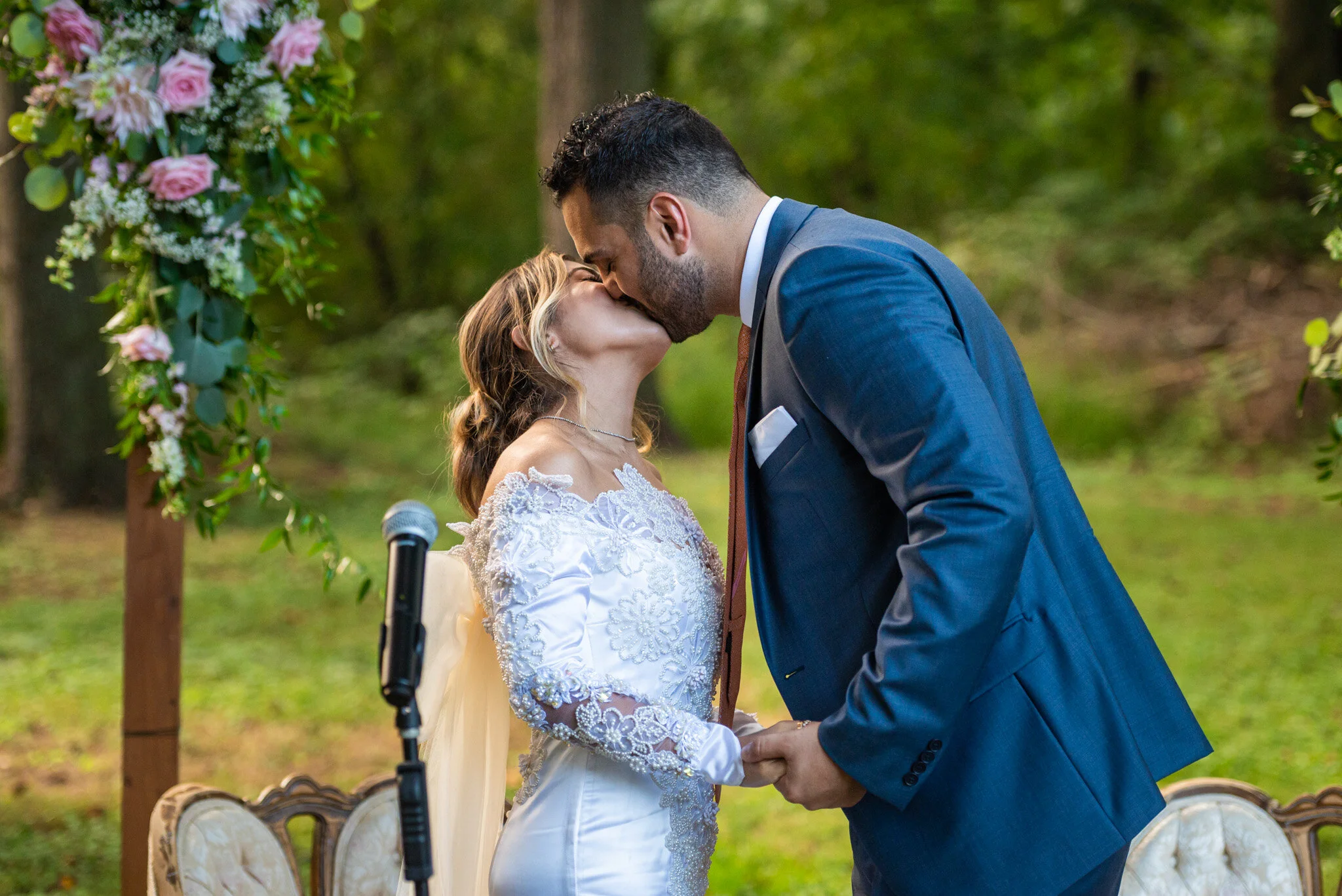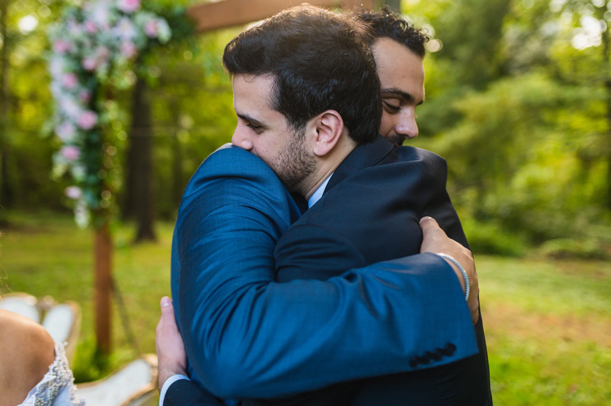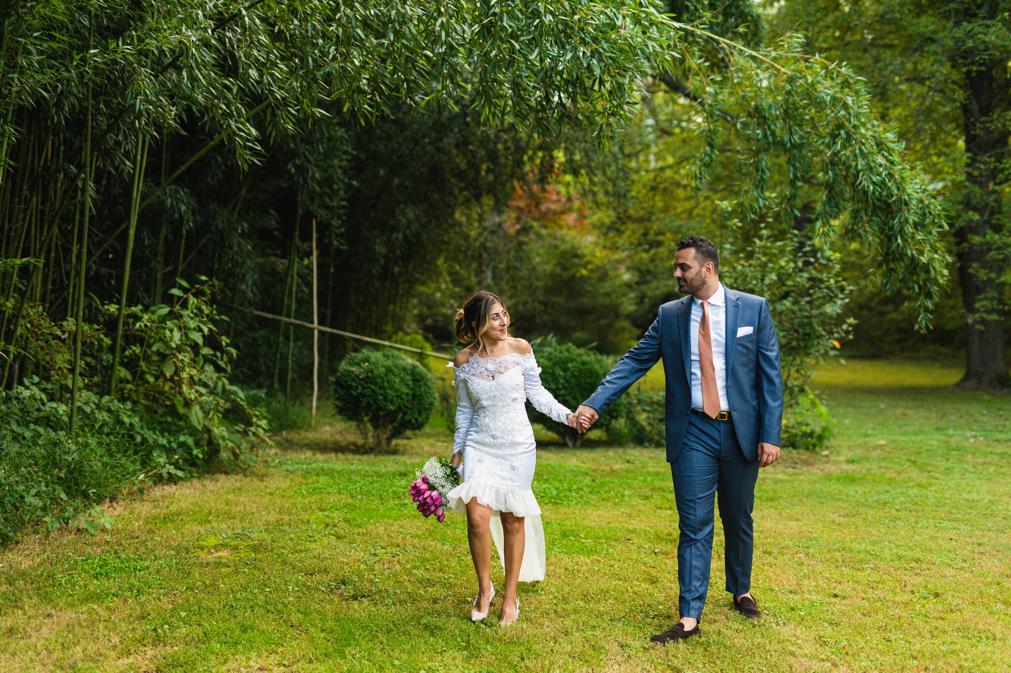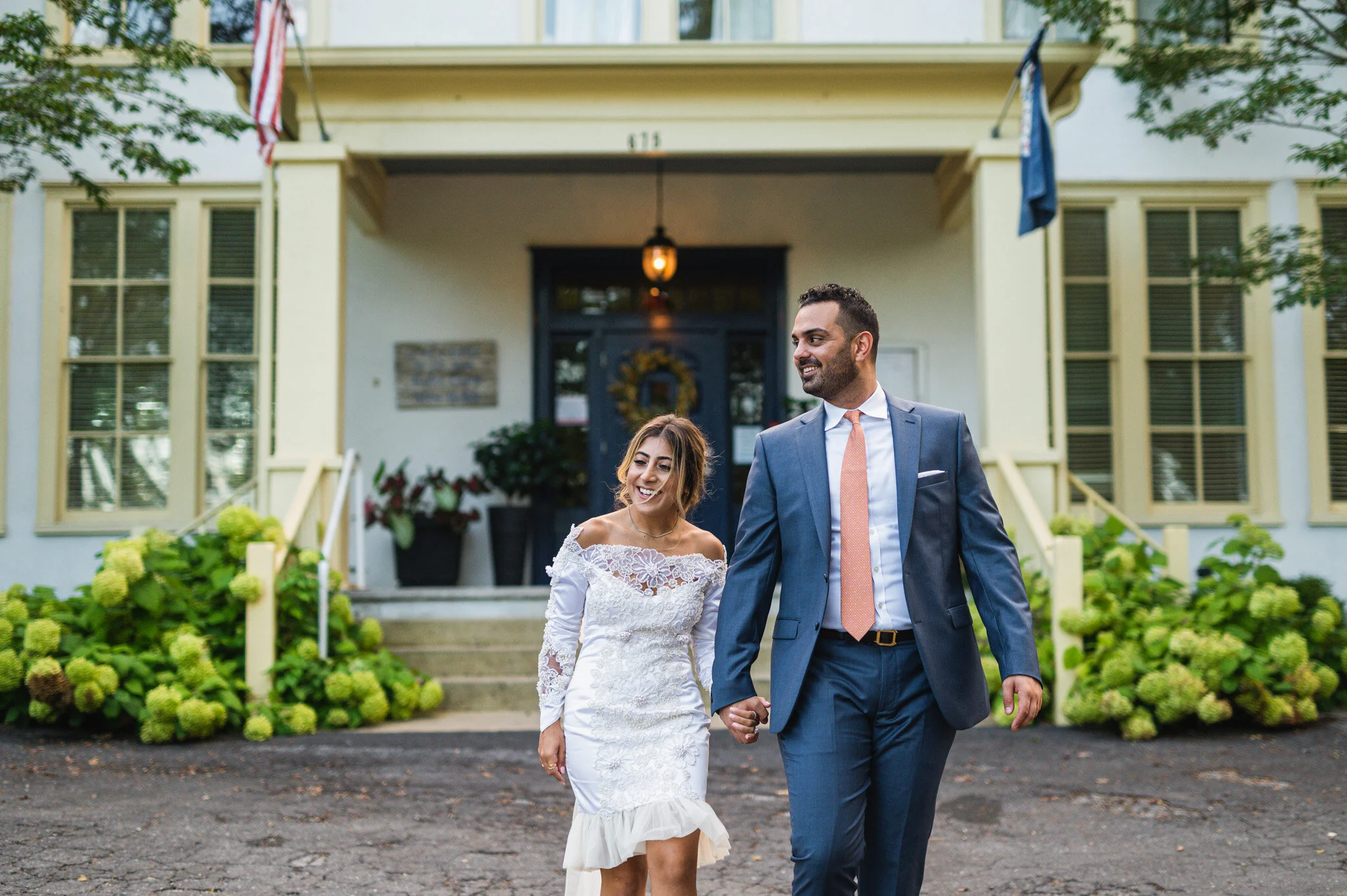 Once everyone was ready we all drove to where the wedding would be held at The Blue Door Kitchen and Inn. This restaurant, bed and breakfast, and event space was one of the most beautiful, quaint places I’ve seen! Complete with a garden, outdoor covered reception space, and an extensive area under the trees for the ceremony, we never lacked for great photo areas.