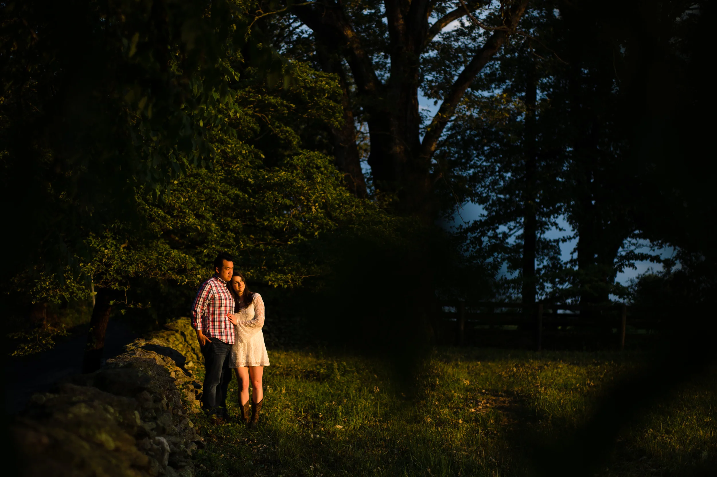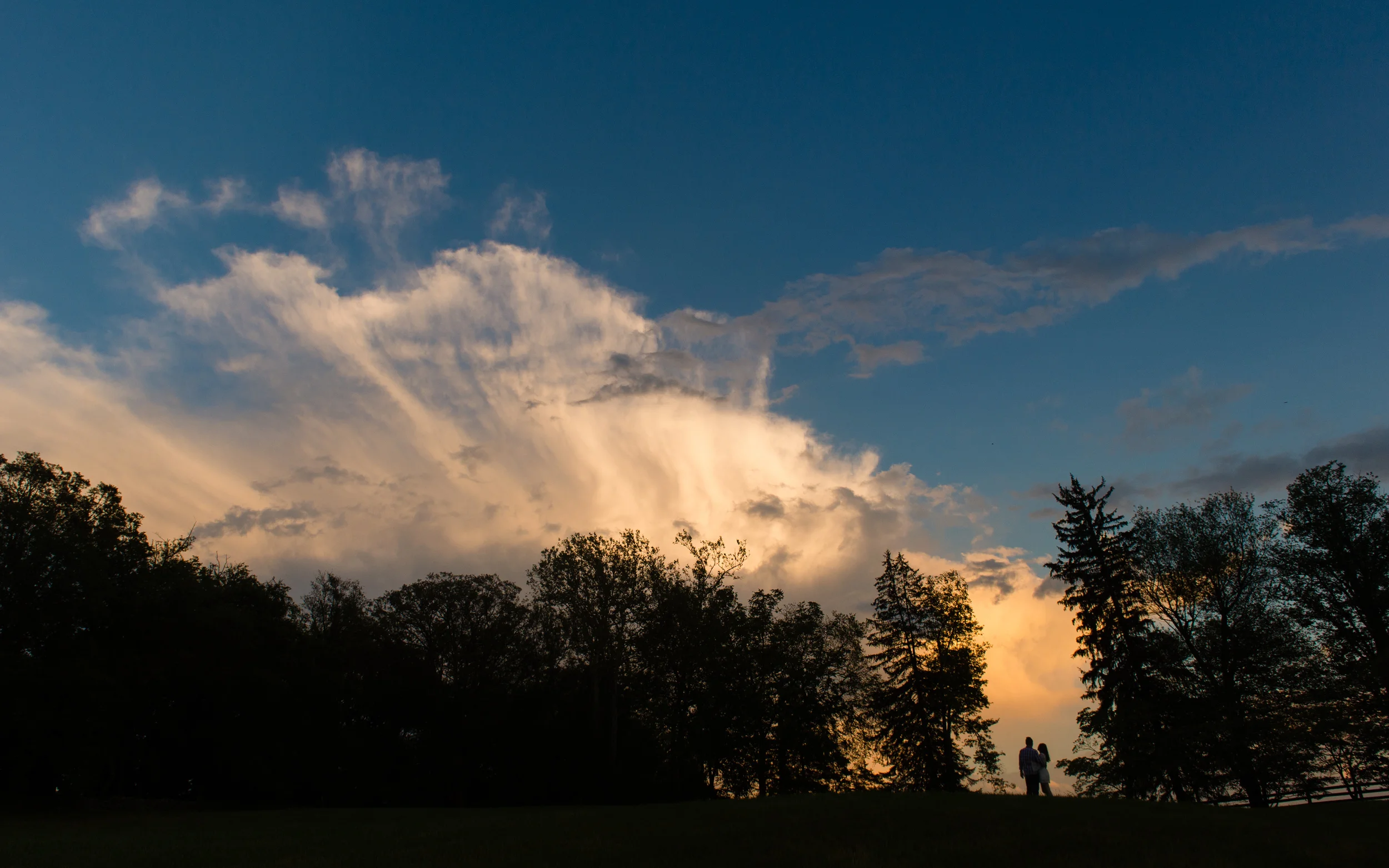As I drove to Middleburg to photograph Victor and Ruth’s engagement I passing many downed limbs and even whole trees. A powerful storm had finished moving through the Middleburg area just before I arrived, leaving a surprising amount of destruction. Not only were trees down all over, but car windshields and streetlamps had been smashed by quarter size hail. I wasn’t sure if we could still have the engagement shoot, but as I pulled in it looked like the storm was finished and in it’s place was a beautiful evening with warm sunlight and some of the most incredible clouds I have ever seen!