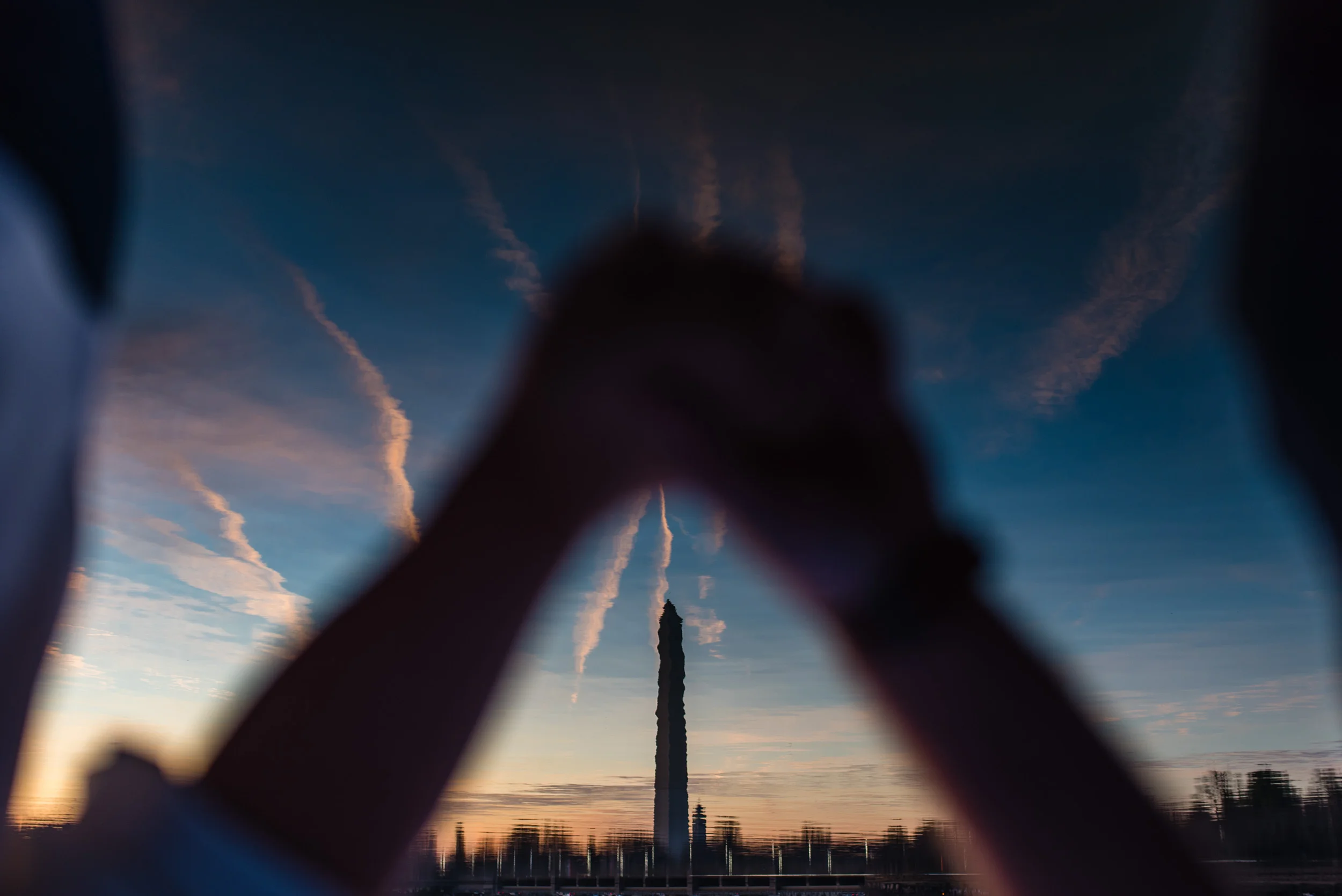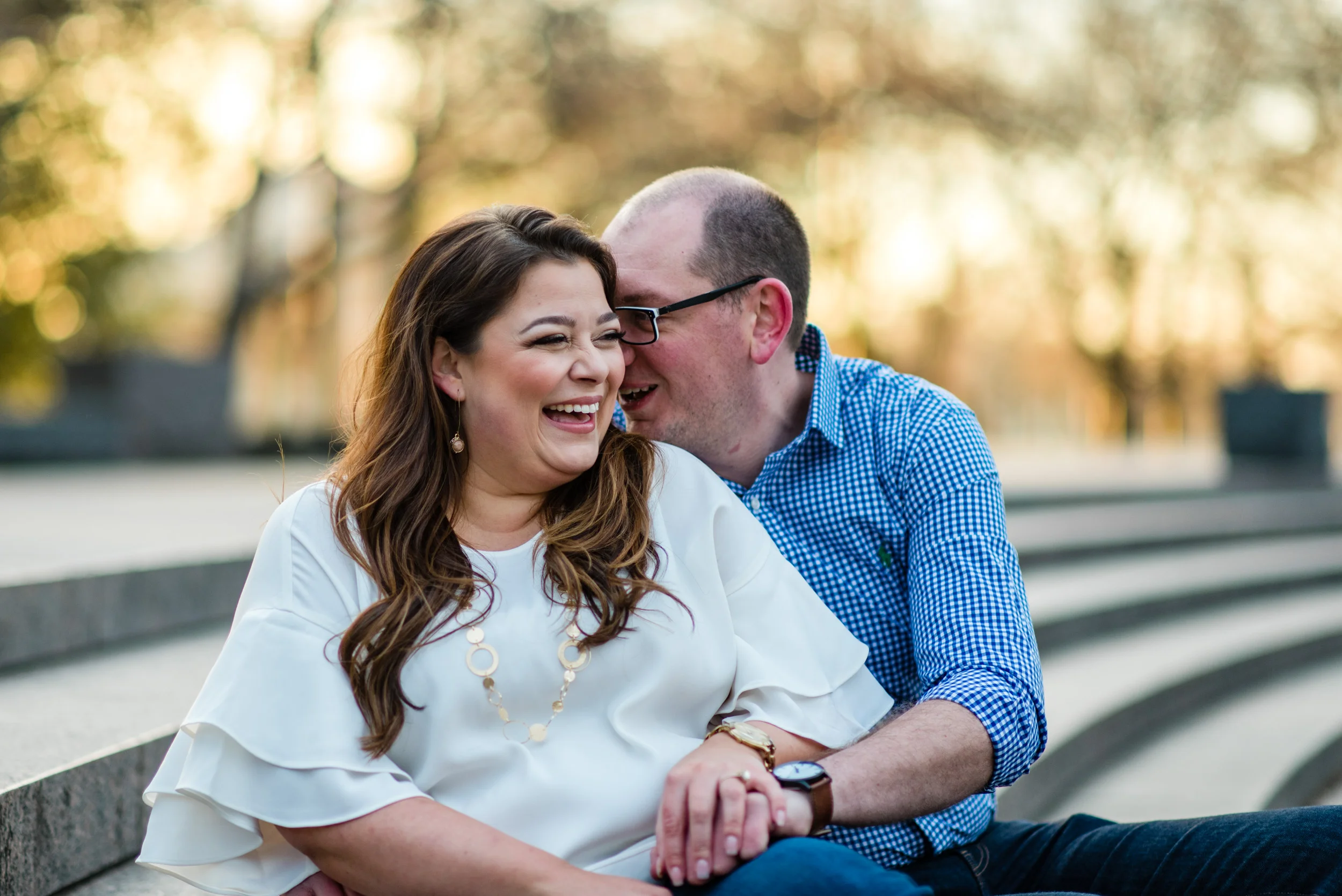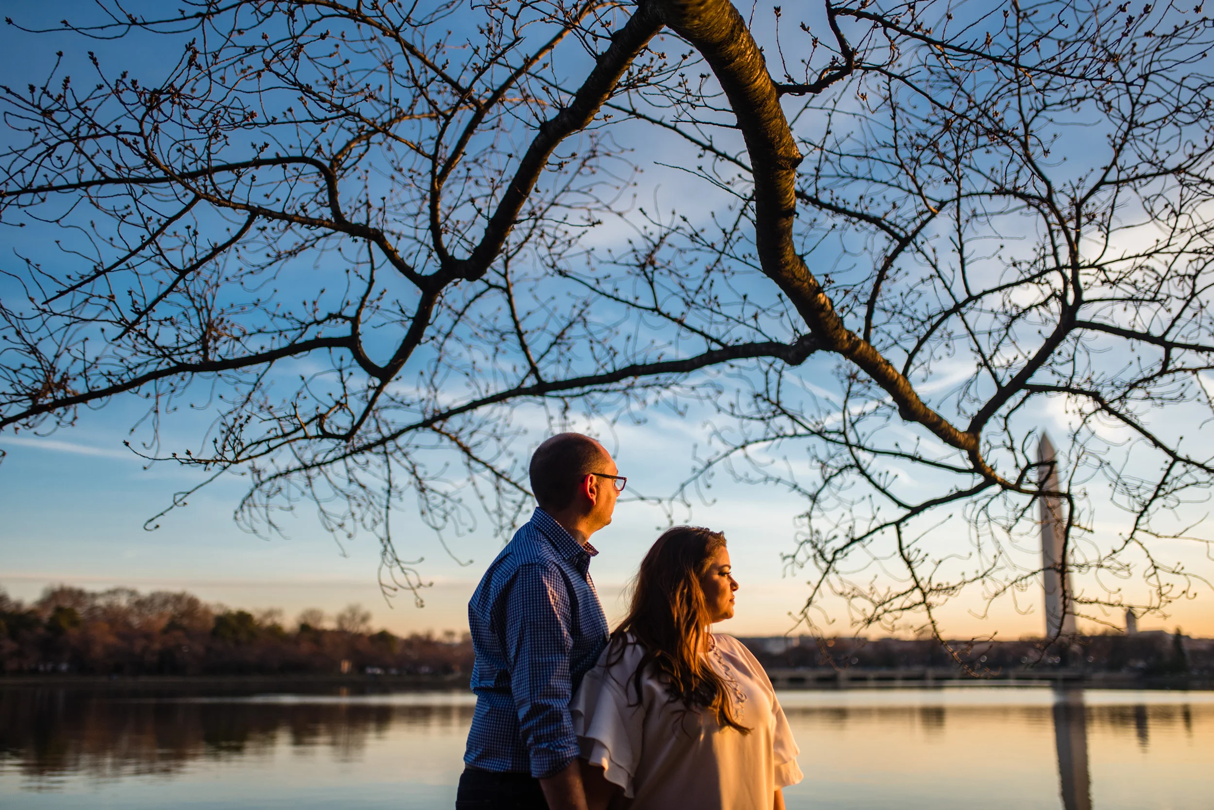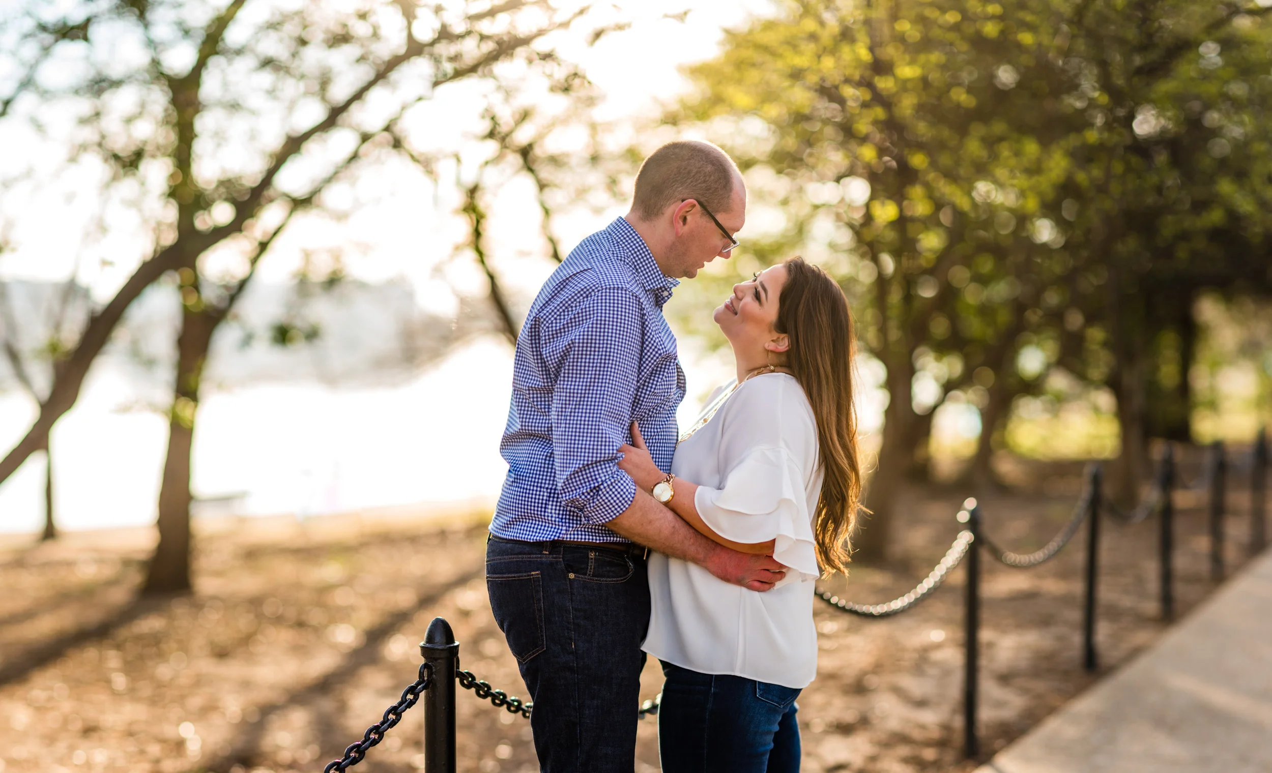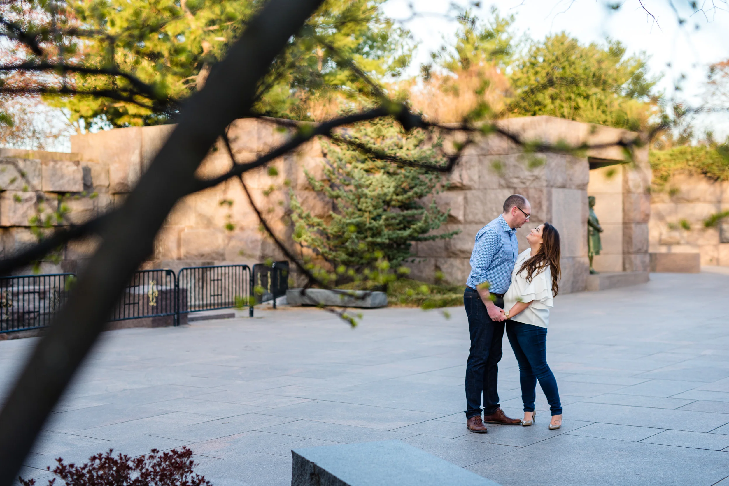 Evan and Megan are long-time DC area residents, so it was an easy choice for them to use the Tidal Basin and the FDR Memorial as their backdrop. It’s an ideal mix of DC cityscape, nature, and architecture. The only things we had to worry about were the startled squirrels jumping up out of the trashcans!