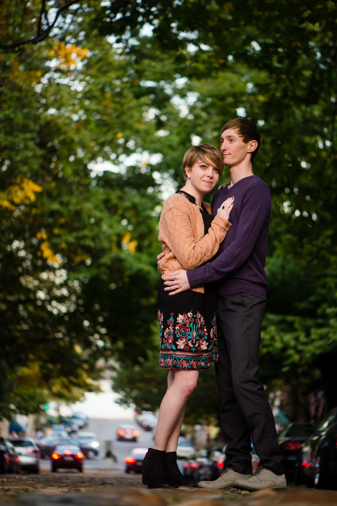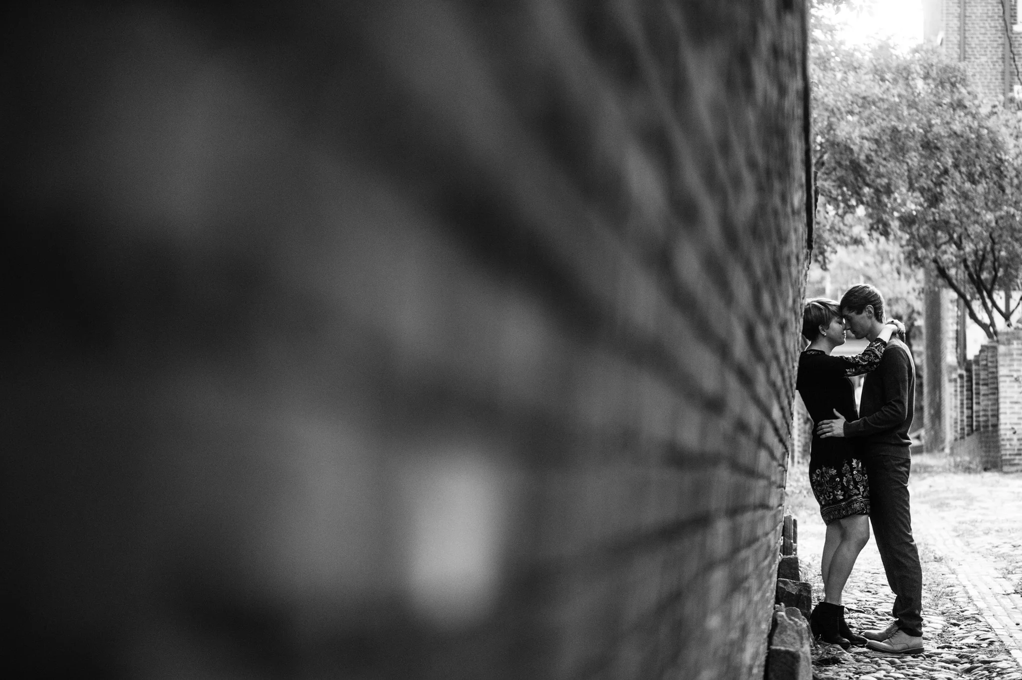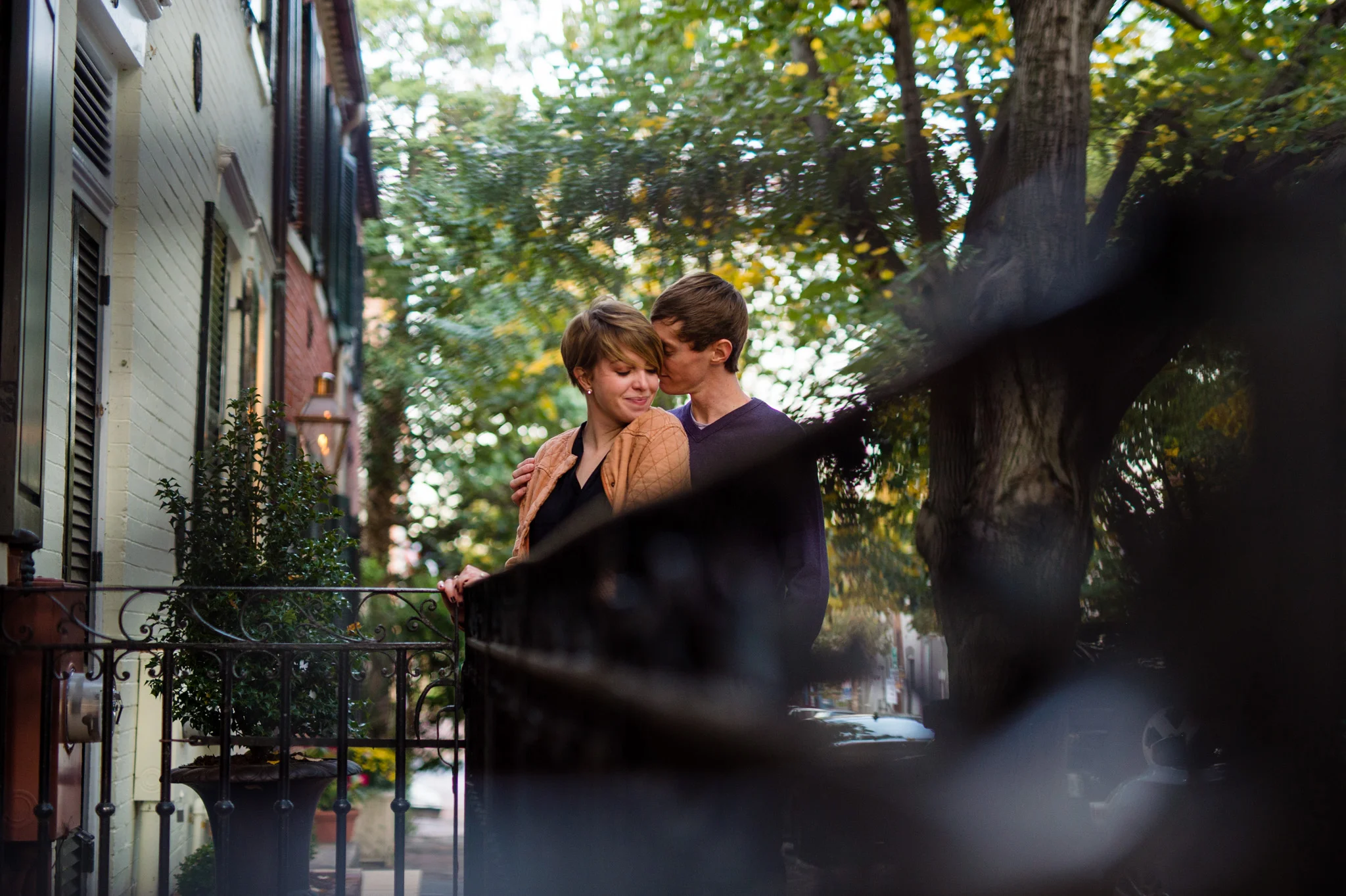 Josh, Nicole, and I had a great time as we took to the streets of Old Town Alexandria for their fall engagement session! They are a sweet couple; it was easy for me to capture their candid and fun personalities together. The way I photographed their engagement session is my favorite method for shooting engagements. We used a mix of familiarity, shooting in Alexandria, and exploration to find new side streets and interesting areas in order to tell their story in a new creative way.