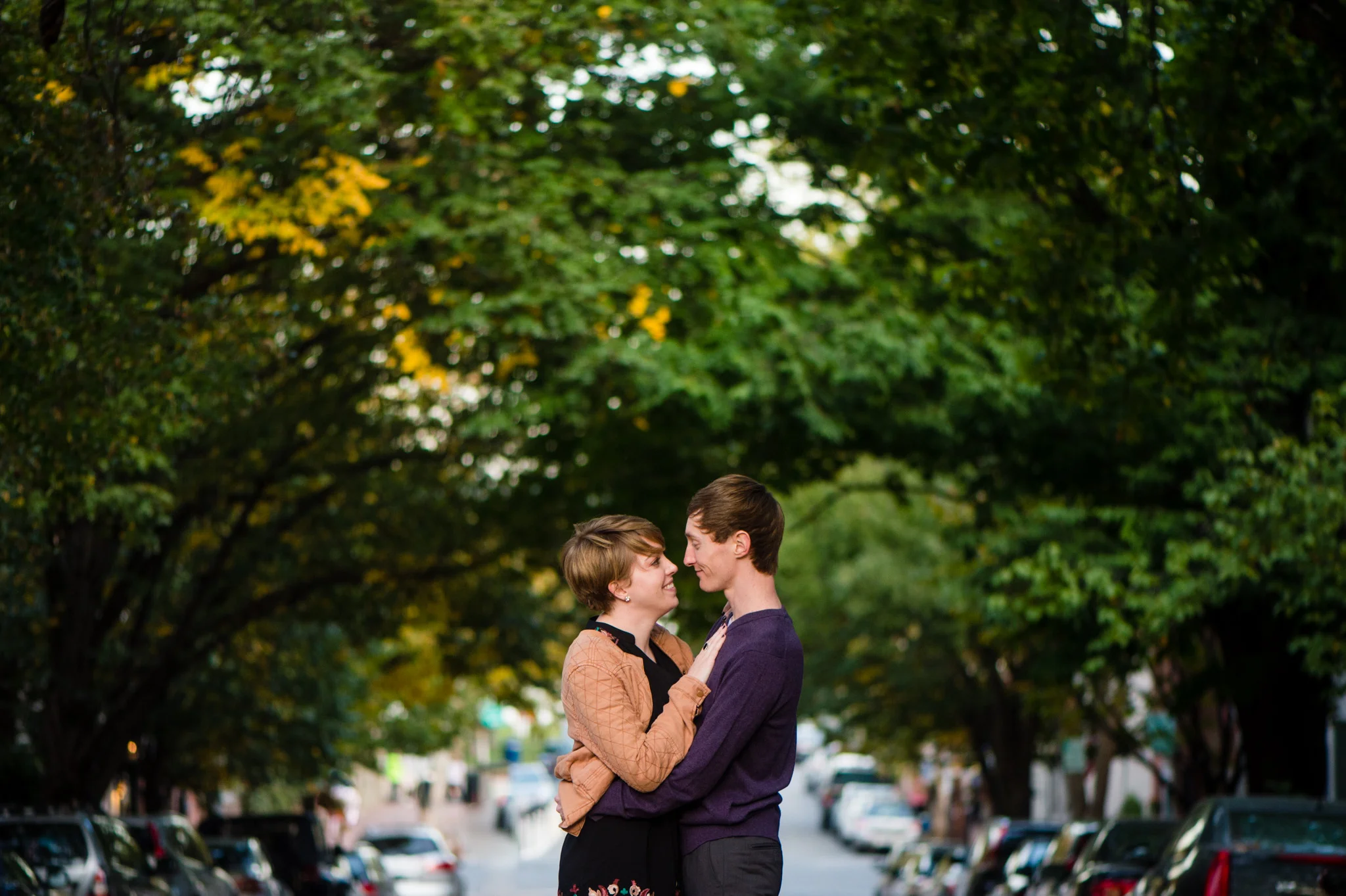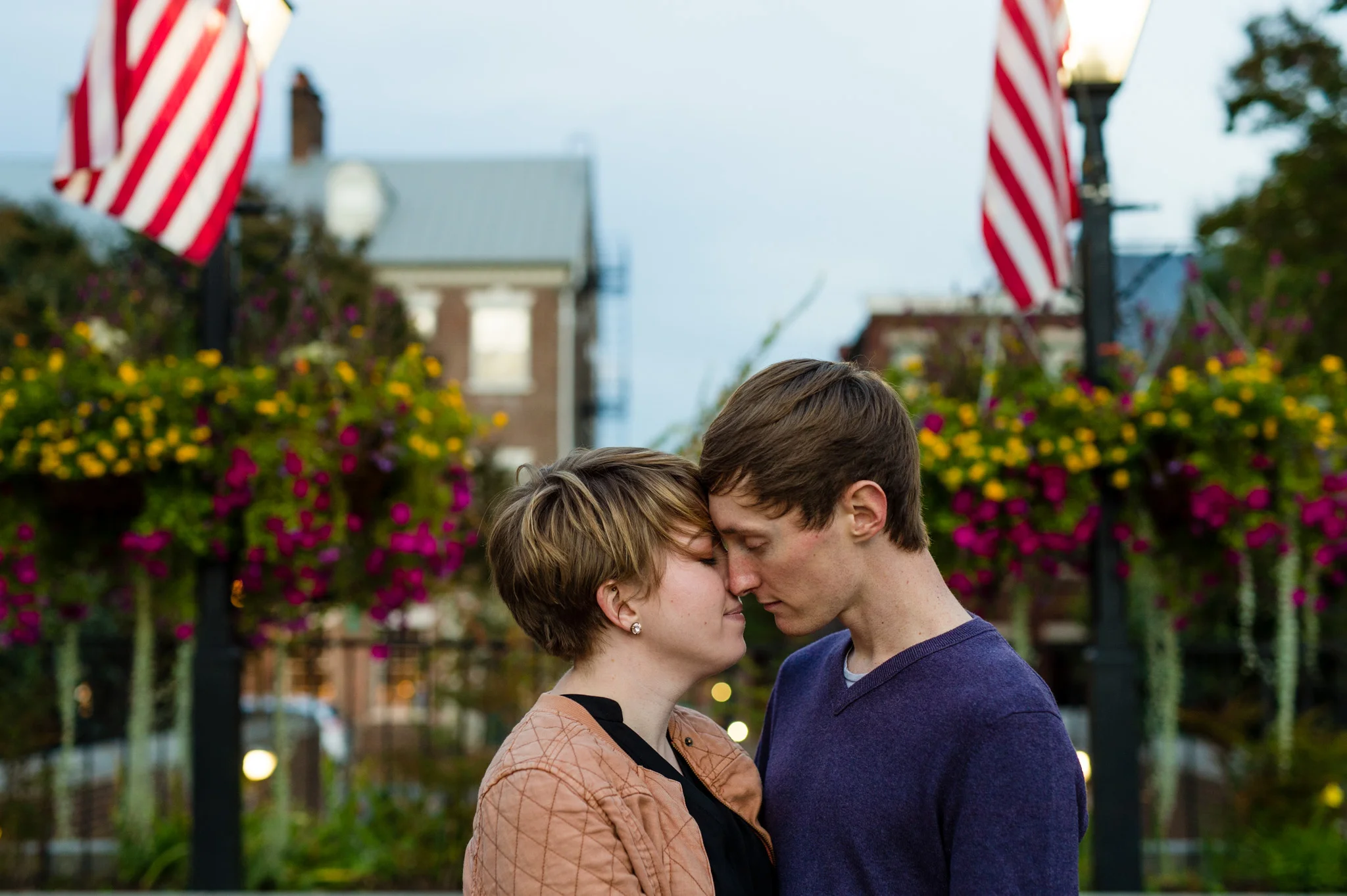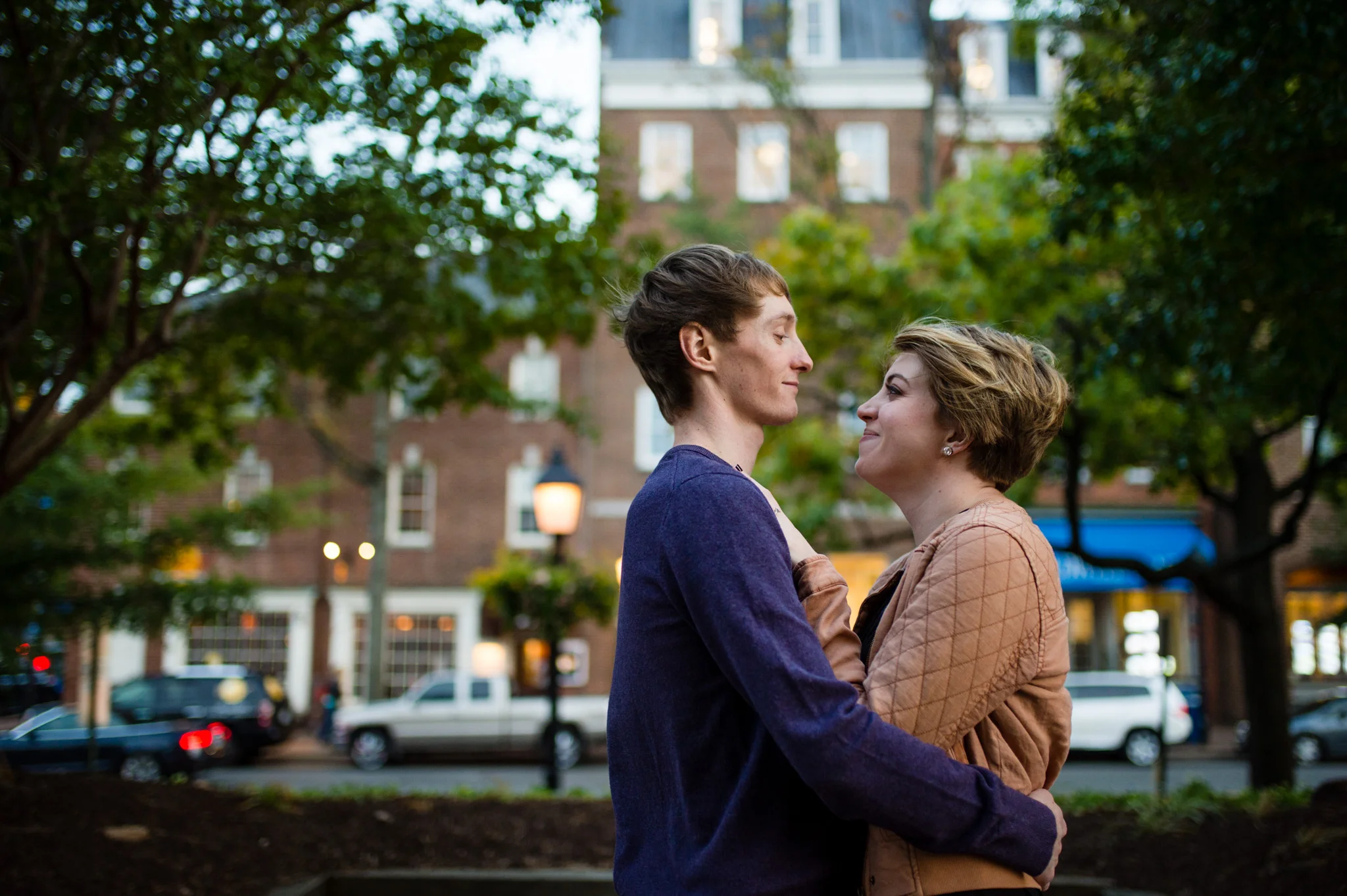 Josh, Nicole, and I had a great time as we took to the streets of Old Town Alexandria for their fall engagement session! They are a sweet couple; it was easy for me to capture their candid and fun personalities together. The way I photographed their engagement session is my favorite method for shooting engagements. We used a mix of familiarity, shooting in Alexandria, and exploration to find new side streets and interesting areas in order to tell their story in a new creative way.