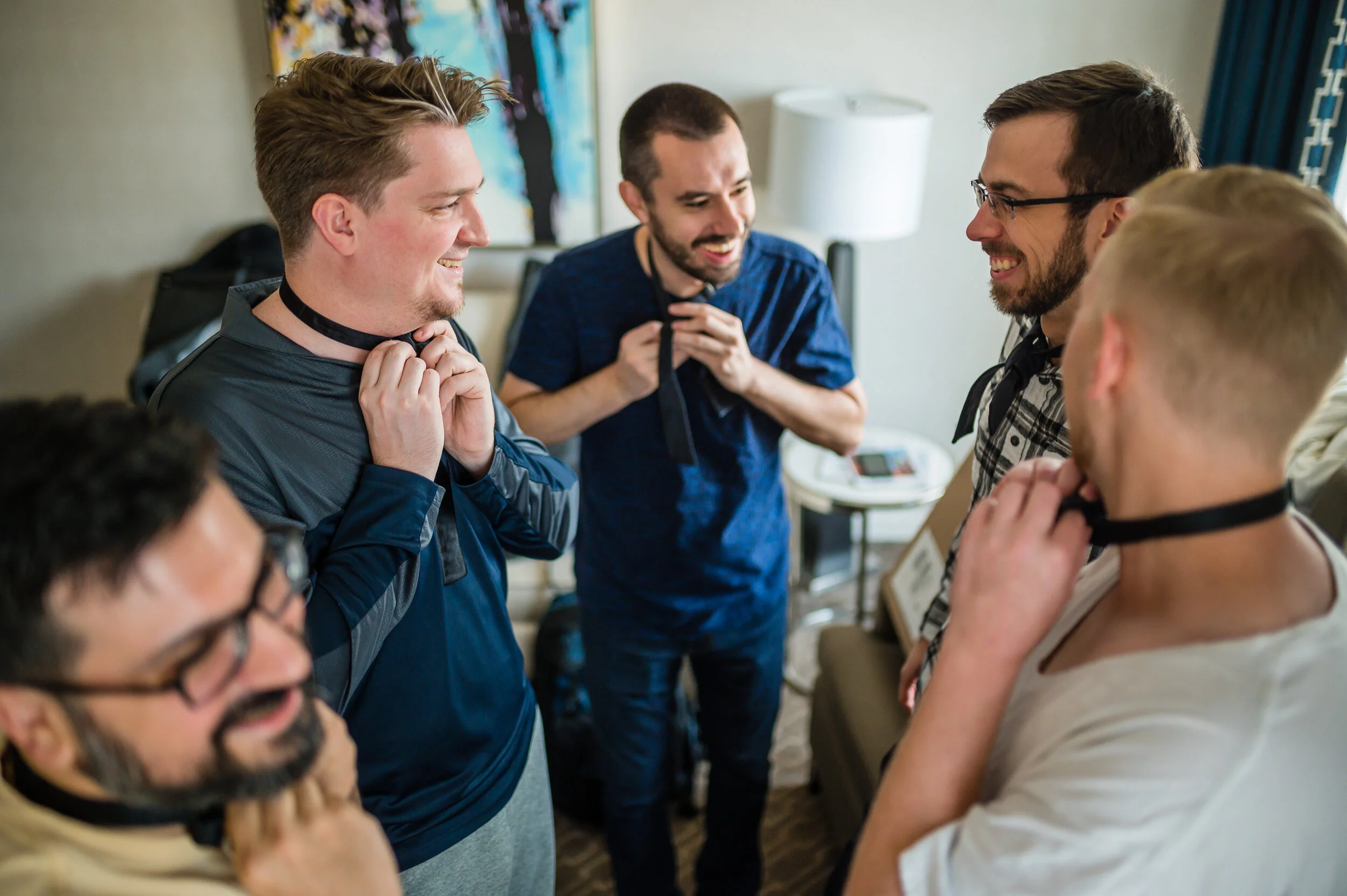 Their day started off at the Hilton in Alexandria where we captured their time getting ready for the wedding. I loved being able to capture fun candid moments between Caroline and her bridal party, as well as Joey and his guys as they faced the challenge of tying real bow ties!