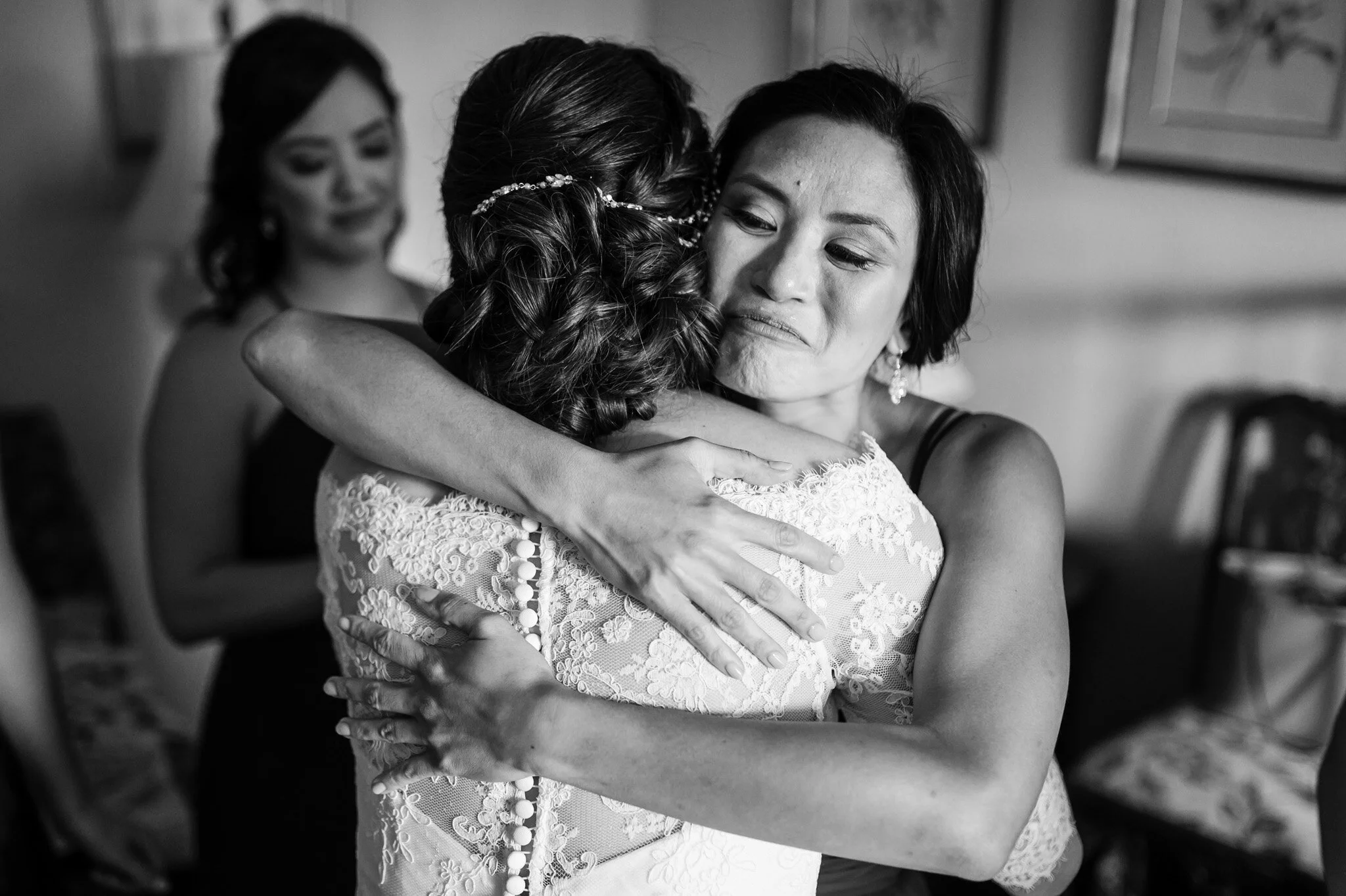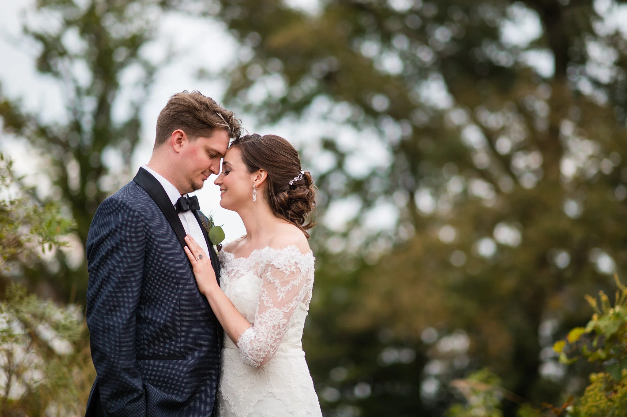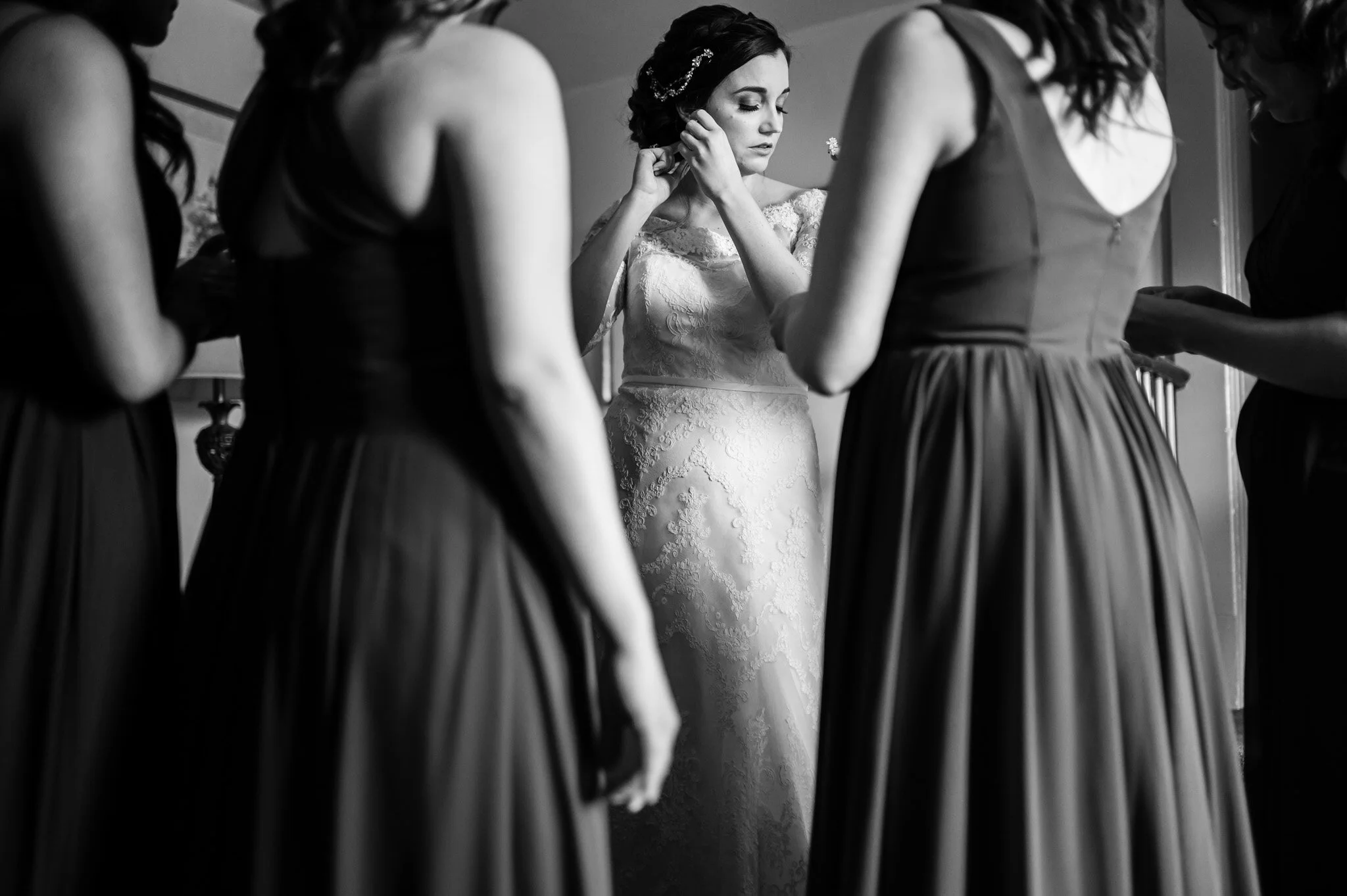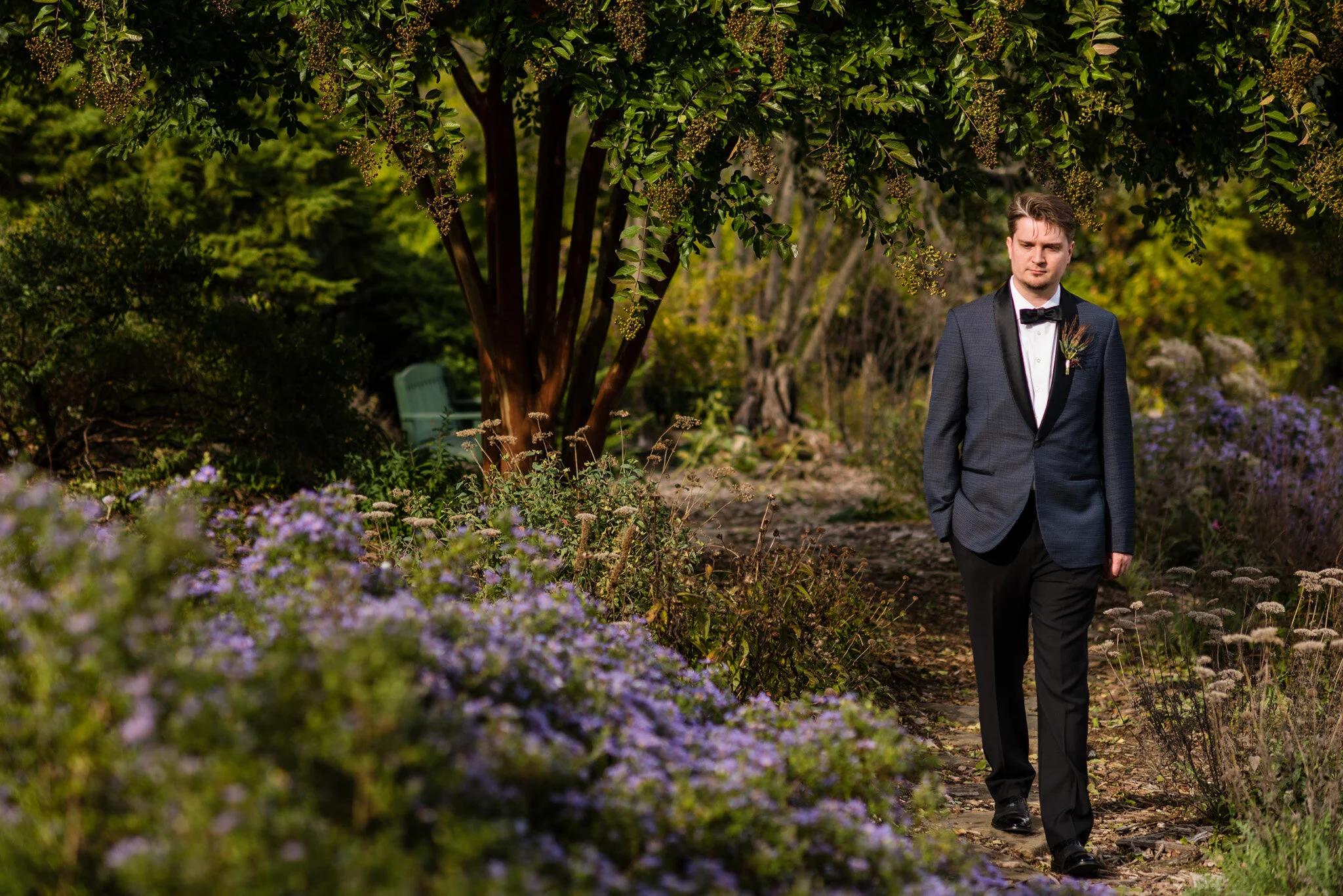 We moved to River Farm midday and caught beautiful moments as Caroline finished getting into her dress and everyone around her saw her fully ready for the first time. River Farm is the home of the American Horticultural Society and a wonderful place in autumn. Joey and Caroline wanted to have their wedding there not just because they are nature lovers, but because they wanted to support the work of the Horticultural Society. Fall was just truly getting started, with only a few trees having turned orange, red, and brown. But those few trees were plenty for us to get incredible fall images!