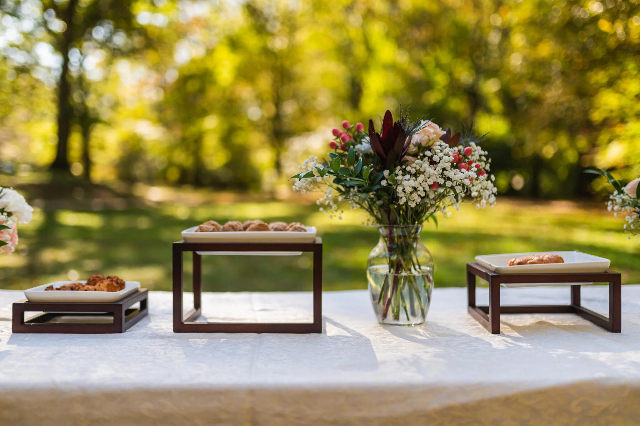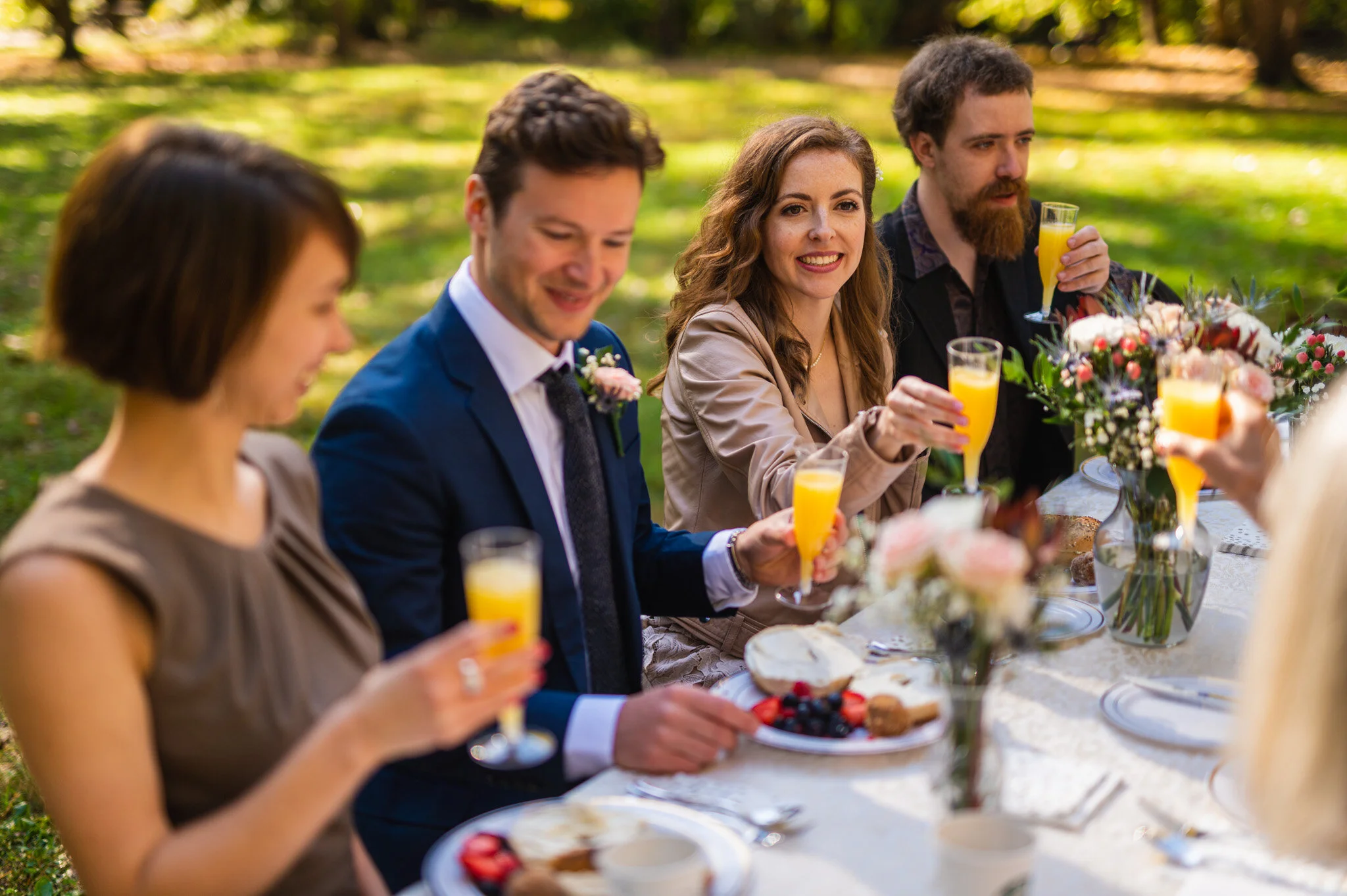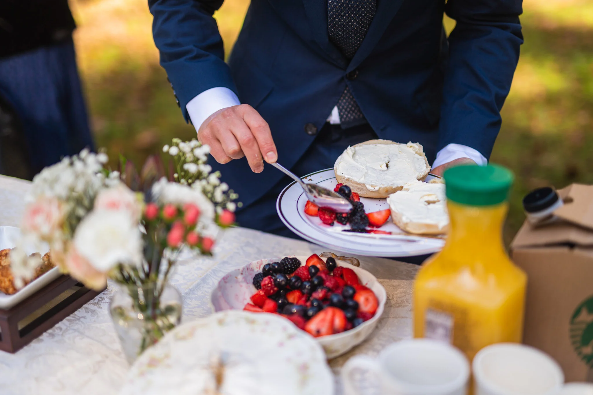 Following the ceremony, we took family photos then enjoyed a delicious, simple brunch. Eric and Alana had brought one of their favorite morning foods, bagels from Bethesda Bagels. Fresh fruit, pastries, coffee, and more made this park wedding a lovely picnic brunch.