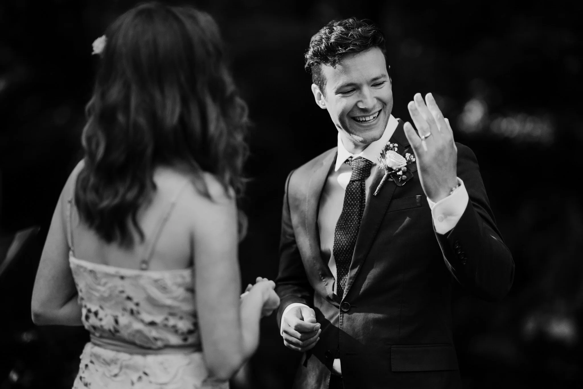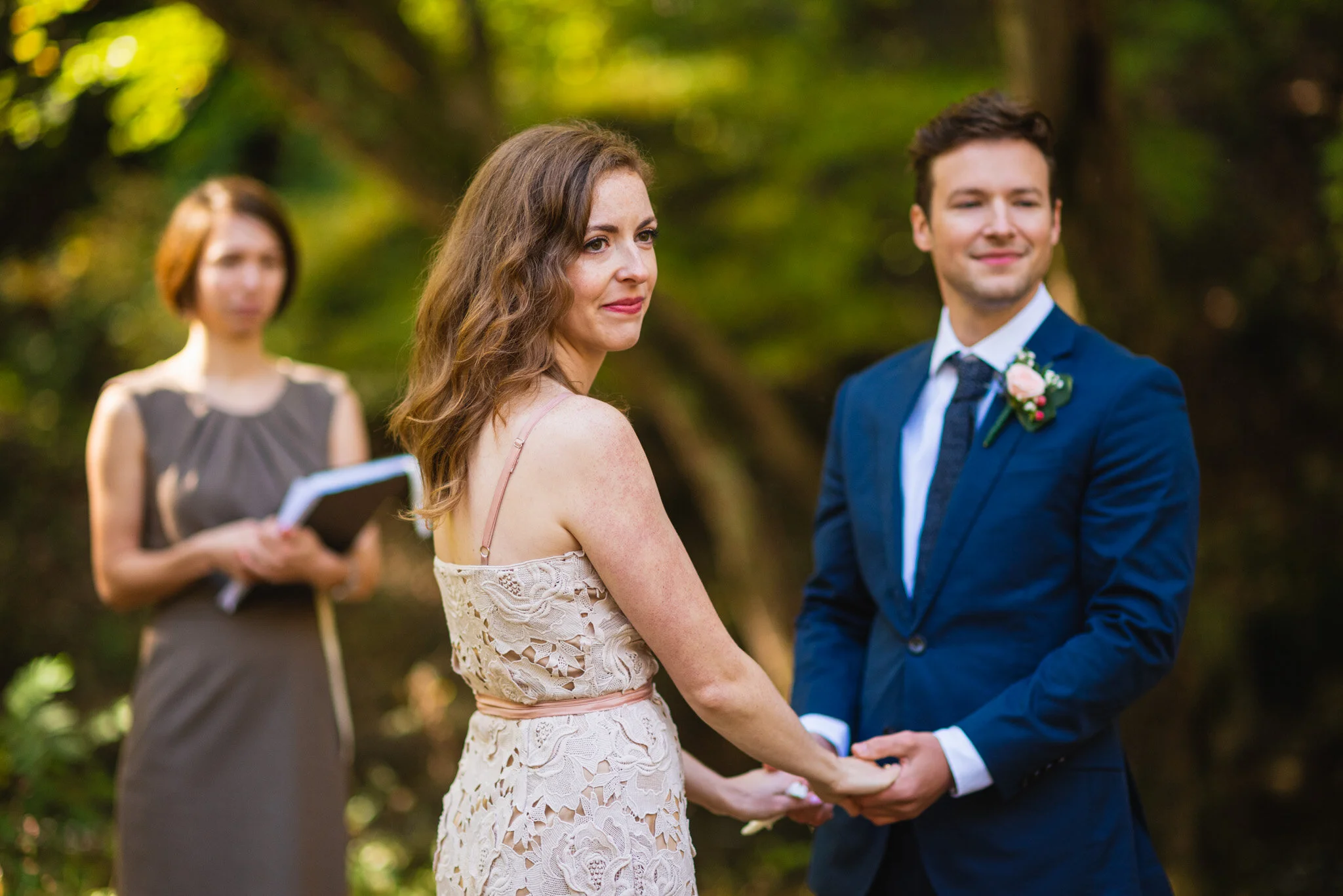 After our time of portraits, we joined Eric and Alana’s family as they were finished preparations at the ceremony site. They had found a lovely, setting under the arm of a tree, nestled just beside a calming, babbling area of Rock Creek. The ceremony began and it wasn’t long before everyone cried for one reason or another. For Alana it came during her family’s speeches. For Eric, during his vows to Alana. For everyone else, we teared up again and again! It was one of the most beautiful ceremonies I’ve ever been a part of. I loved the moment just after Alana put on Eric’s ring when he brought his hand up to gaze at this new addition to his finger, then smiled adoringly at Alana.