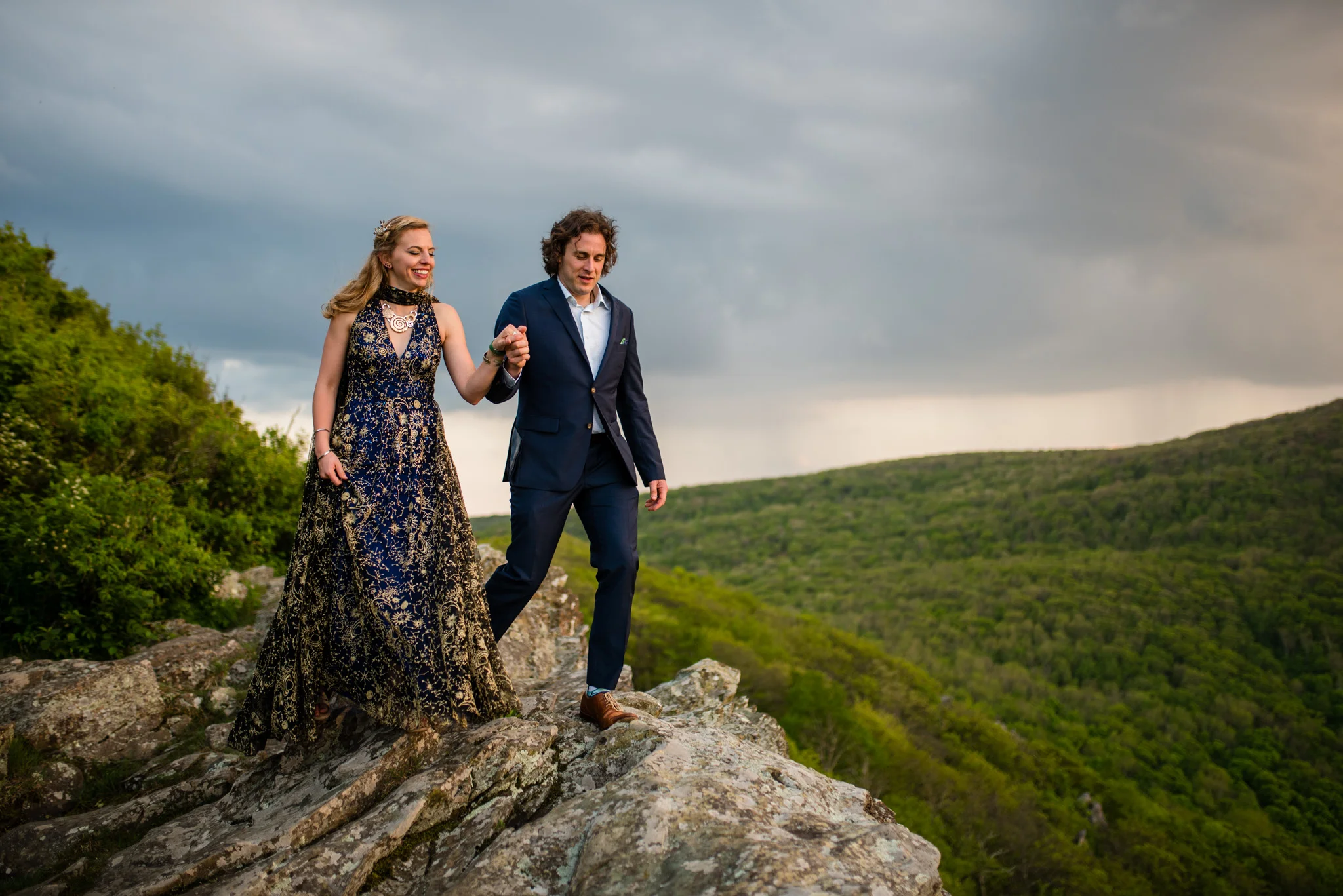 First the venue. Being adventurers and lovers of national parks, they knew that having their wedding at Skyland Resort in the Shenandoah National Park would be perfect. From their first look on a hiking trail to capturing epic landscape portraits at overlooks to their ceremony with a view, nature was central. Even the backdrop for Clare getting ready in her room had a stunning view overlooking the valley!