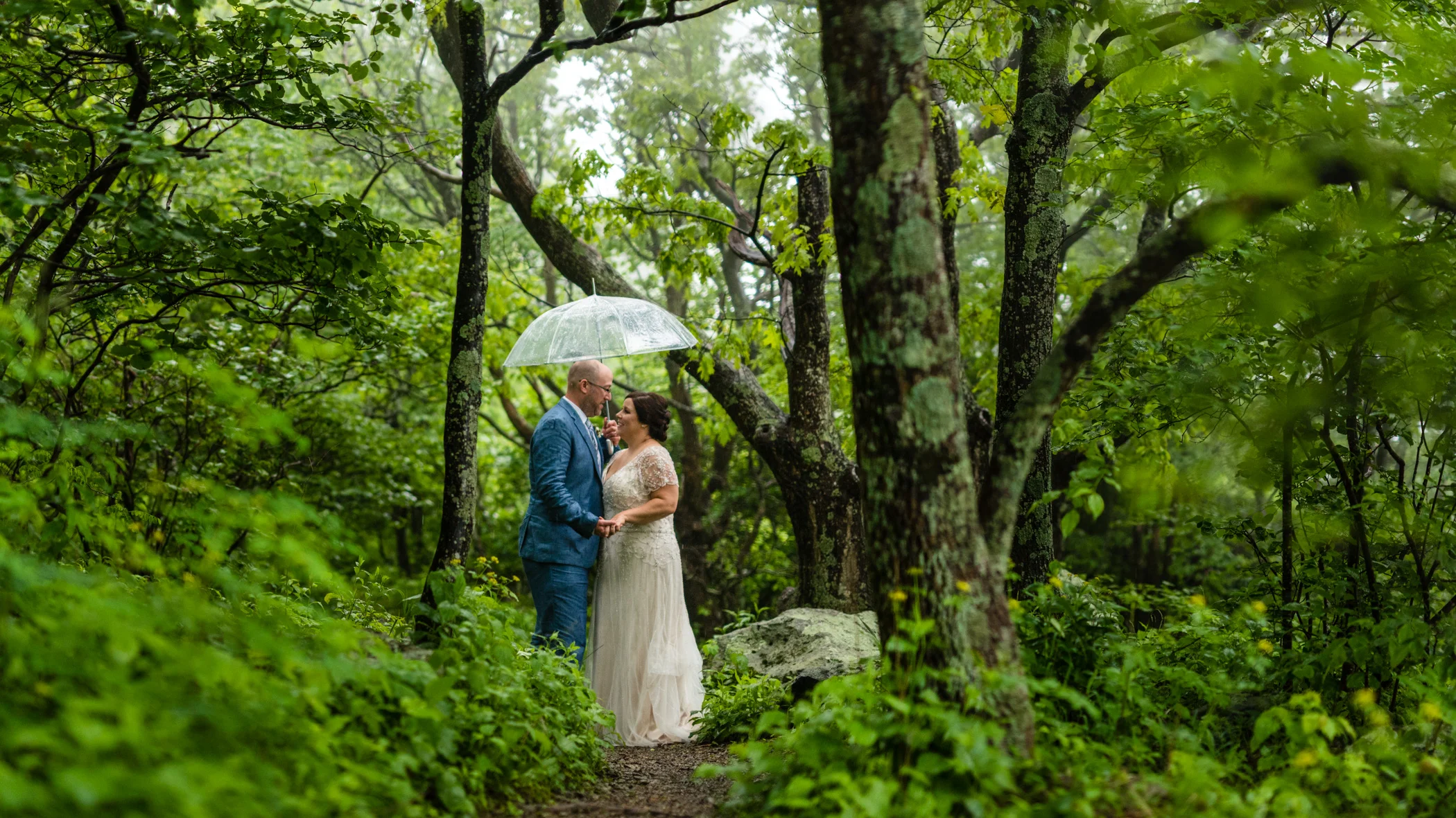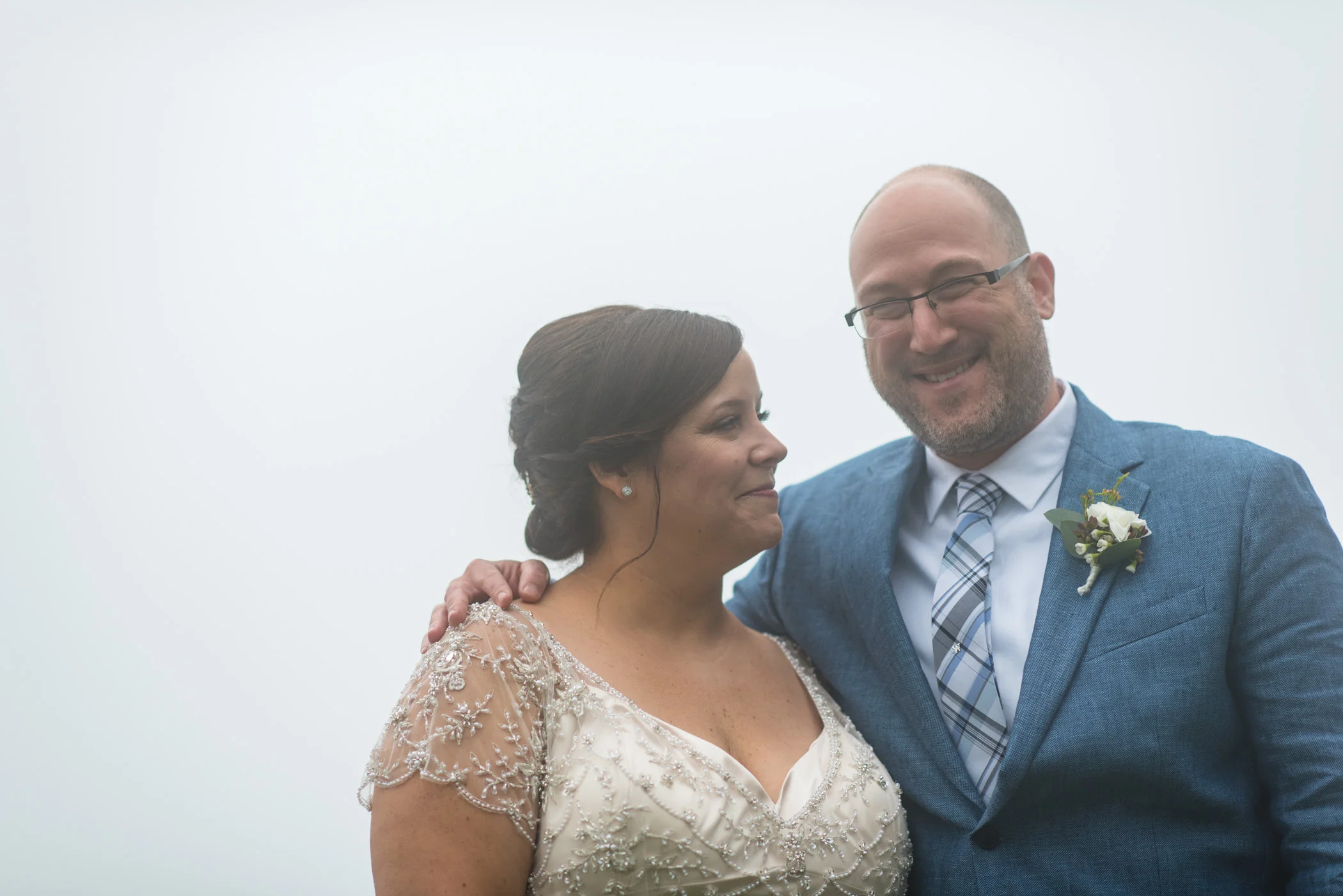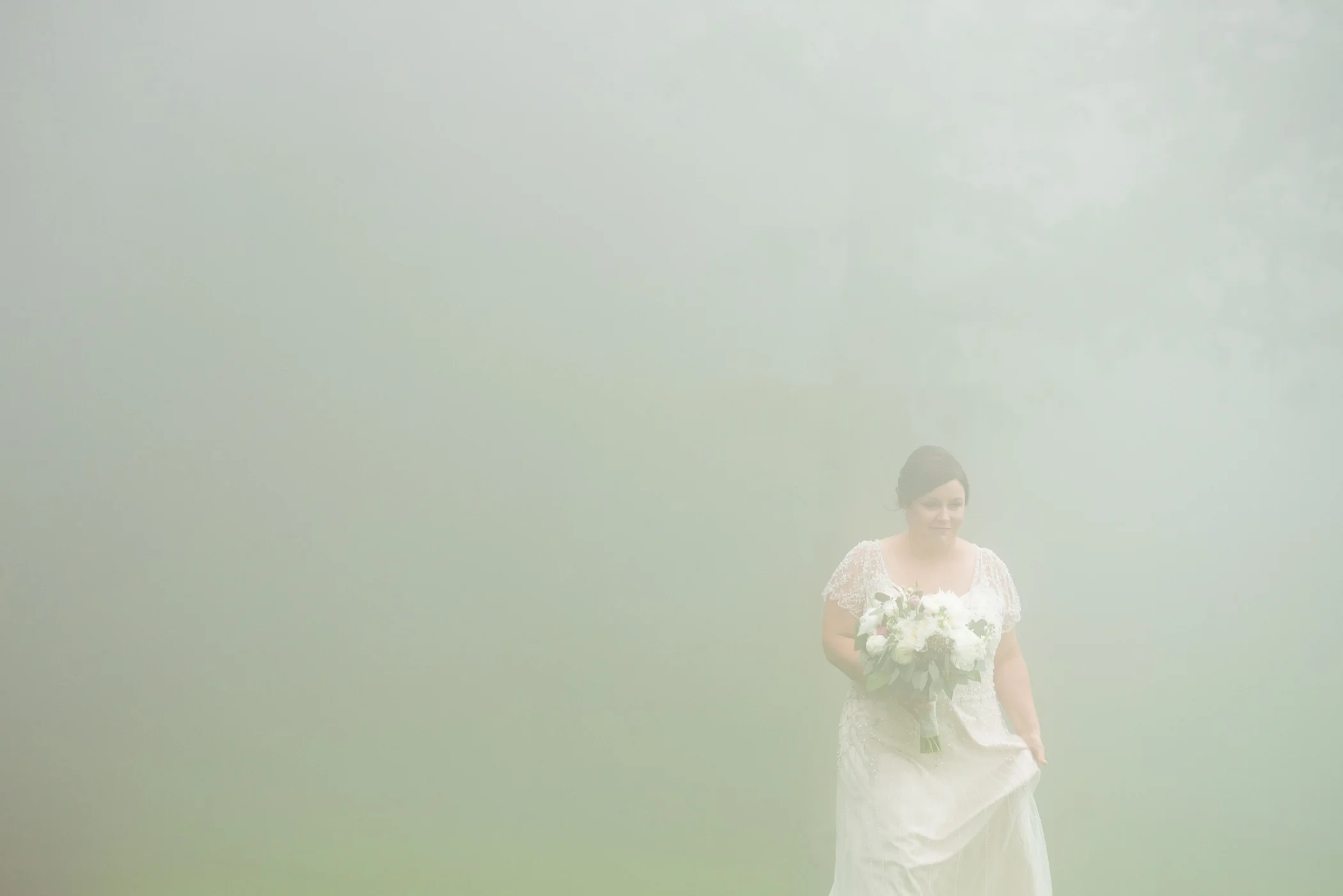 Fortunately we didn’t experience any rain until later after the ceremony, but they literally said “I do” in a cloud! Later we went for portraits at an overlook, hoping in vain that a break in the clouds might appear. They continuously rolled over the ridge, blocking the views of the valley, yet we were still were able to enjoy portraits with the lush green, winding trees, and even a few shots in the rain.