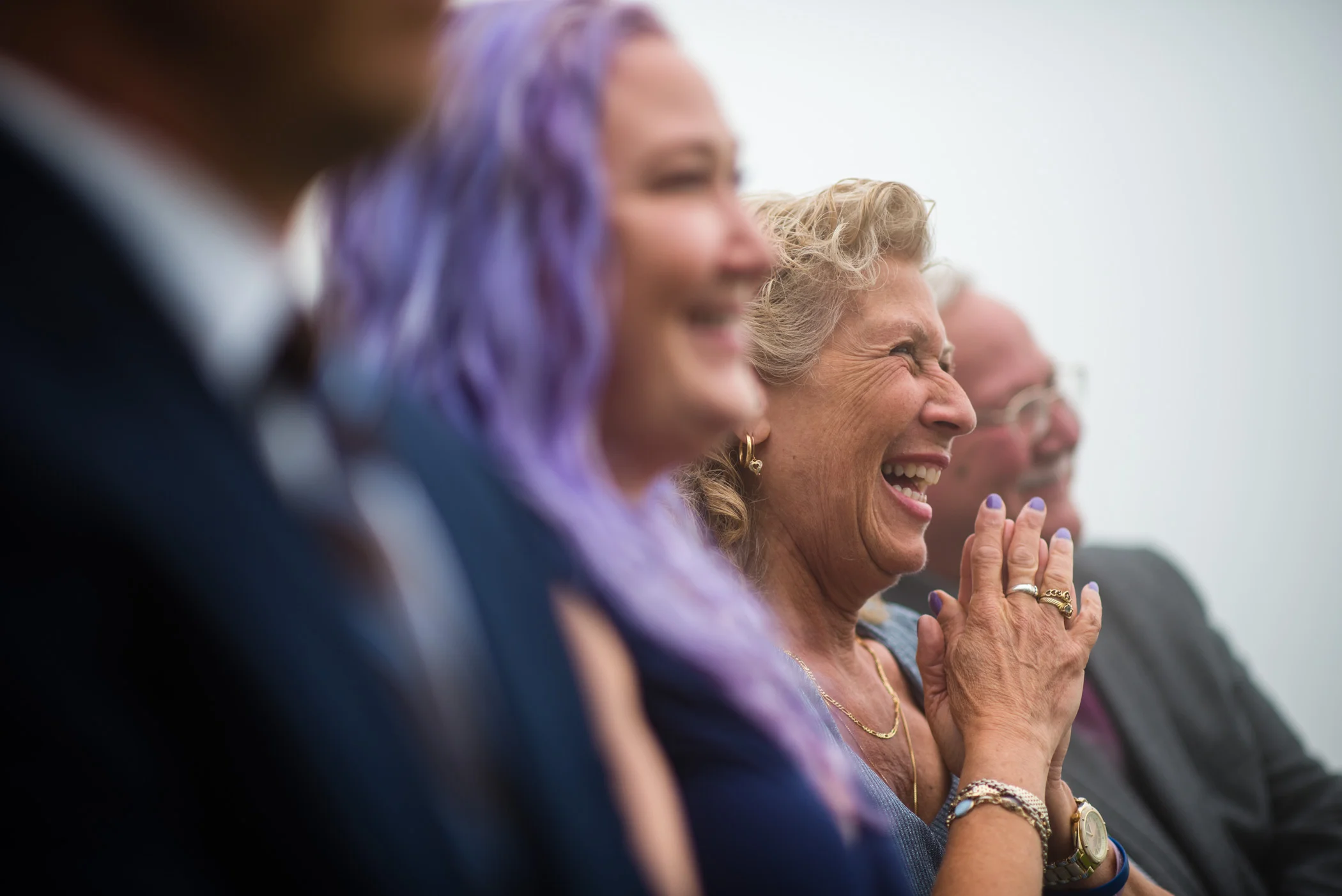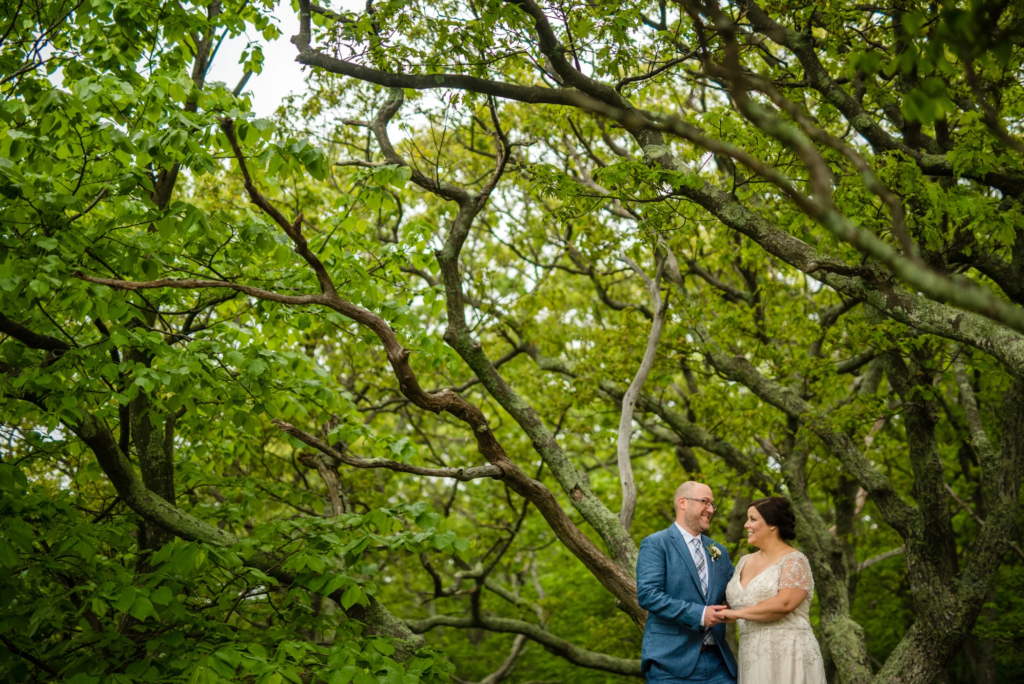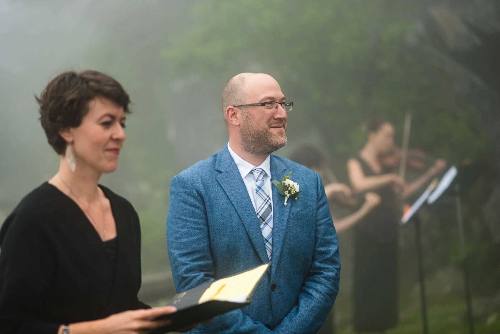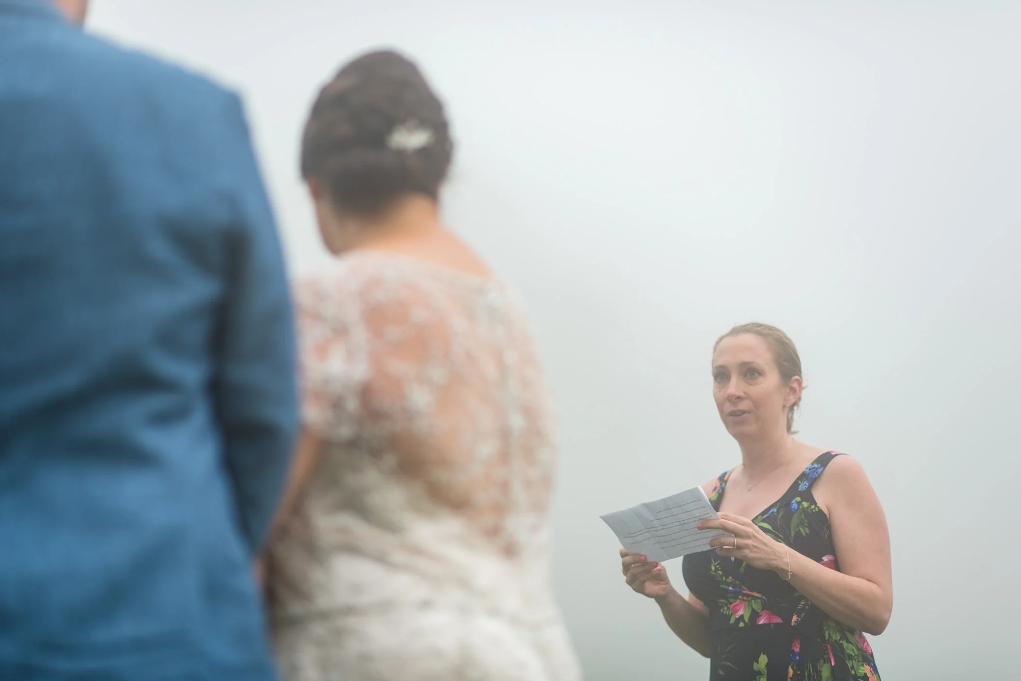 Fortunately we didn’t experience any rain until later after the ceremony, but they literally said “I do” in a cloud! Later we went for portraits at an overlook, hoping in vain that a break in the clouds might appear. They continuously rolled over the ridge, blocking the views of the valley, yet we were still were able to enjoy portraits with the lush green, winding trees, and even a few shots in the rain.