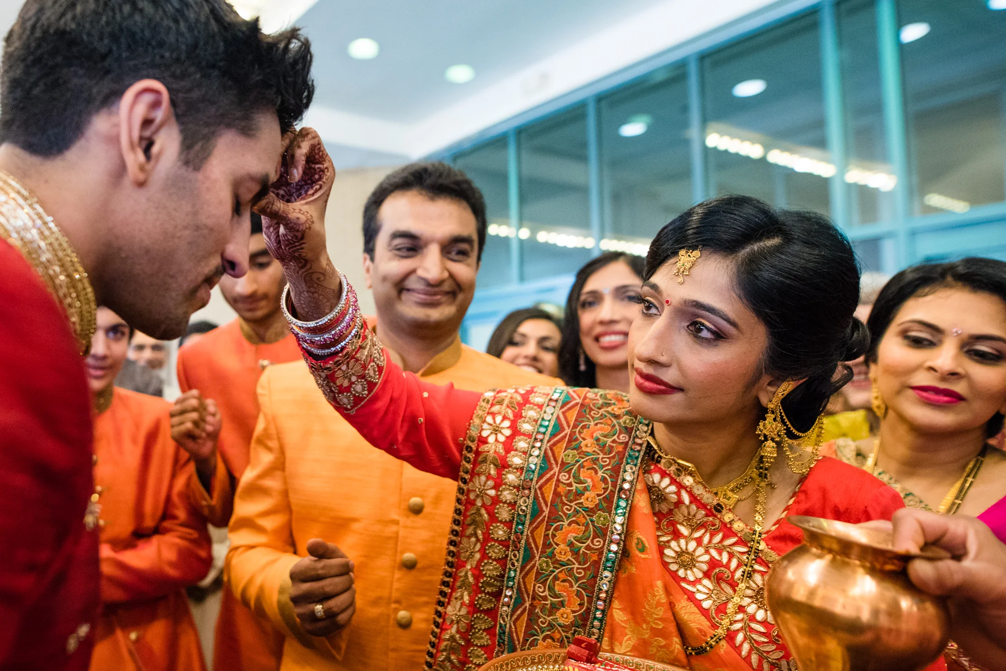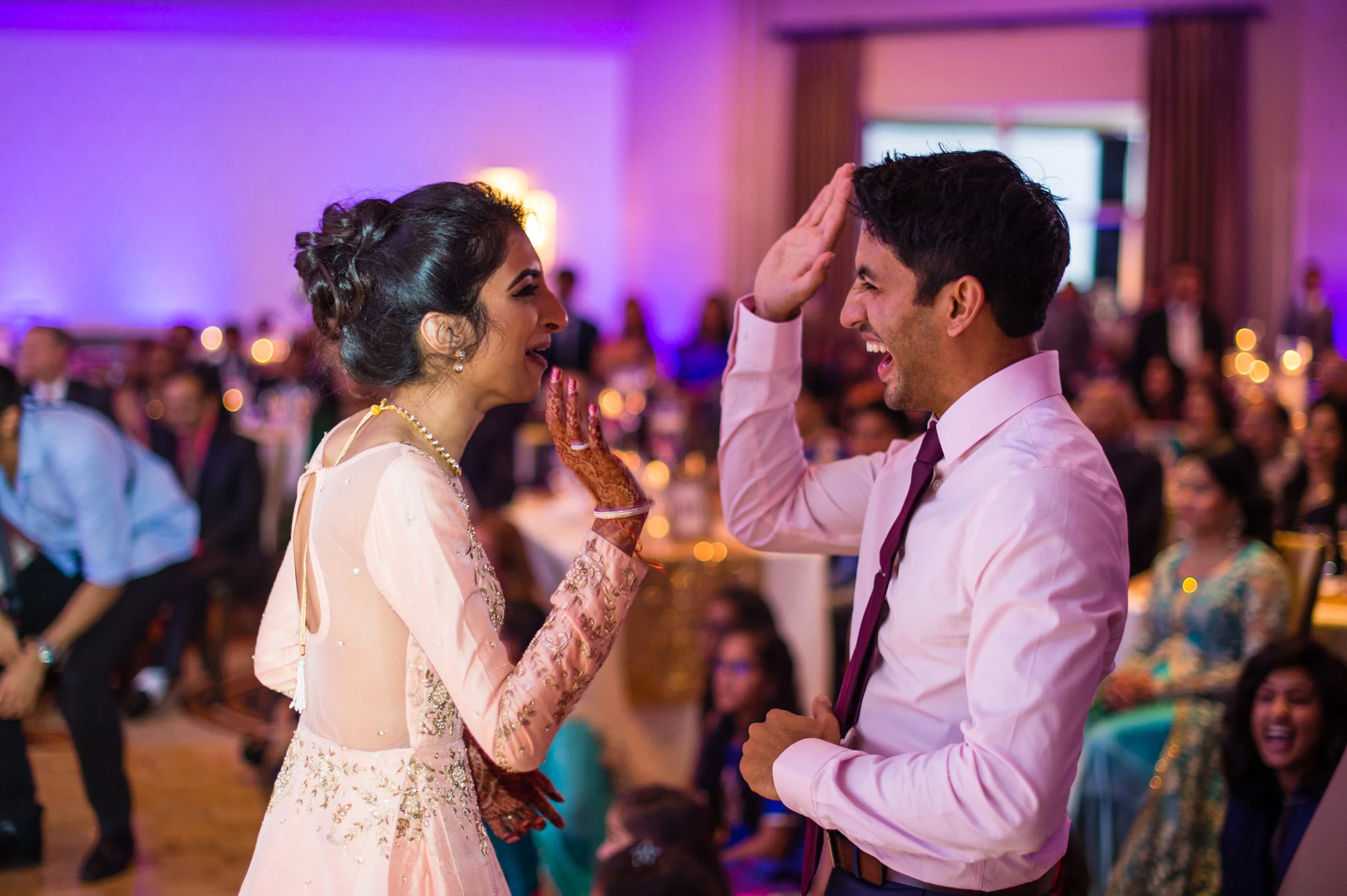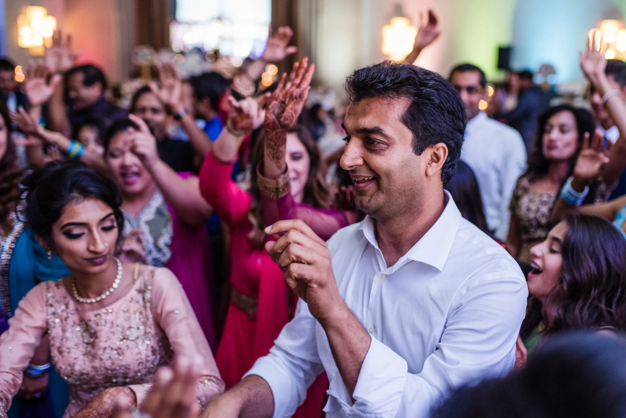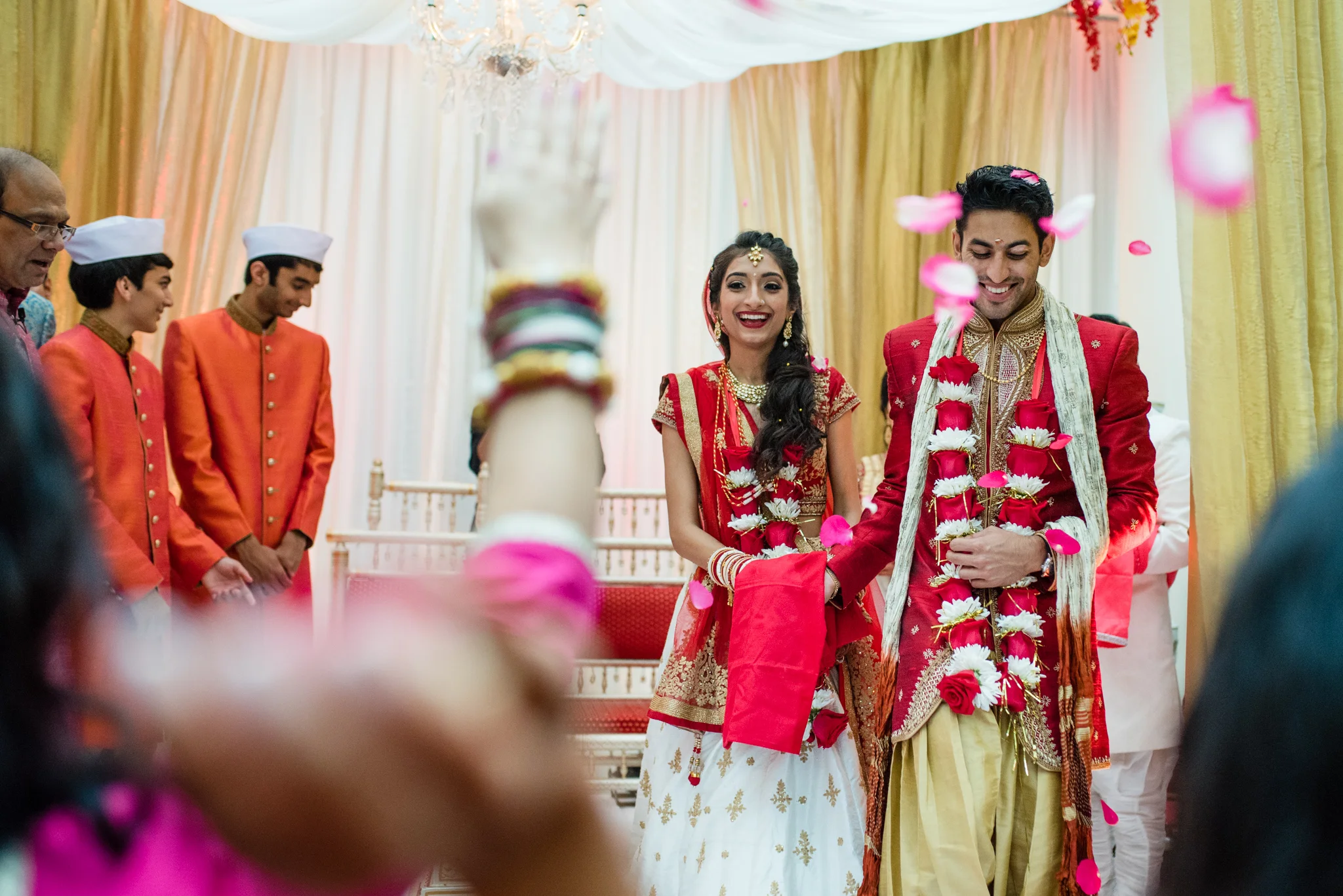 From stealing the grooms shoes to the tears at the vidai, the energy at this wedding was simply infectious. Rajan made his entrance to the bride’s side with music blaring, friends shouting, singing, and the drum reverberating off the hotel. The bride’s family literally charged the groom as he entered! That energy never weakened from Thursday night all the way through the reception performances Saturday at the Tyson Corner Sheraton Hotel, and I was honored to take part in this special event.