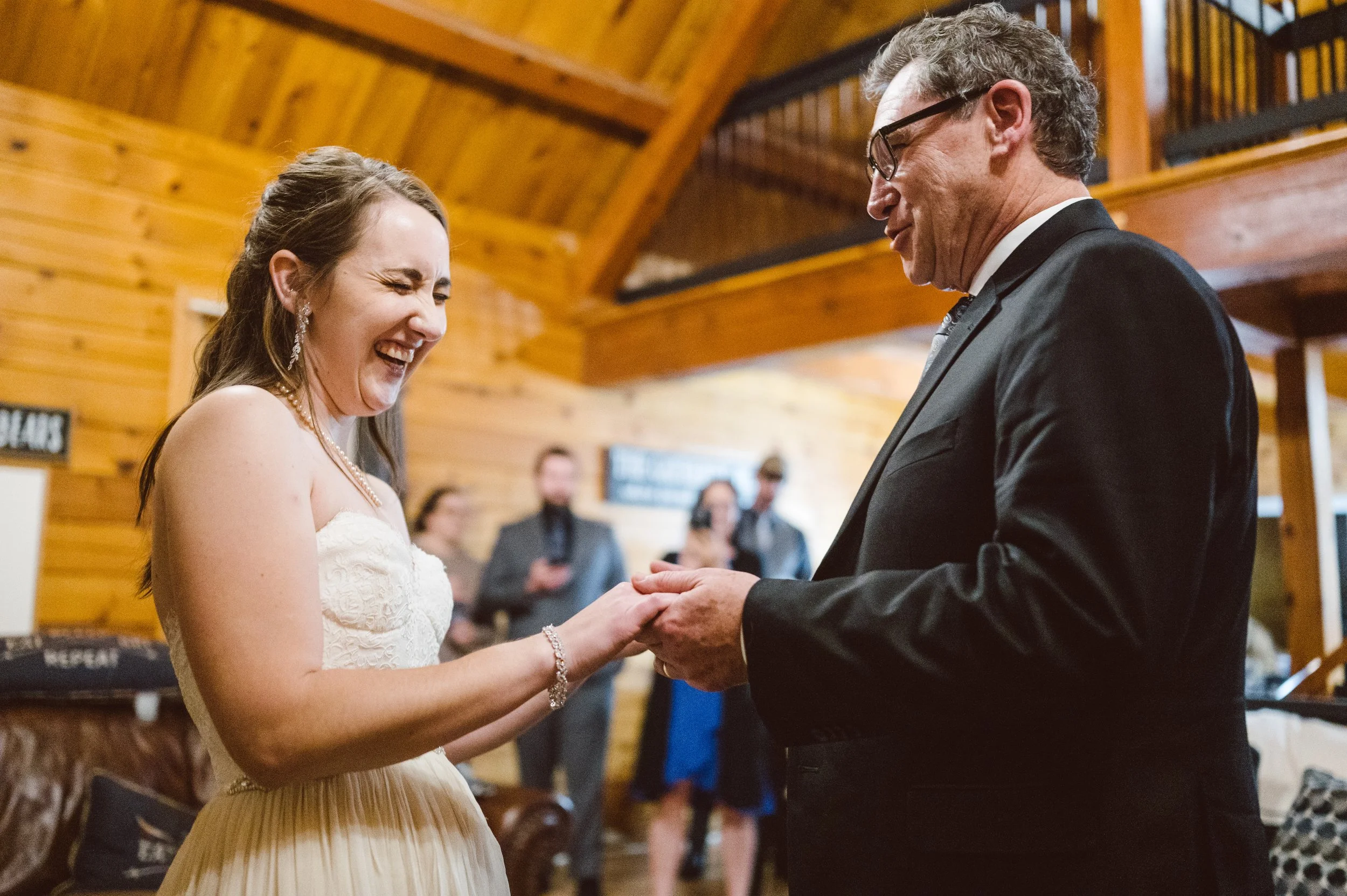 Most Father-Daughter dances take place on a dance floor. But for Daniella, back at the cabin she and her father got to spend a moment swaying around the cozy living room. Kyle and Daniella also shared their first dance in that living room, as kids rested around on the couches and family watched closely with grins on their faces.