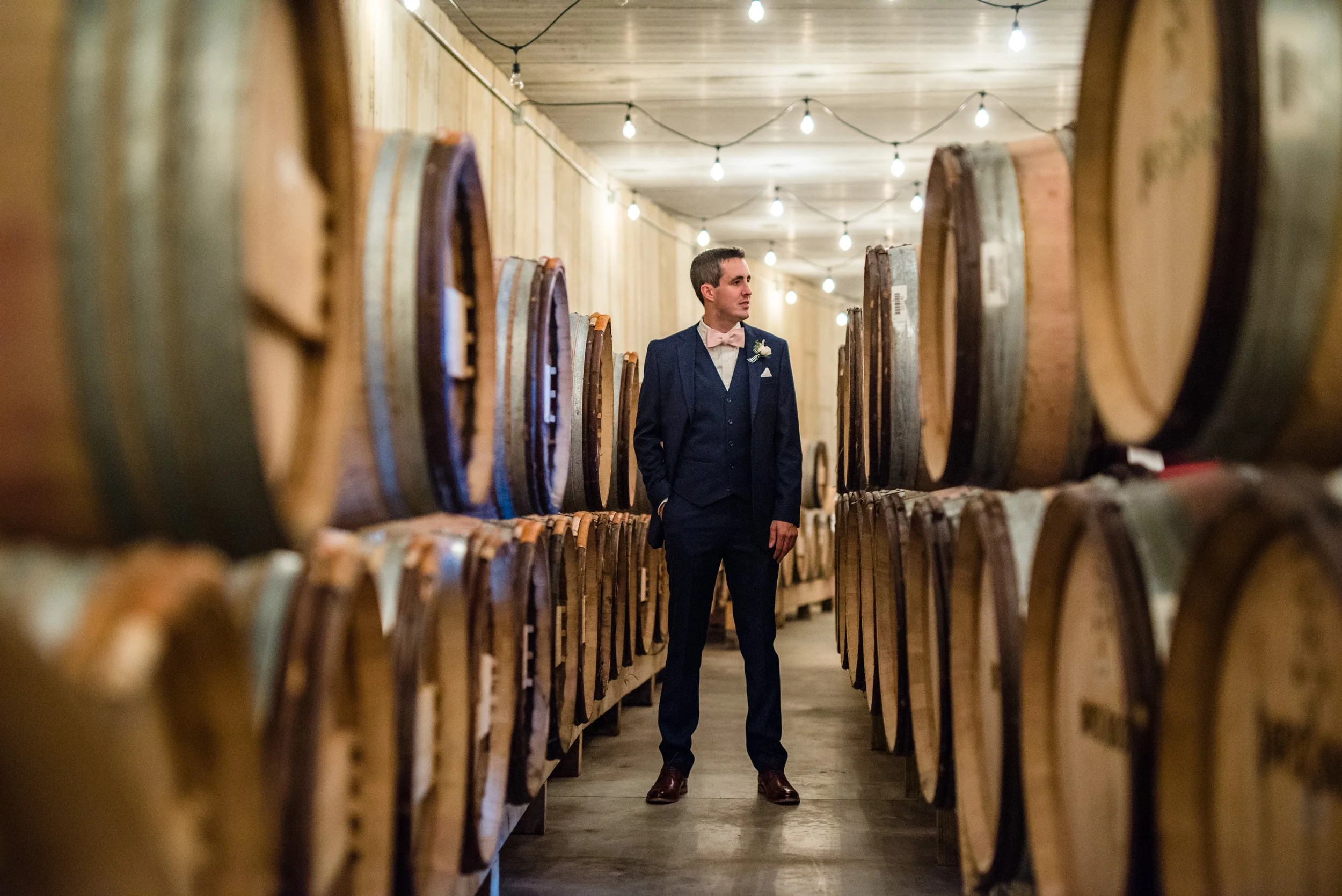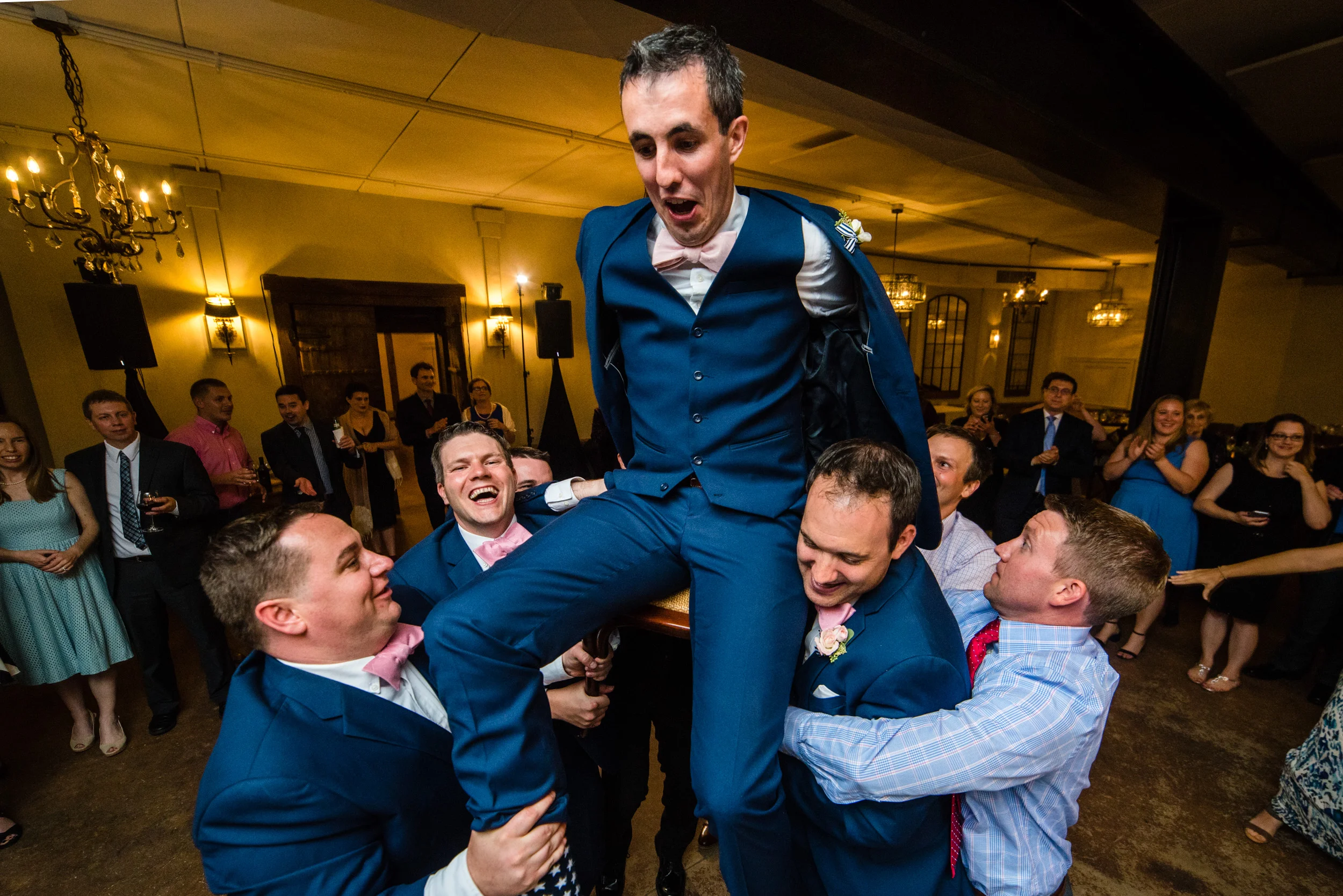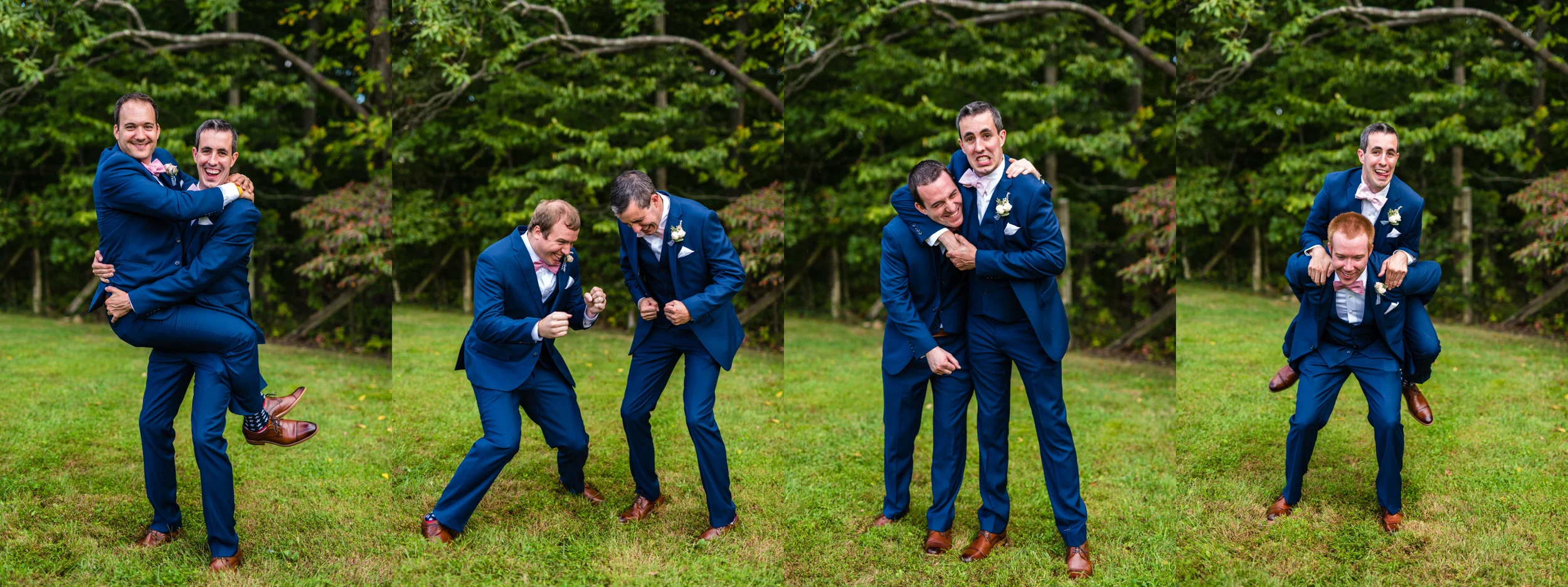 Getting into Ben and Deborah’s wedding I first have to tell you about the venue, Stone Tower Winery. What a place! The lush, green, rolling hills full of grape vines, the main building with open wood ceilings, a wine cellar, and reception space filled with windows looking out over the landscape. I could say so much more but this is simply put a beautiful wedding venue. I had a great time covering the guys in the early afternoon, even through the splitting of Ben’s pants! Maybe jumping on the back of a groomsman wasn’t the best idea, but thanks to a mom’s fancy sewing skills it was a problem quickly solved.