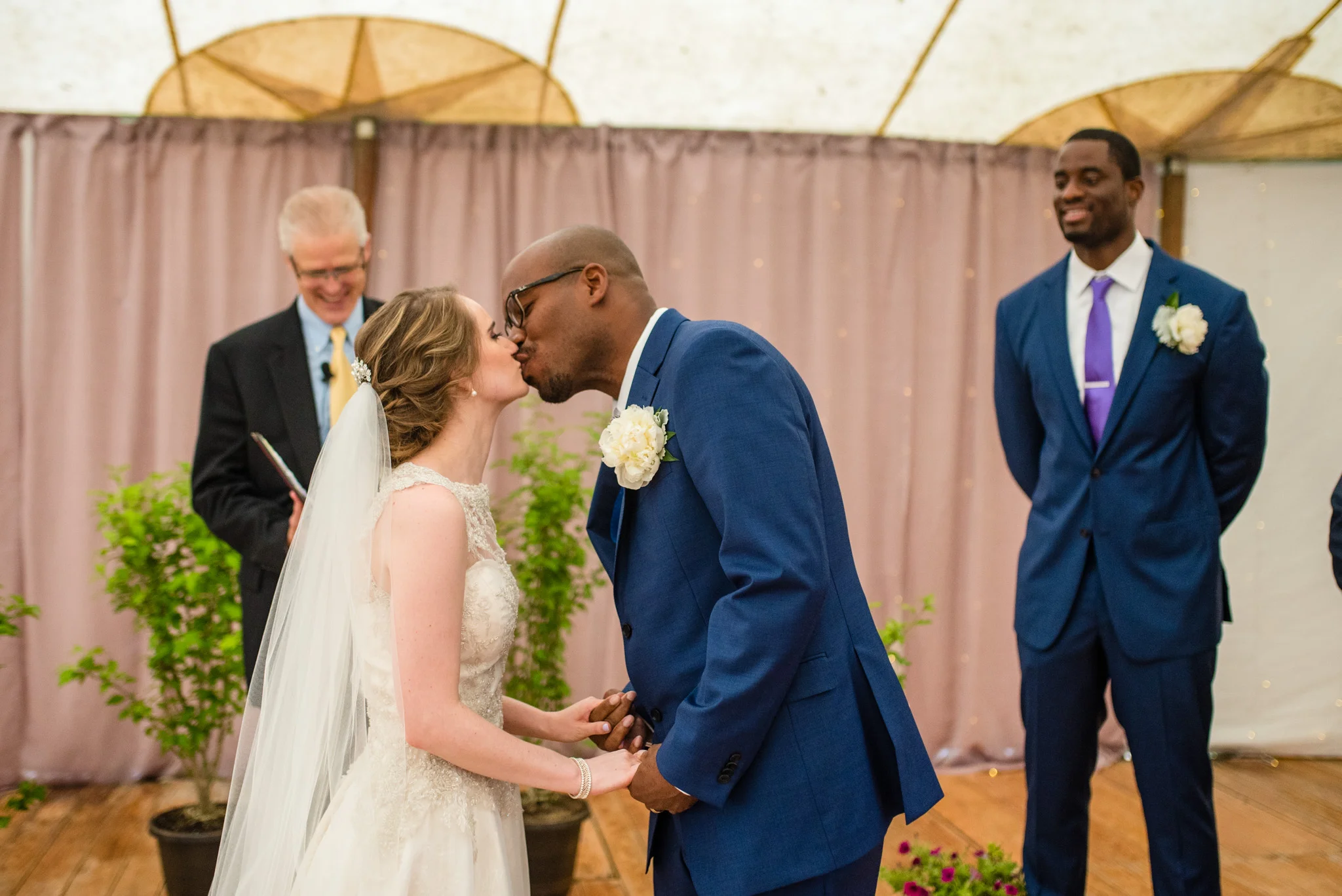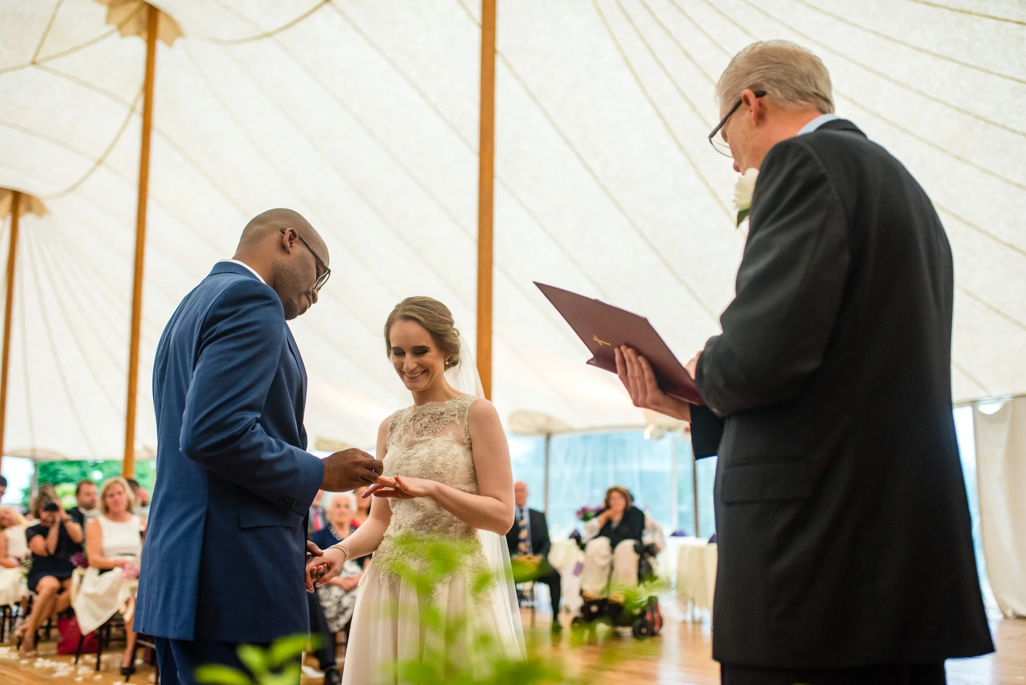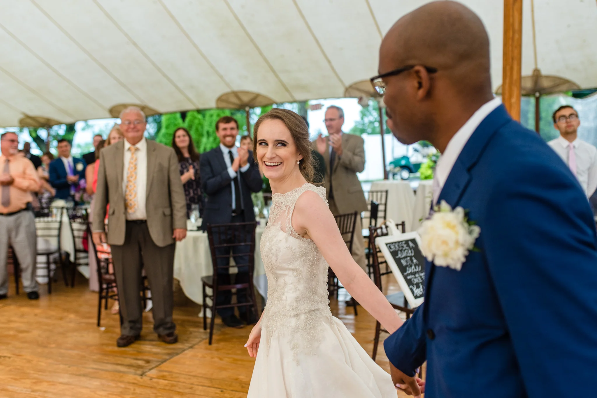 After getting soaked two weeks ago, mother nature played with us again at this wedding. While we were safe from the rain during the ceremony under the Inn’s tent, we did have to escape indoors afterward because of the tornado warning. Twenty minutes later, after torrential, sideways rain, blue skies reappeared and the day went back to normal.