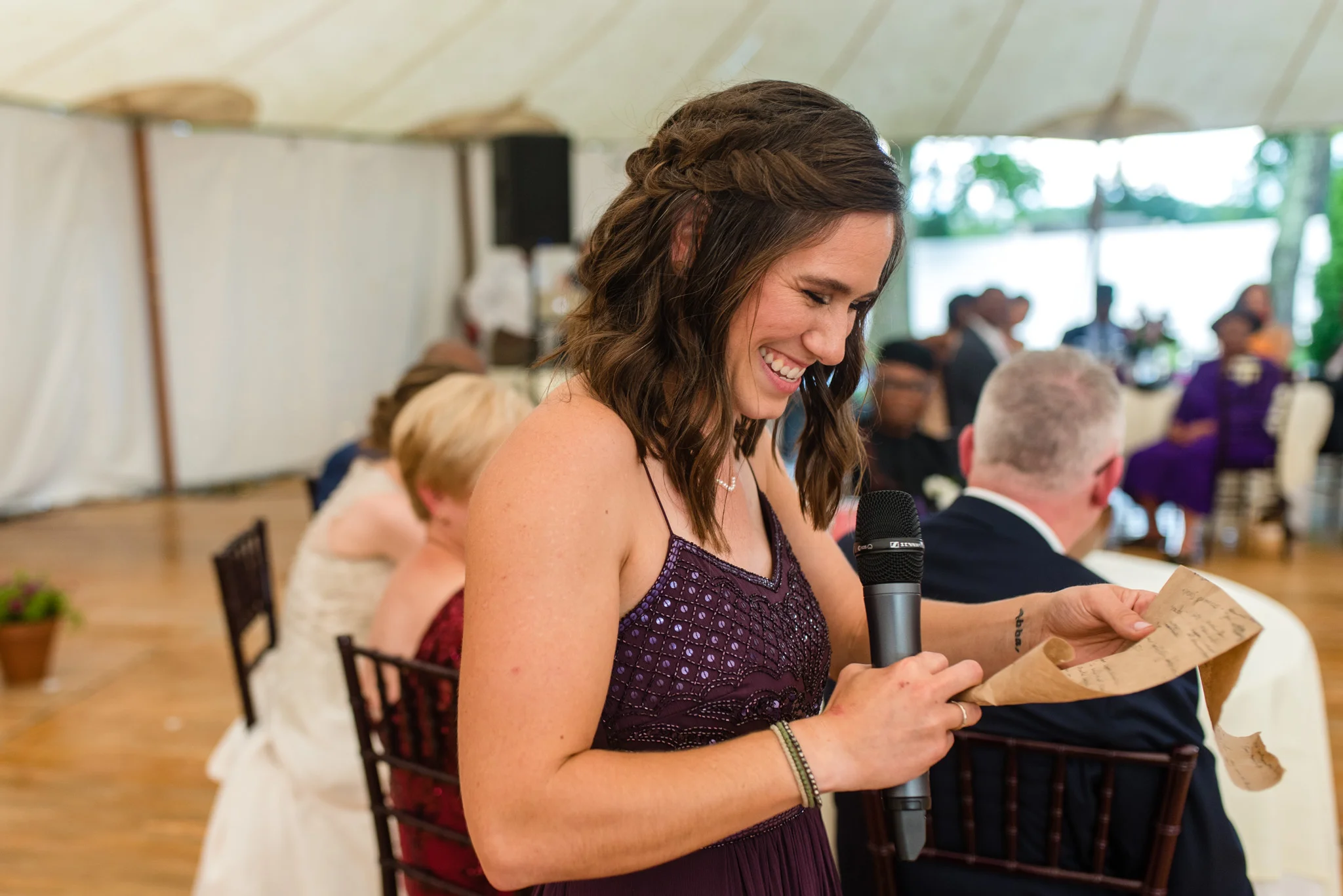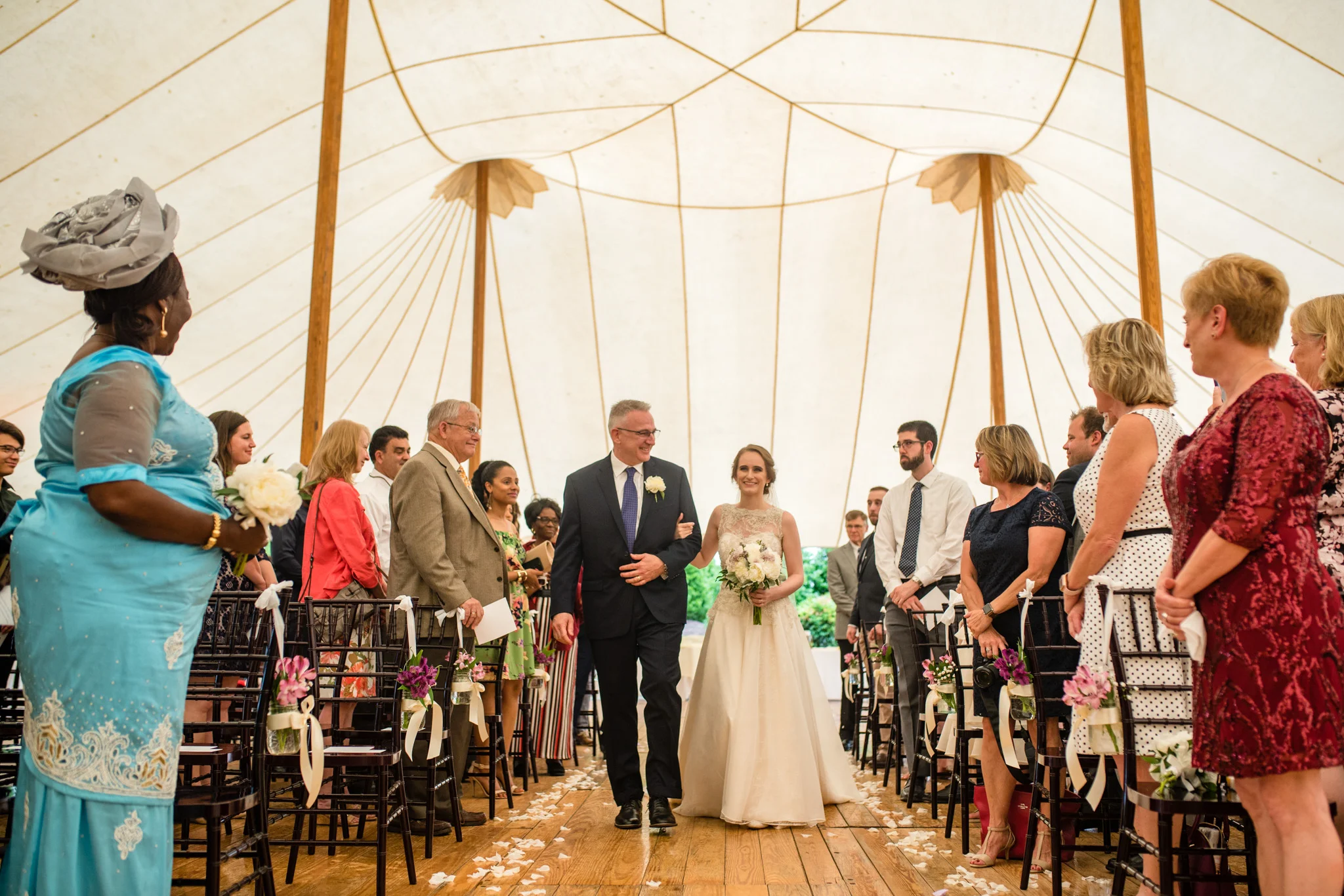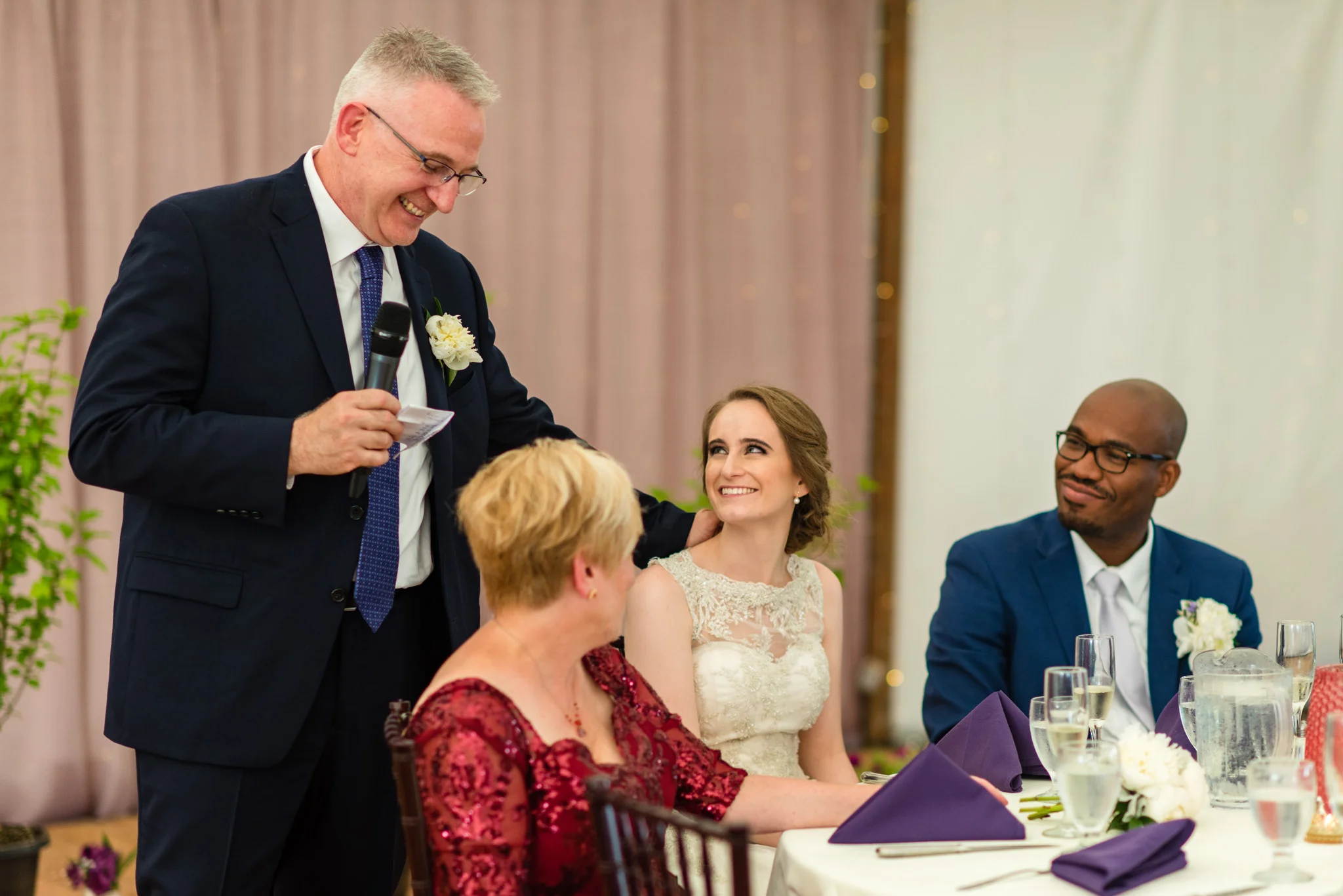 After getting soaked two weeks ago, mother nature played with us again at this wedding. While we were safe from the rain during the ceremony under the Inn’s tent, we did have to escape indoors afterward because of the tornado warning. Twenty minutes later, after torrential, sideways rain, blue skies reappeared and the day went back to normal.