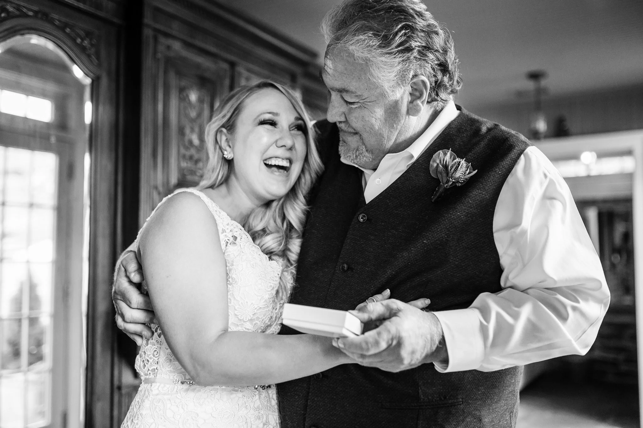 Going into this wedding, I was excited to capture their story, including everything from their adorable family dog Ollie, their country theme complete with bridesmaids cowboy boots and groomsmen trucks, and their love for family. Brannie’s reaction to seeing her dad before the ceremony and Rob’s tearful first dance with his Mom, along with many other moments throughout their day, pointed to a strong love for each other and a strong bond between families. Both of their fathers give a speech at the start of the reception, graciously welcoming their families and the new family Rob and Brannie were establishing that day.
