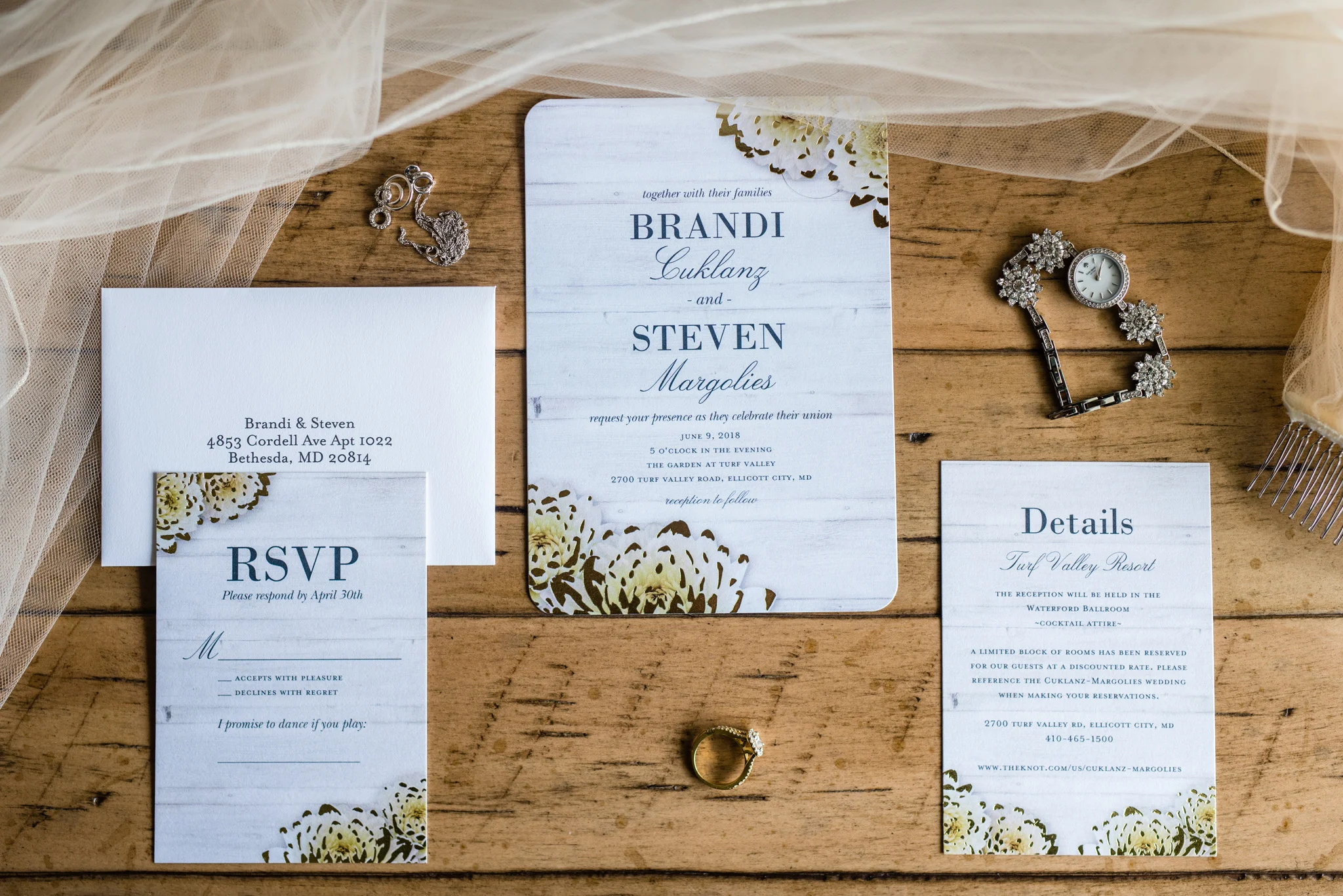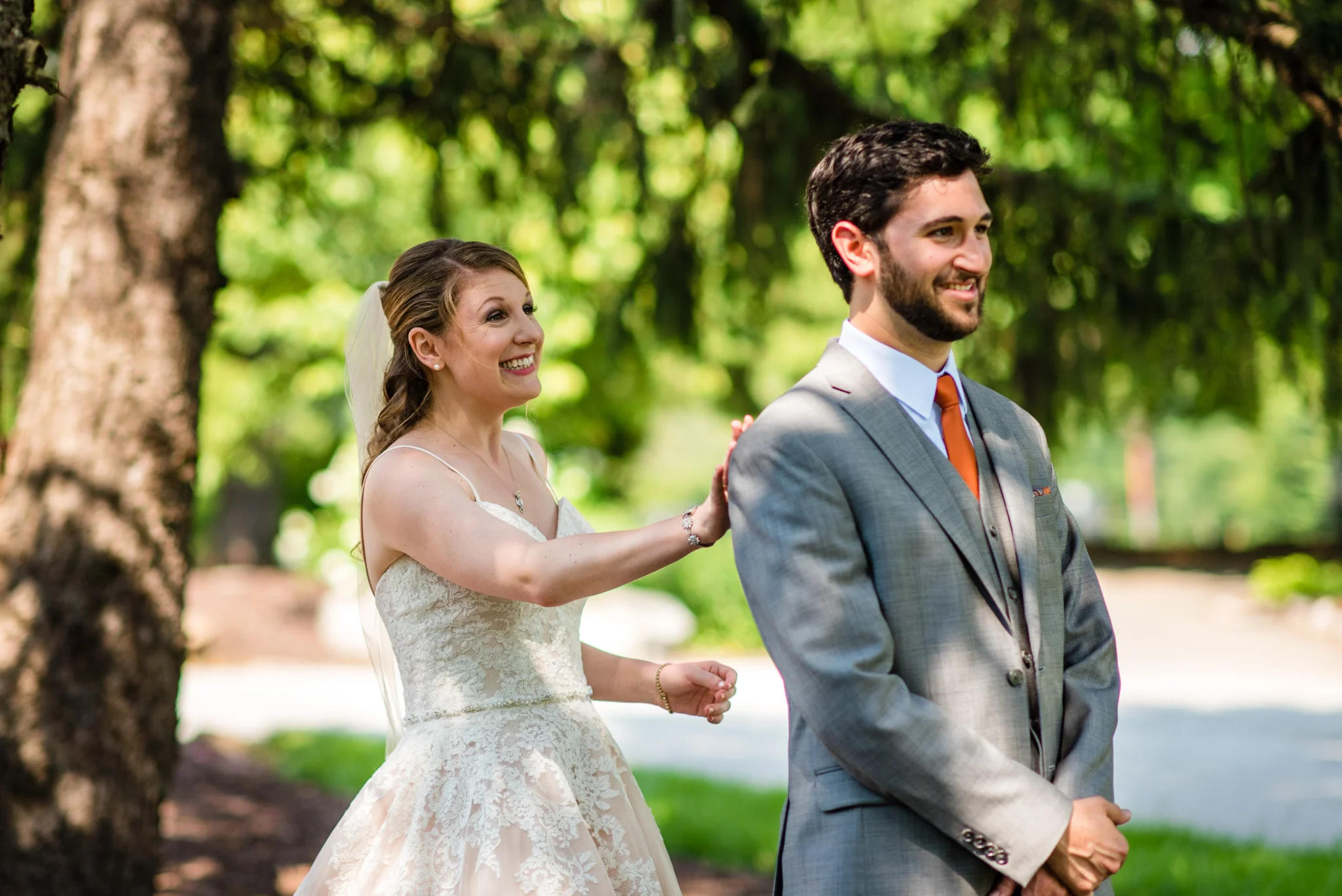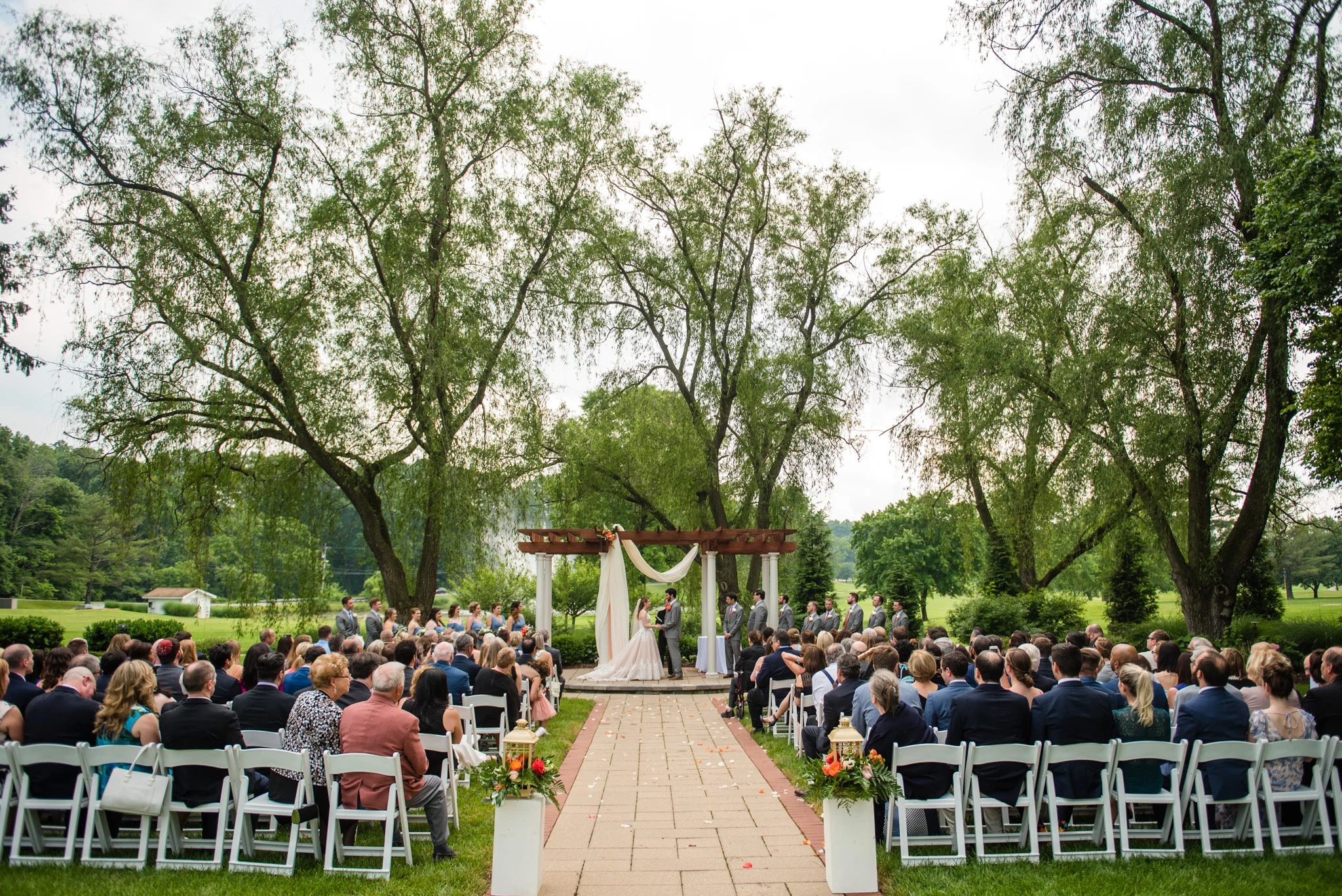 They choose Turf Valley Resort in Maryland for it’s convenience to family and friends, plenty of hotel rooms, the perfect reception space, and an absolutely beautiful outdoor garden ceremony site. The weather on their wedding day started out ominous, with mixed clouds and the threat of rain. But as the day wore on that threat weakened, only to reappear at the worst possible moment; just after they had both walked down the aisle.