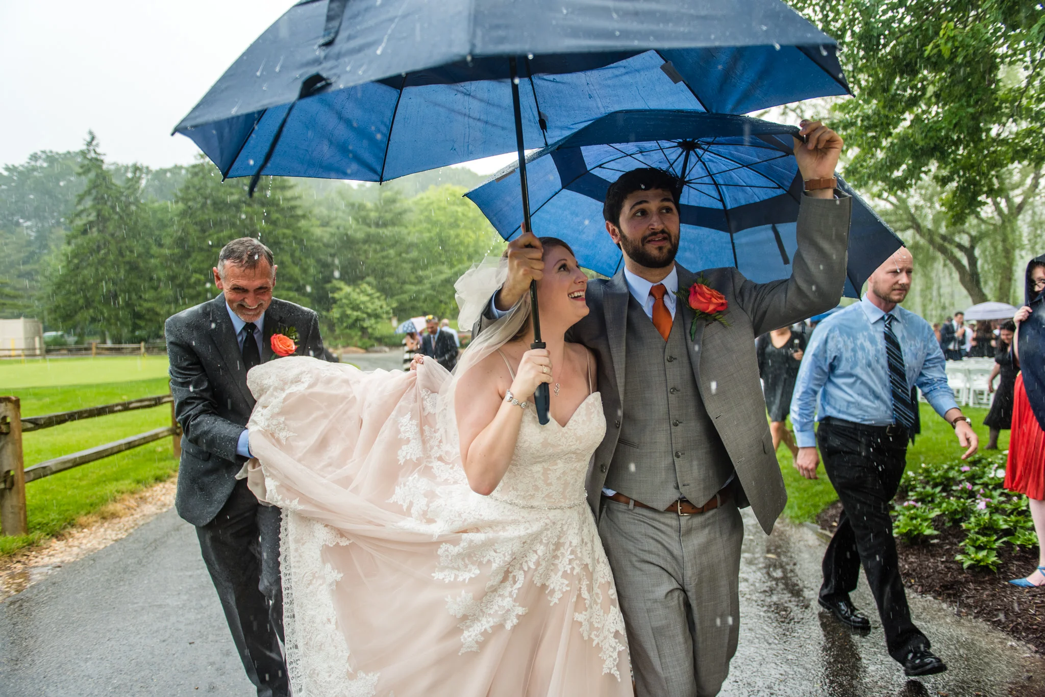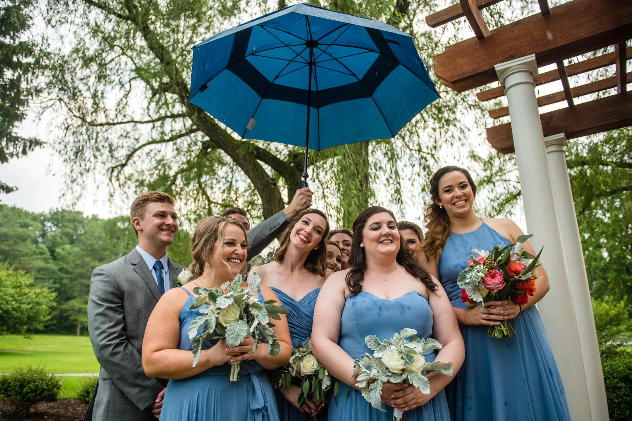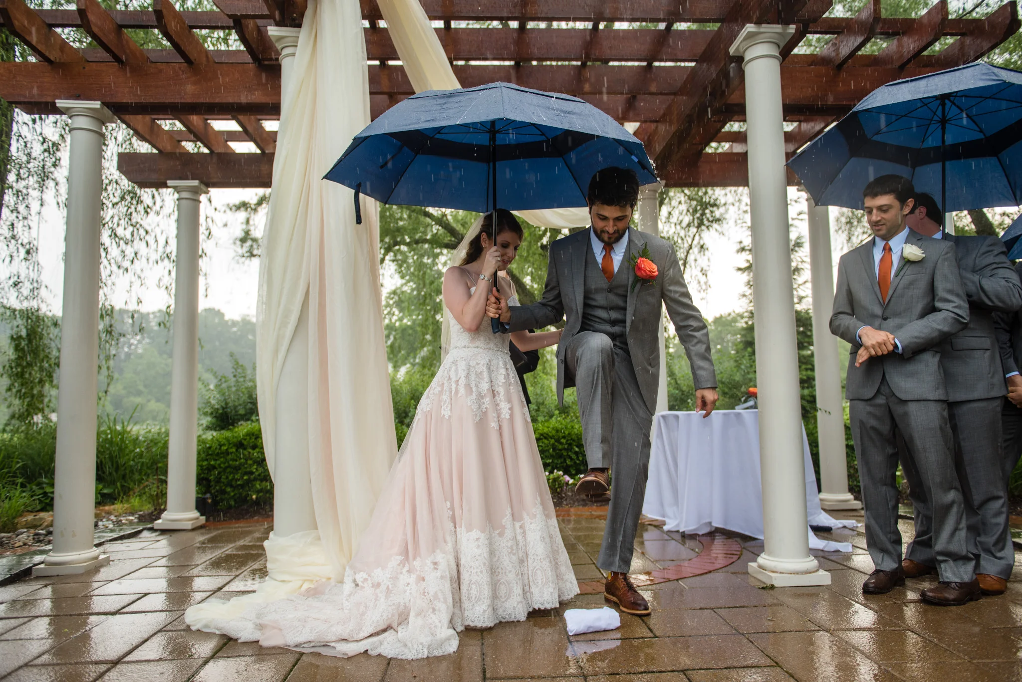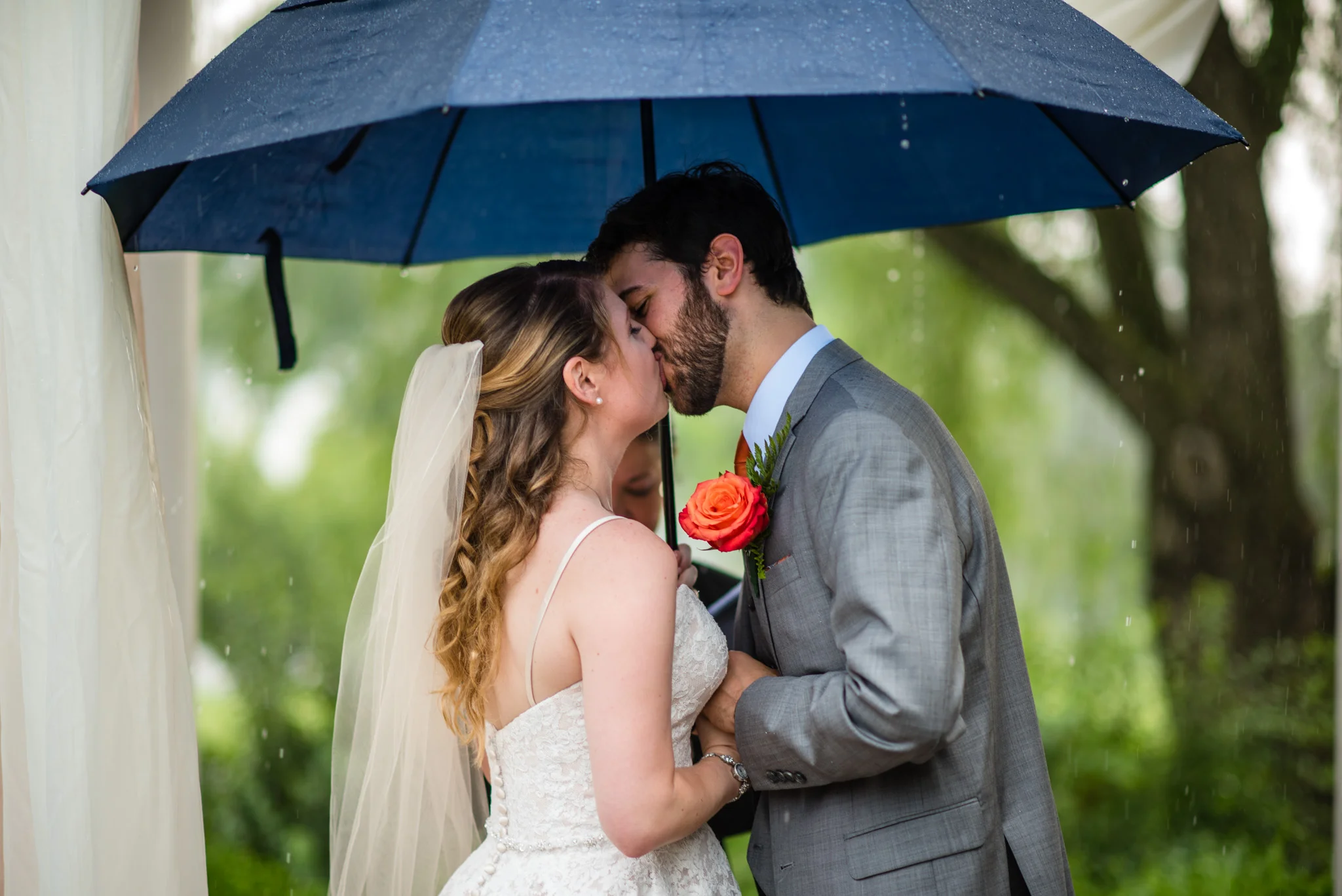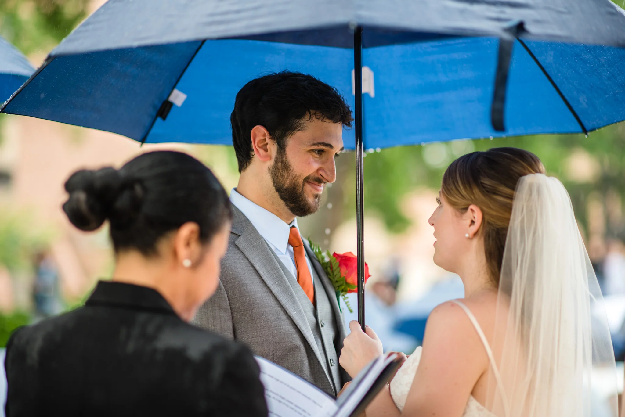 Not long into the ceremony, it began to rain steadily. While I got pretty wet, most of the guests and all of the bridal party had umbrellas. We moved through the ceremony quickly and got inside, and in the end, it was still a beautiful ceremony. It was certainly one of the more memorable ones!